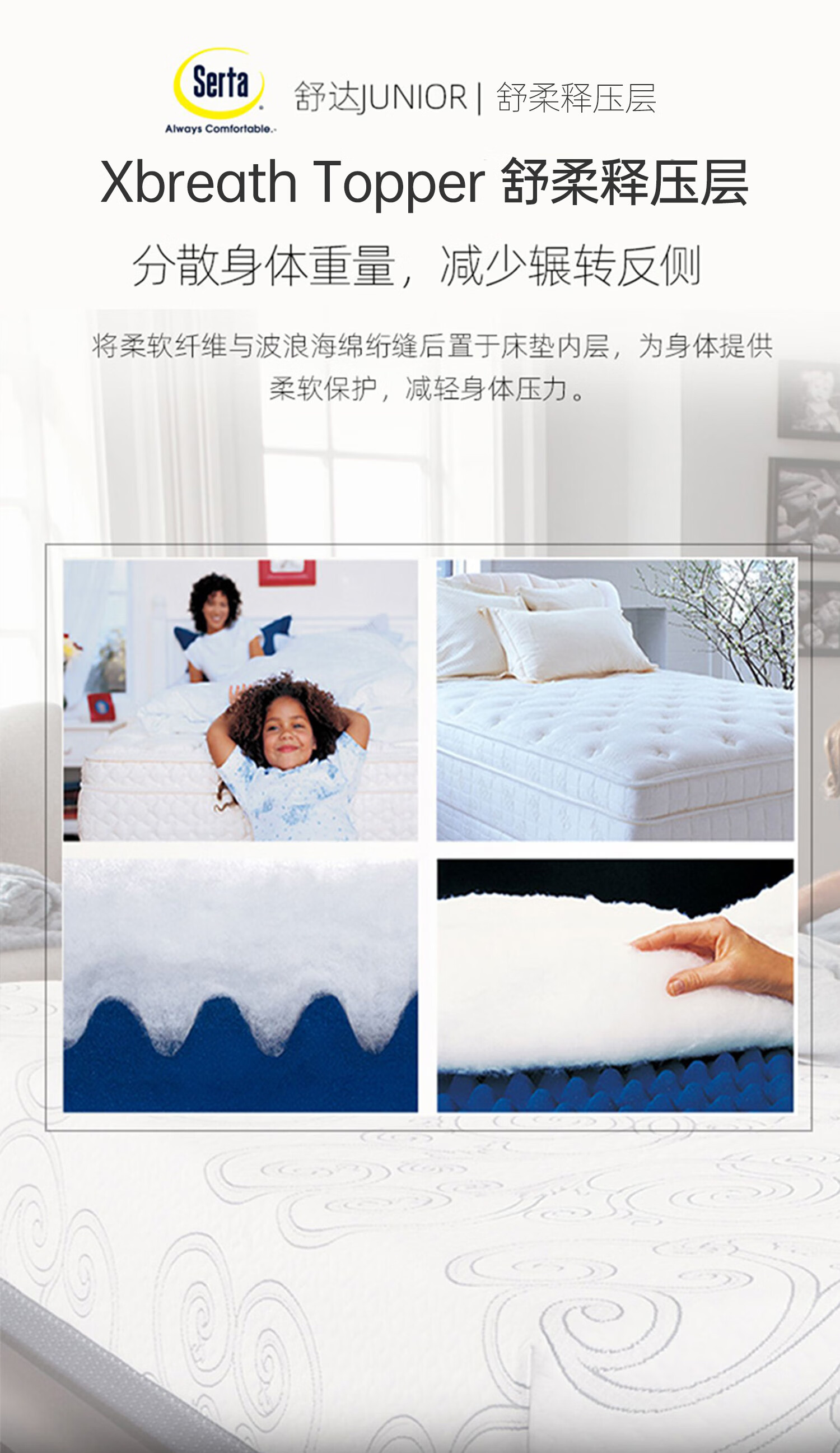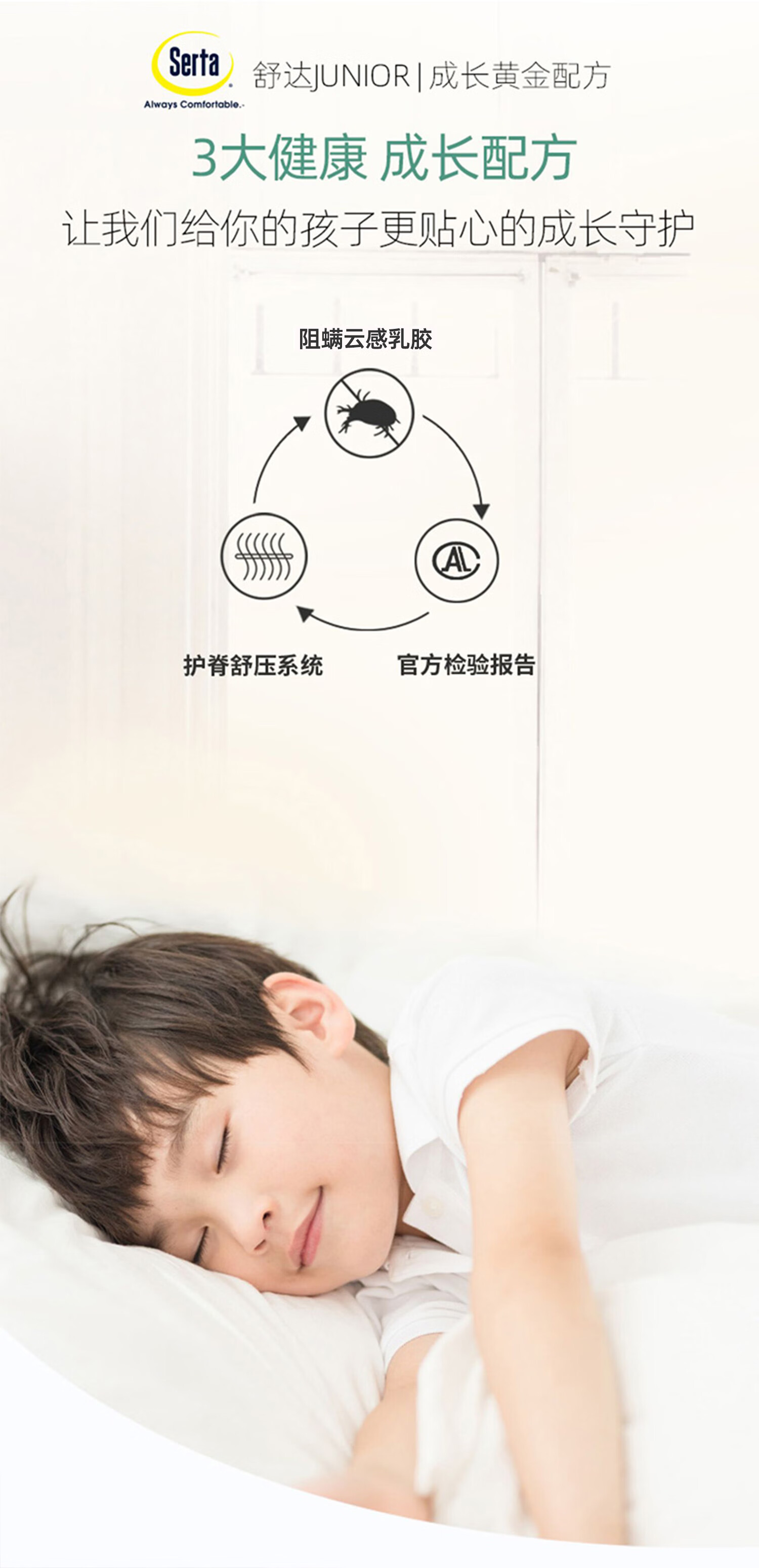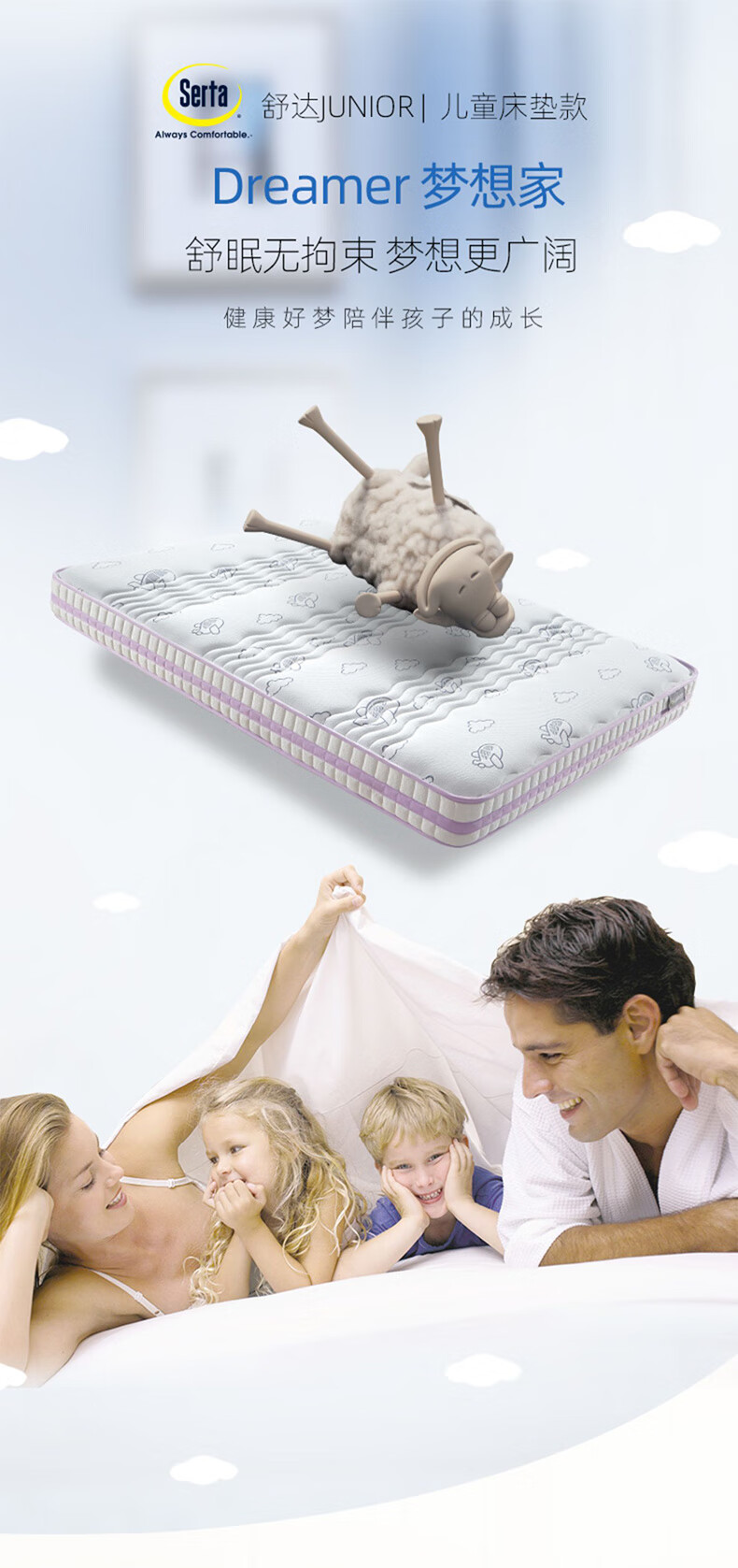 舒达(serta) 梦想家A1蓝 乳胶整网弹簧青少年护脊儿童床垫 1.2*2米偏硬