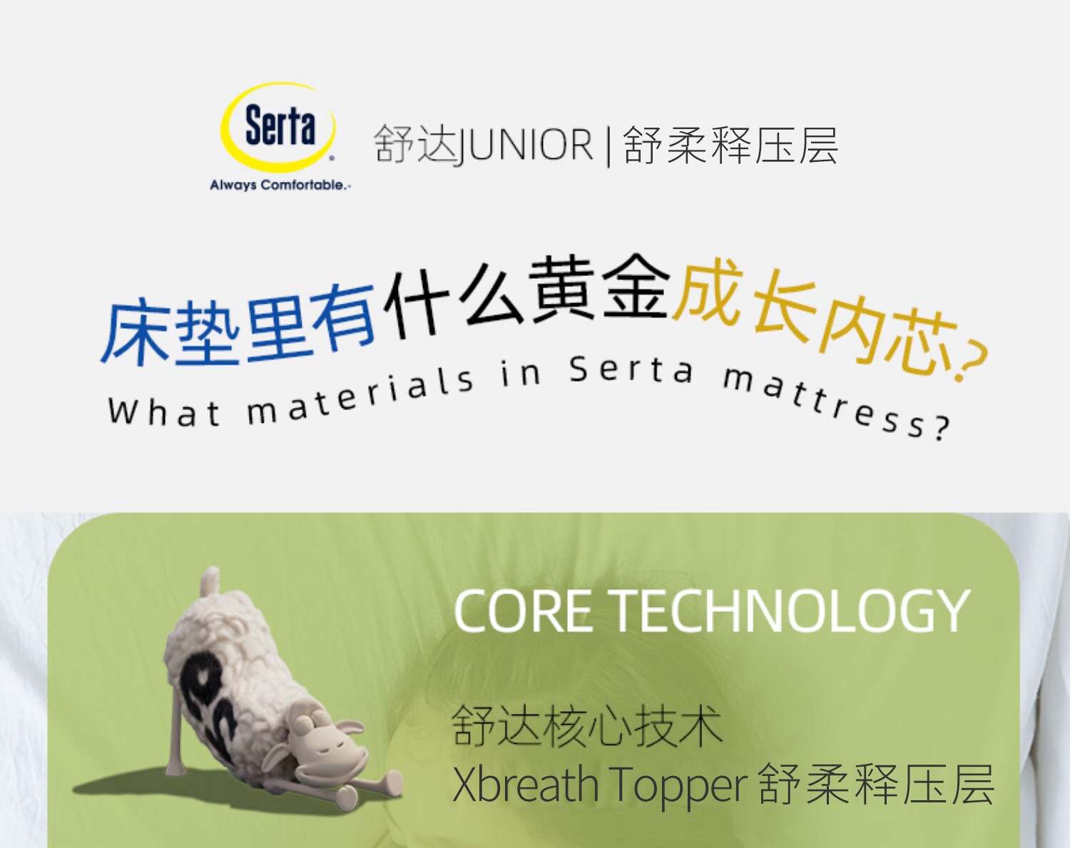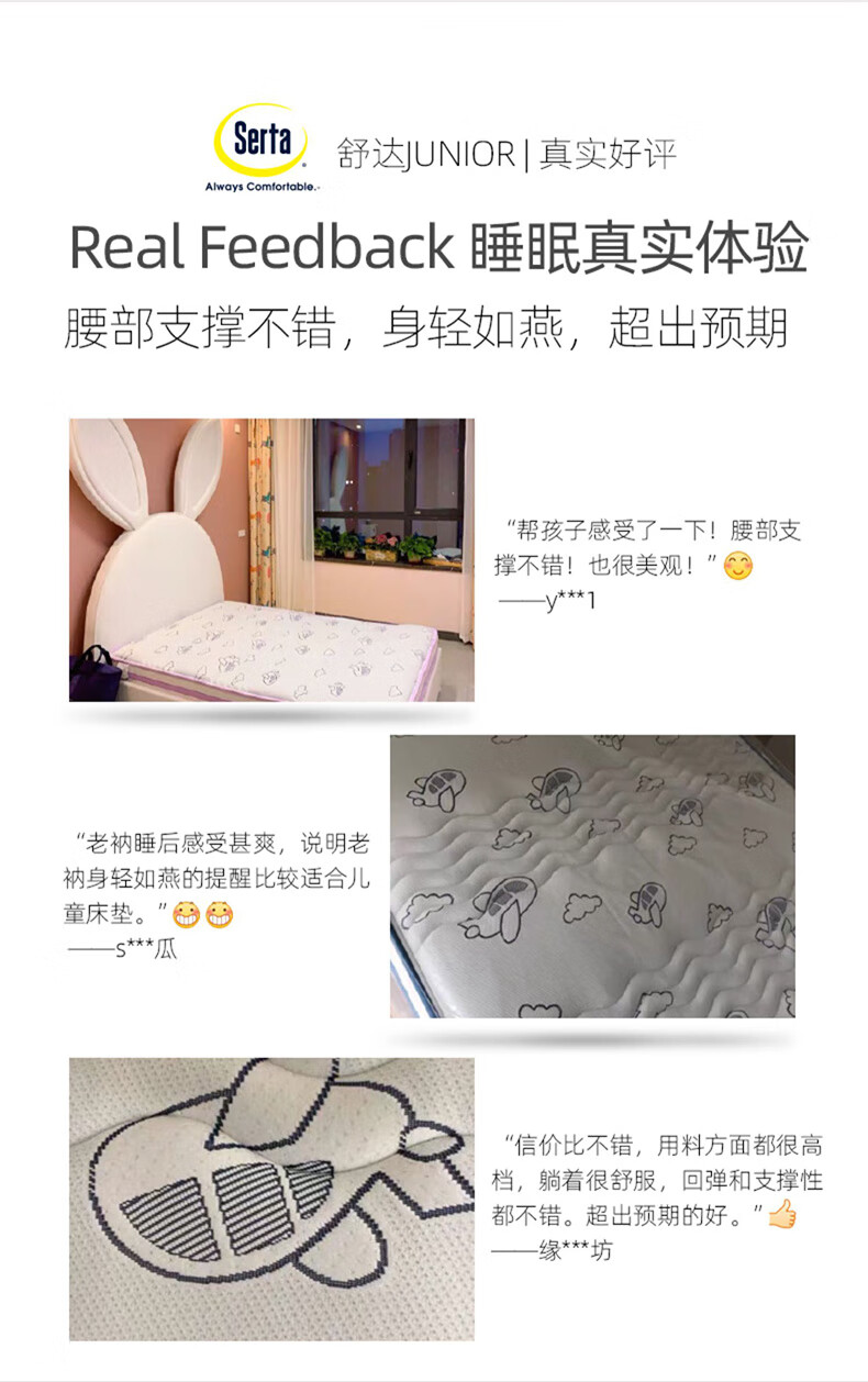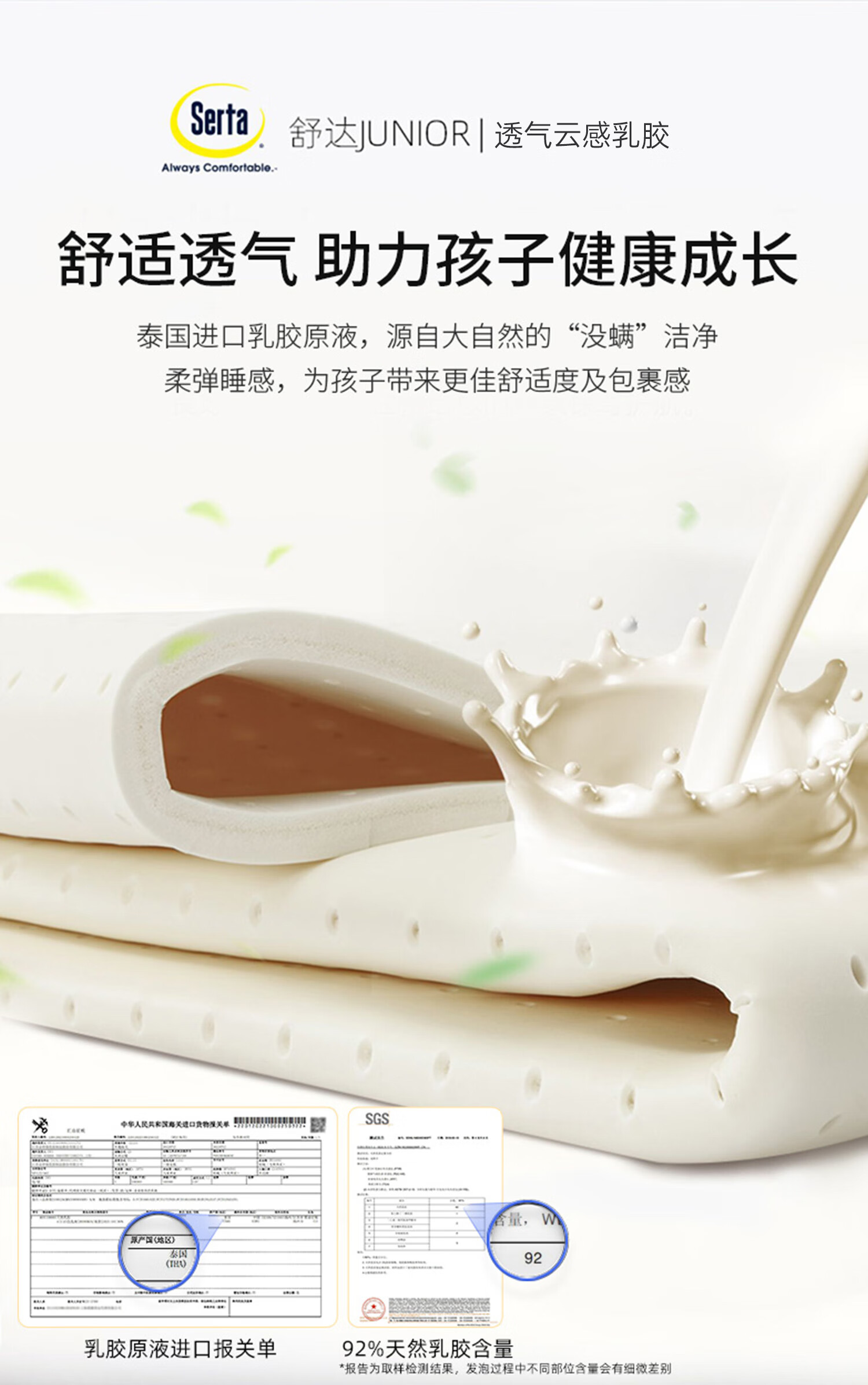 舒达(serta) 梦想家A1蓝 乳胶整网弹簧青少年护脊儿童床垫 1.2*2米偏硬