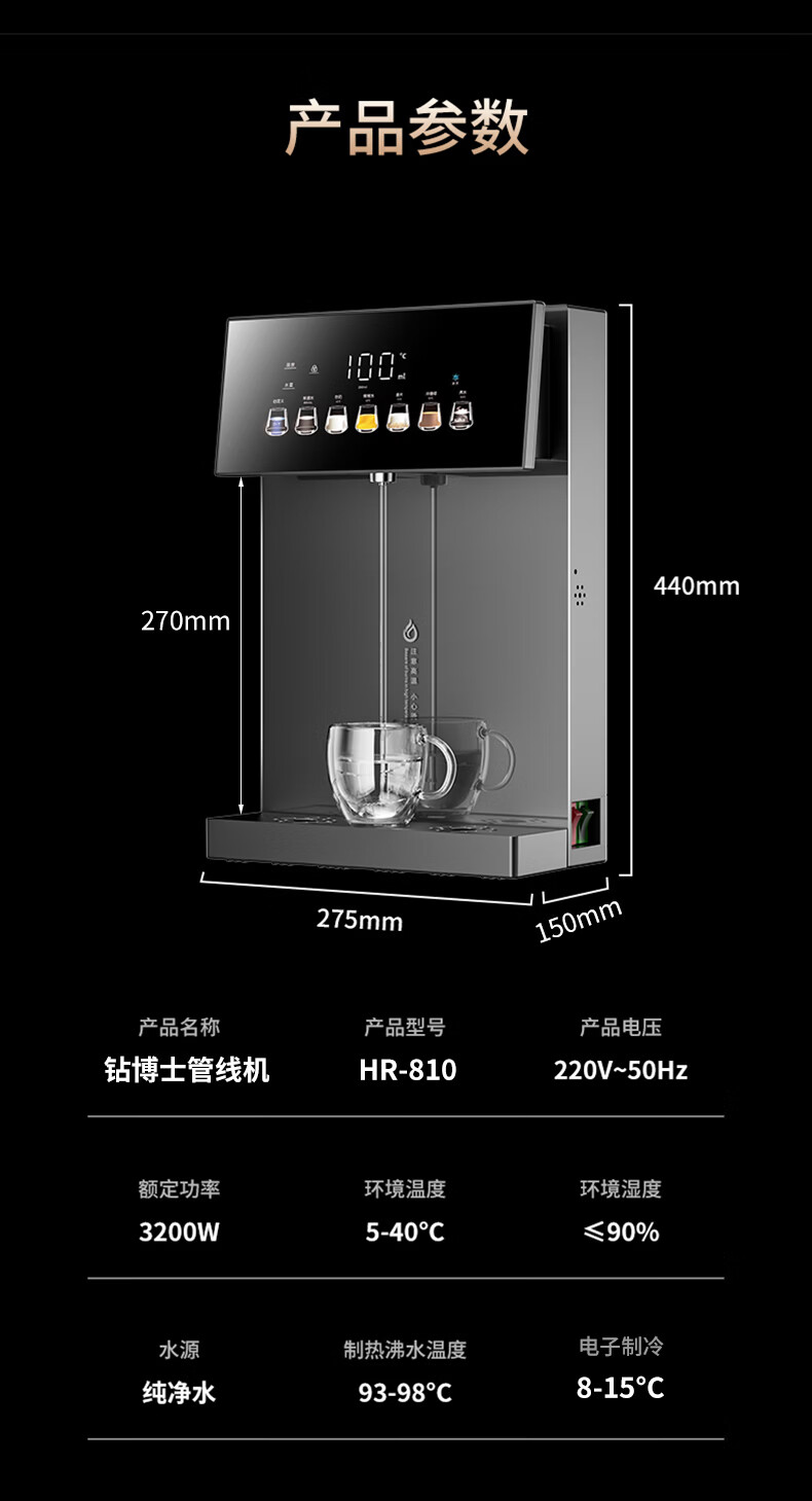 钻博士语音管线机家用壁挂式冷热饮水机2026新款台式接桶装水可连净水器高端直饮机即热式3秒速热机自吸 制冷即热【白色】语音【净水器专用款】