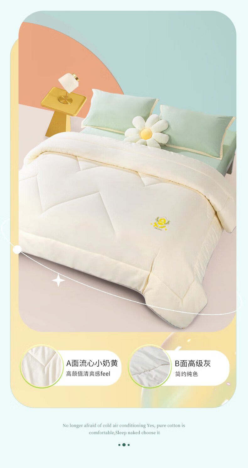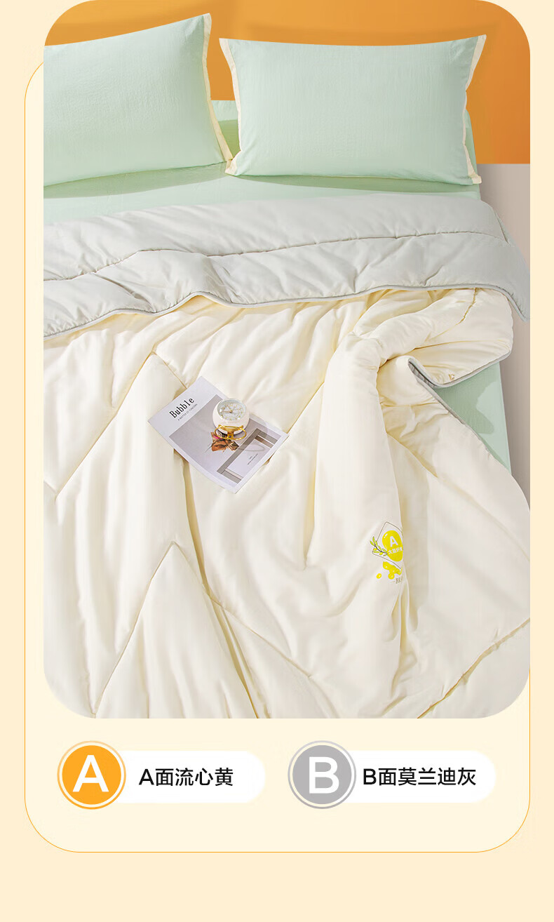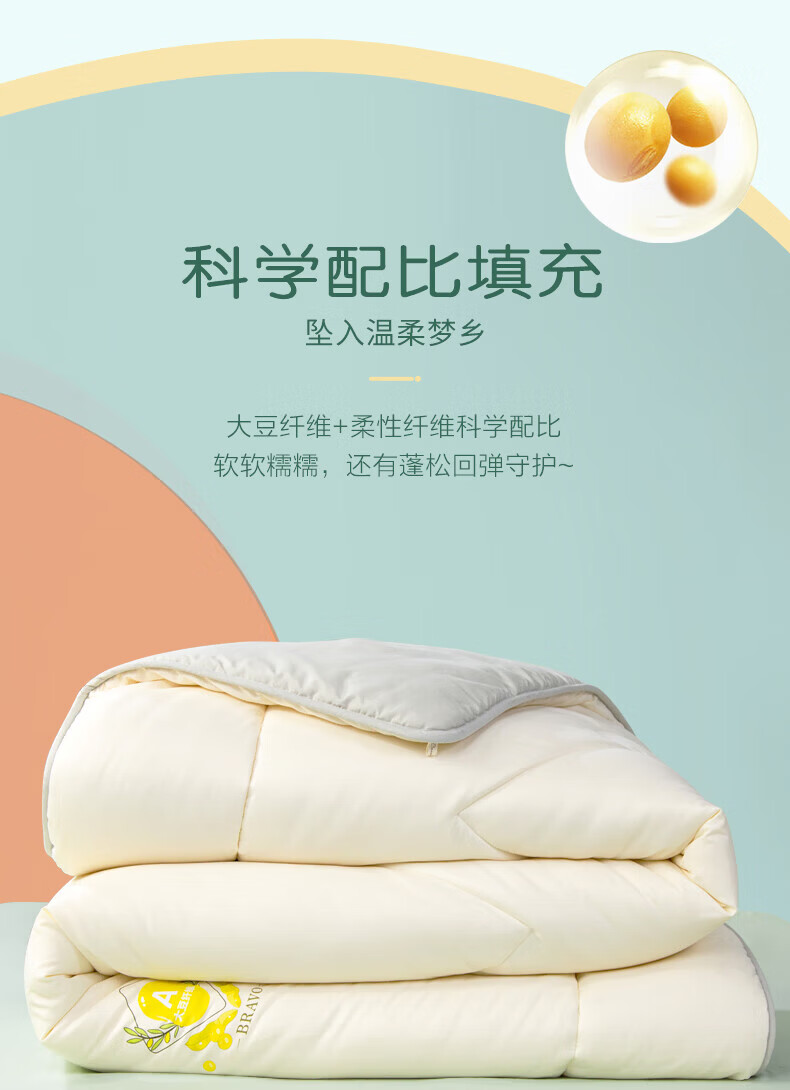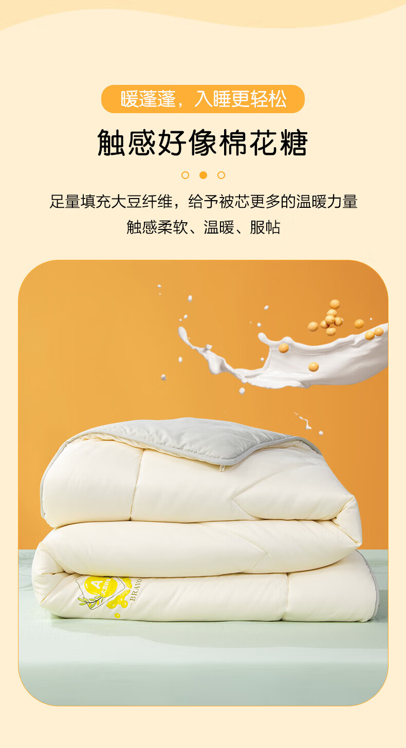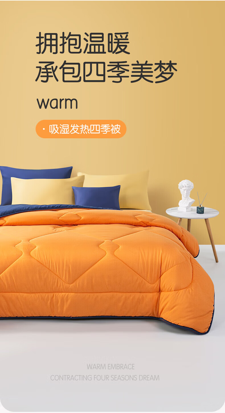 馨而乐(Bravo)富安娜出品A类面料春秋透气四季被大豆纤维被加厚保暖蓬松冬厚被 【吸湿四季被】A类面料-活力橙 四季被 1.8米床230*229cm)
