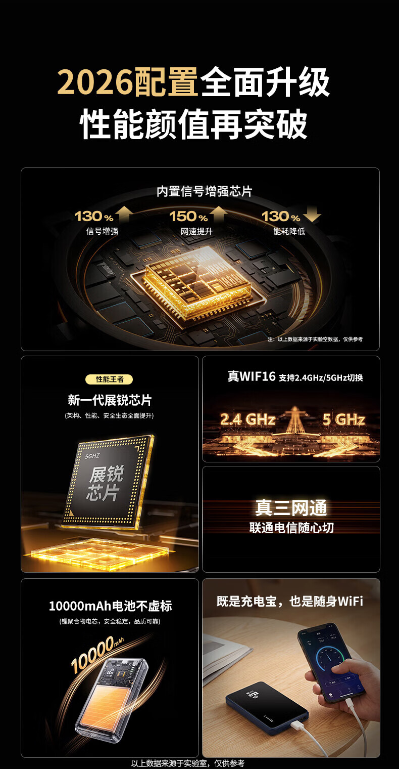 乔锐斯随身wifi5ghz移动2026款全国通用无线流量免拉网线充电宝二合一无限三网通9.9月租电脑游戏专用wf 【1万毫安可充电-蓝】-72小时续航5Ghz