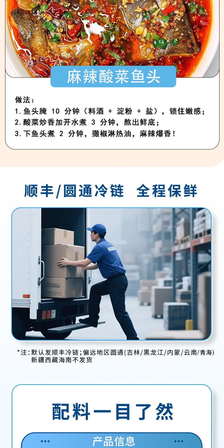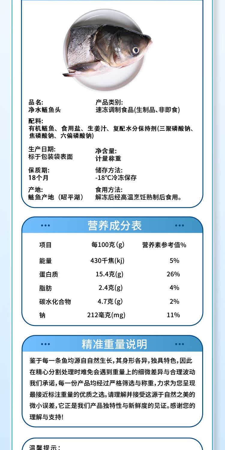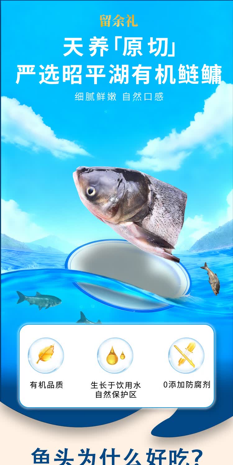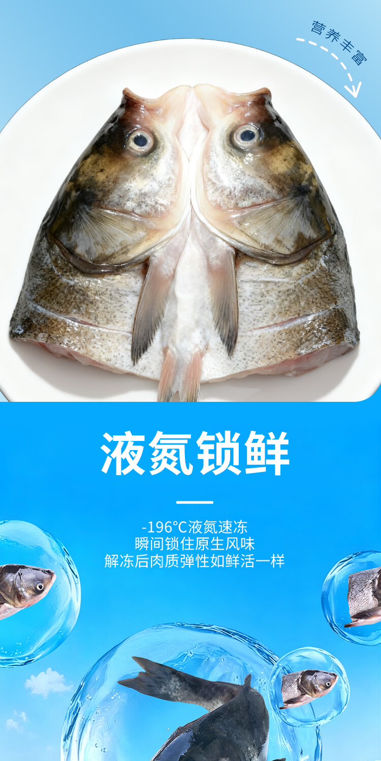 【到手两袋】留余礼有机鱼鲜切大鱼头有机鲢鱼活鱼新鲜加工大头鱼 鱼头750g-1000g*2袋 产自一级水源地II类水