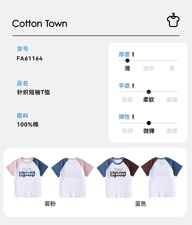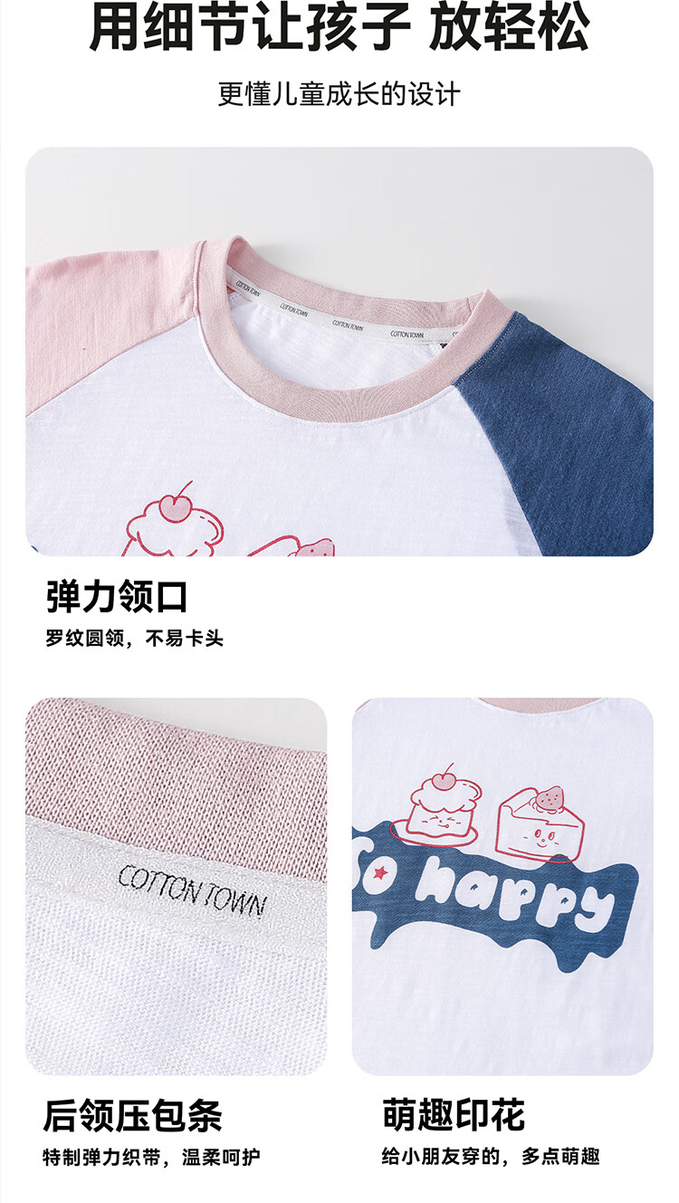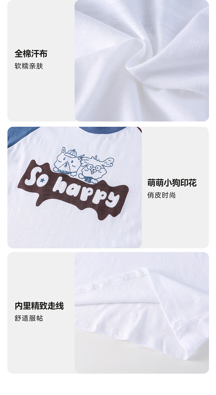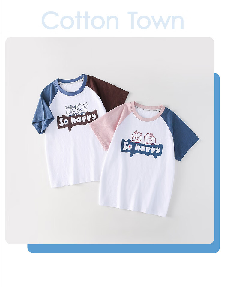 棉花堂(cottontown)【100%棉】棉花堂童装儿童短袖T恤A类抗菌竹节棉男童女童休闲上衣 蓝色 90 90/52