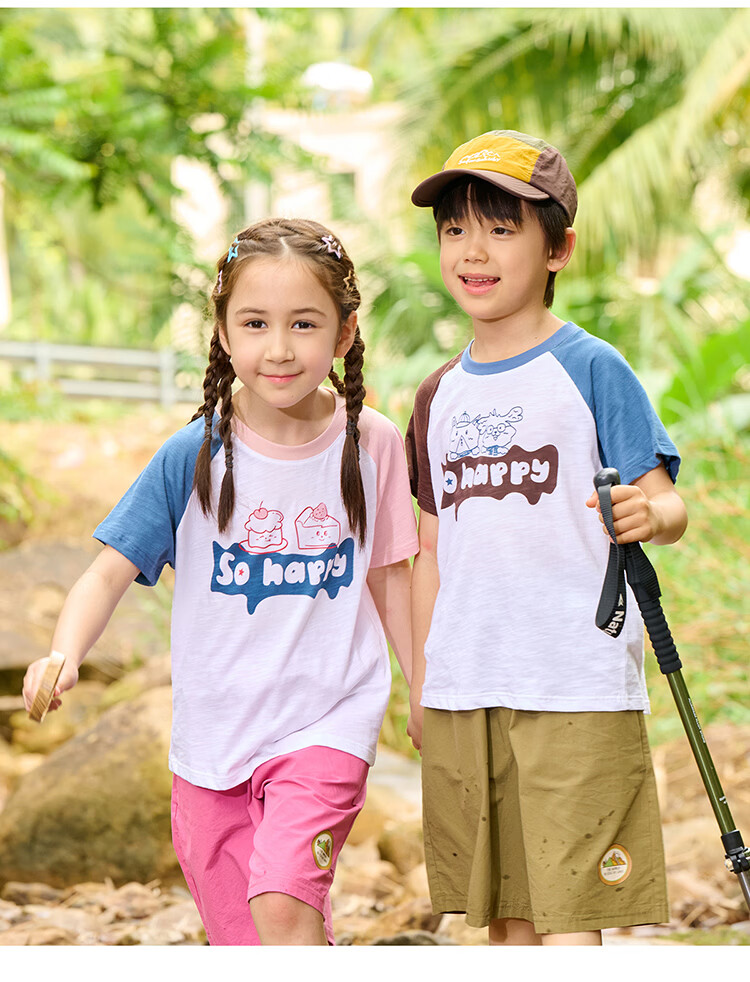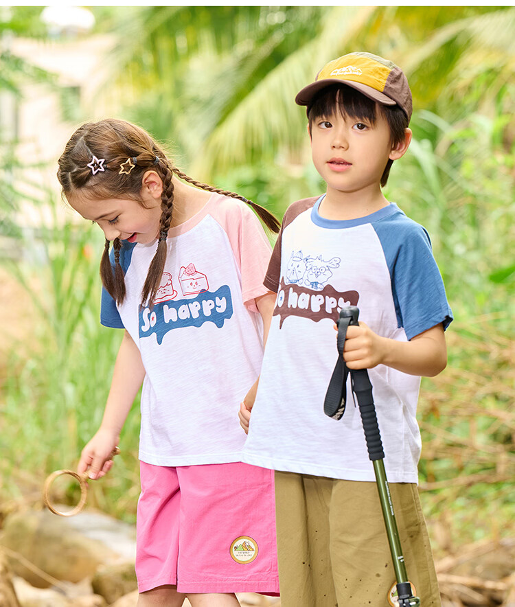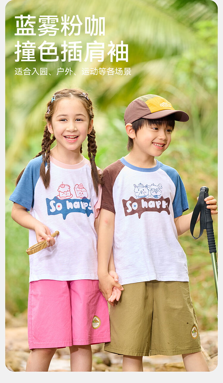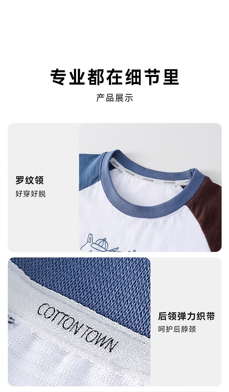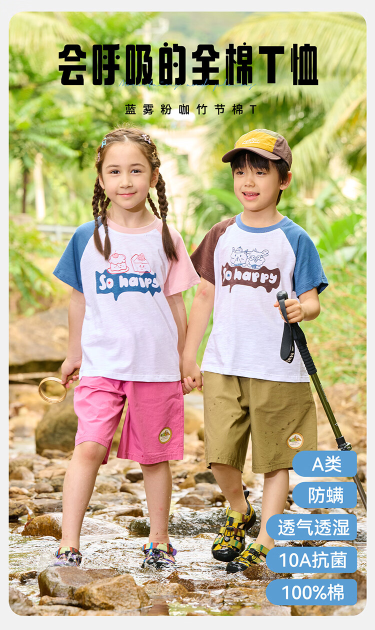 棉花堂(cottontown)【100%棉】棉花堂童装儿童短袖T恤A类抗菌竹节棉男童女童休闲上衣 蓝色 90 90/52