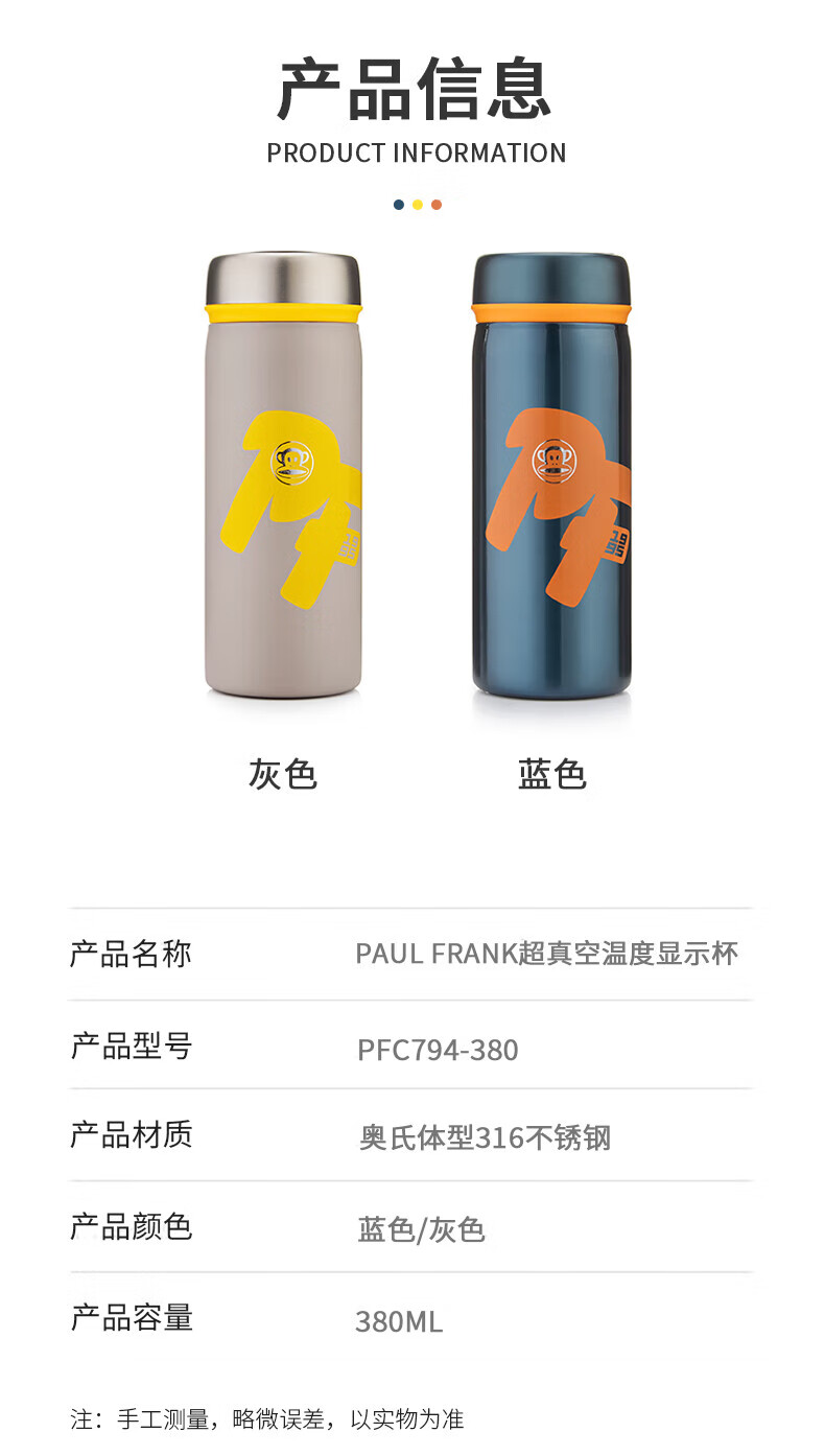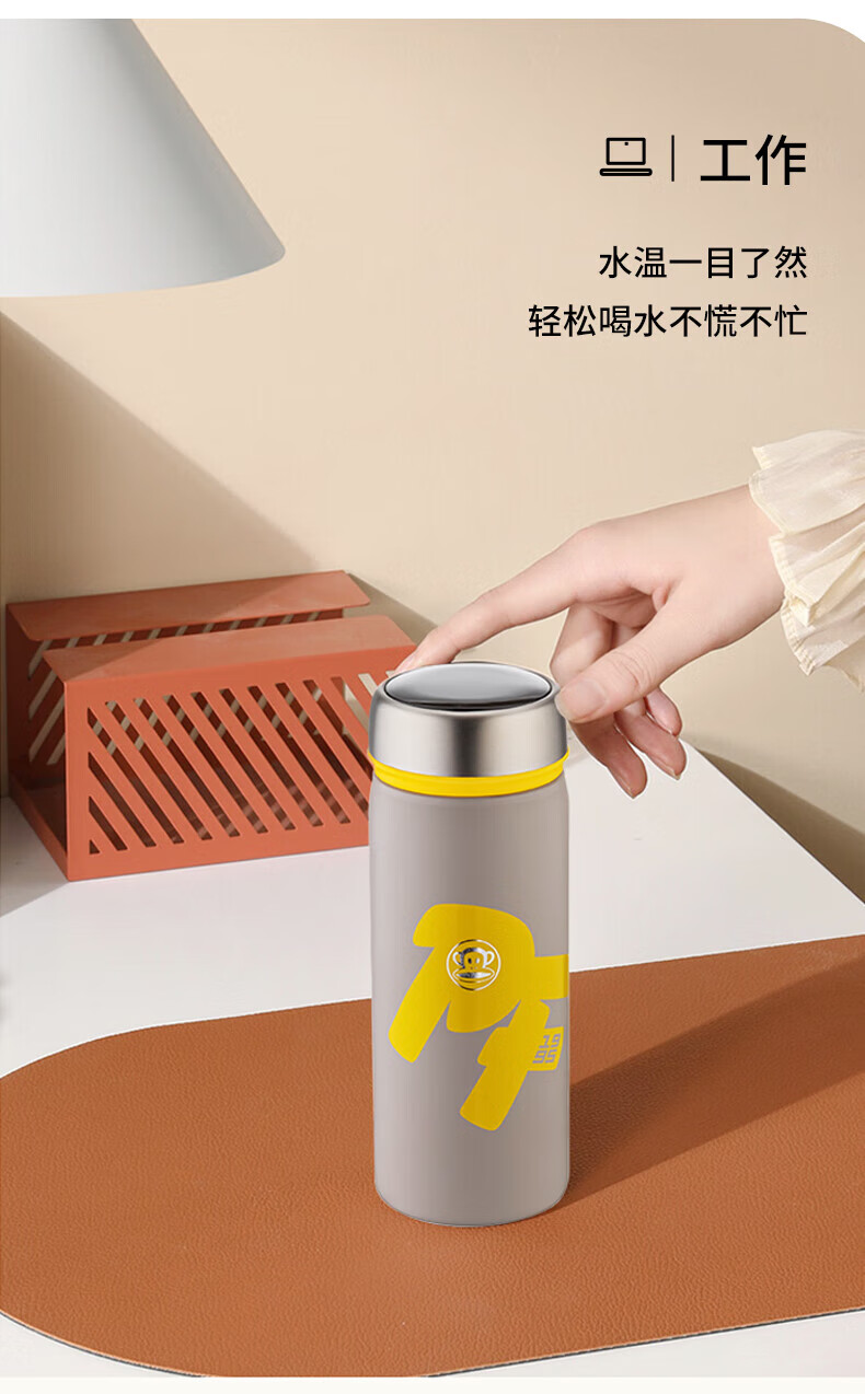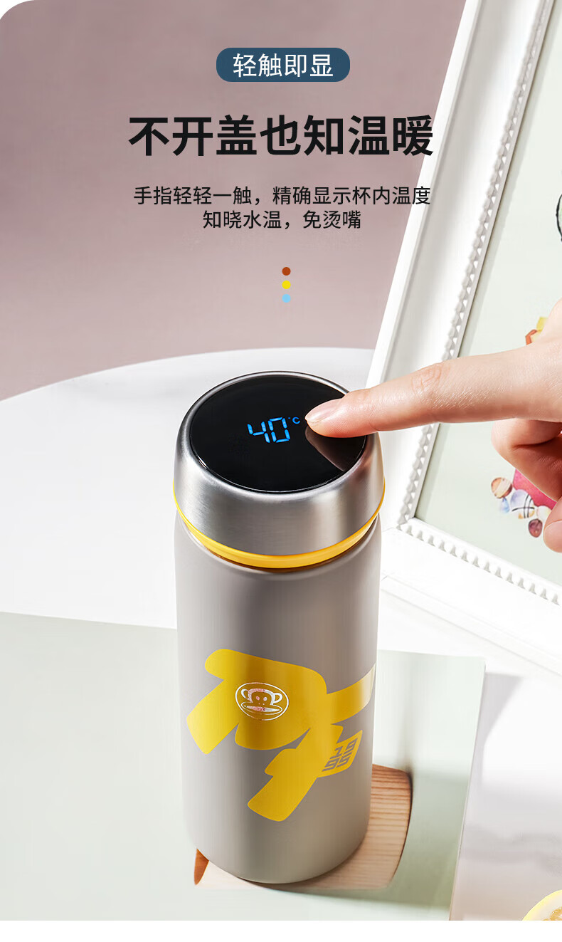大嘴猴(paul frank)智能保温杯 电子温显 运动便携 灰色380ml