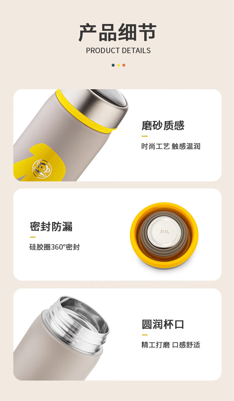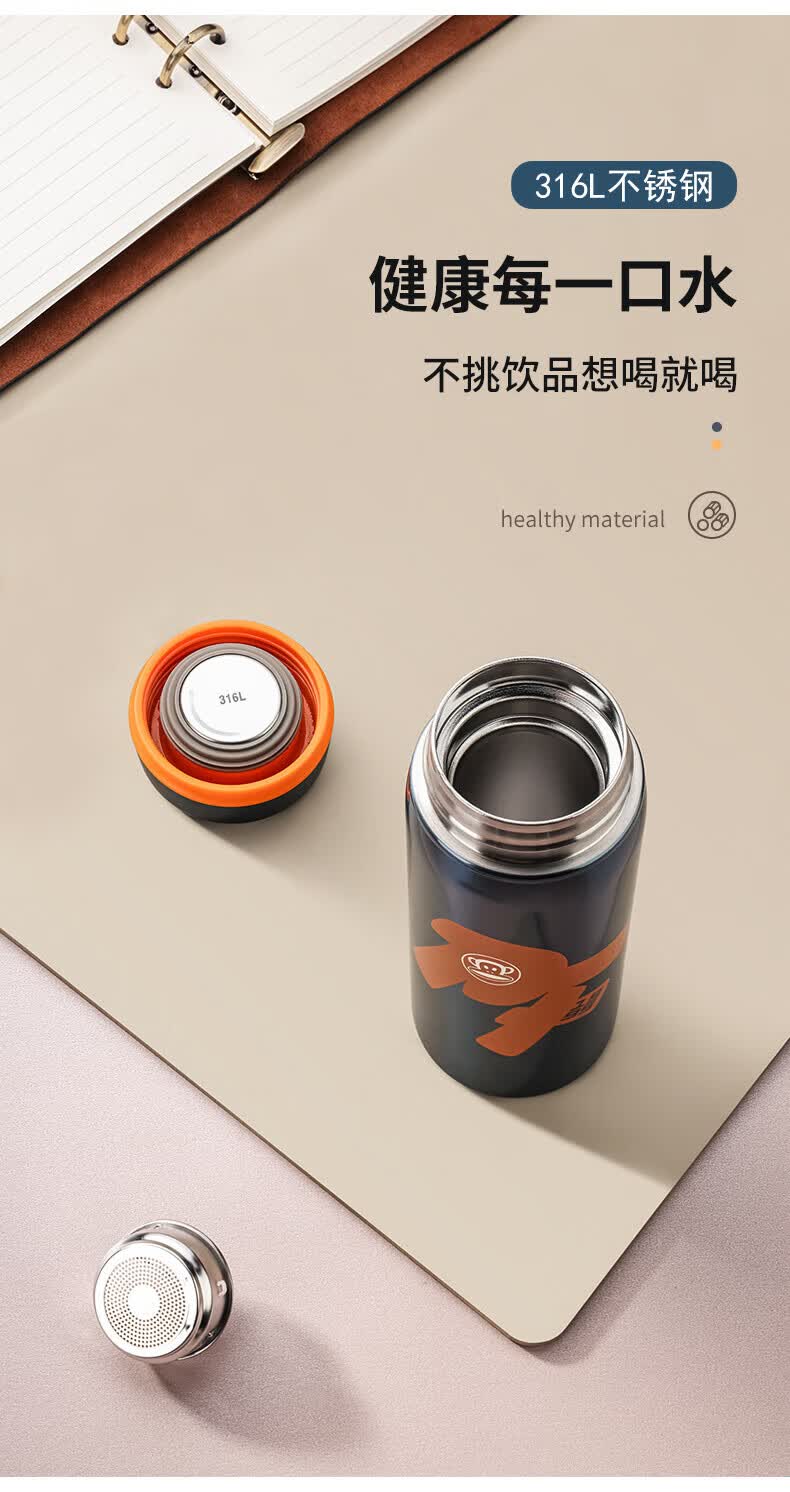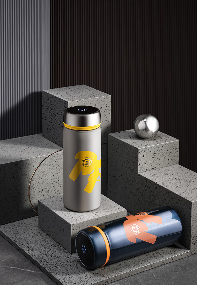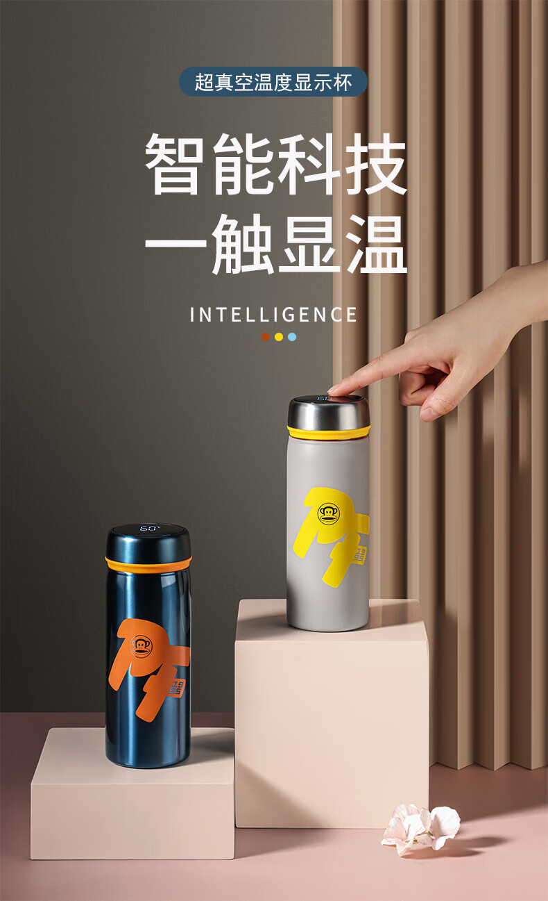大嘴猴(paul frank)智能保温杯 电子温显 运动便携 灰色380ml