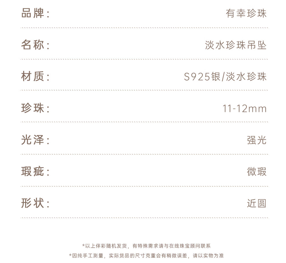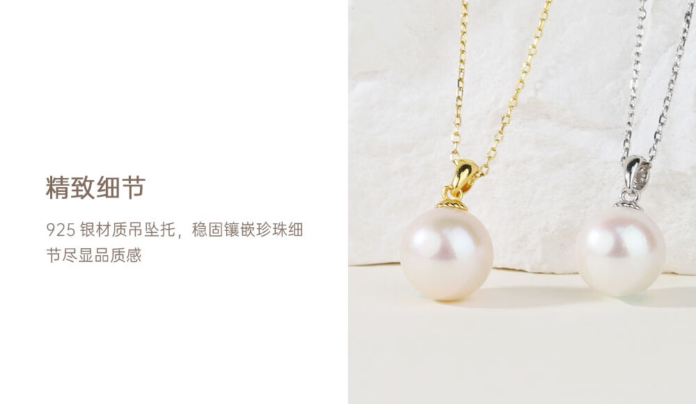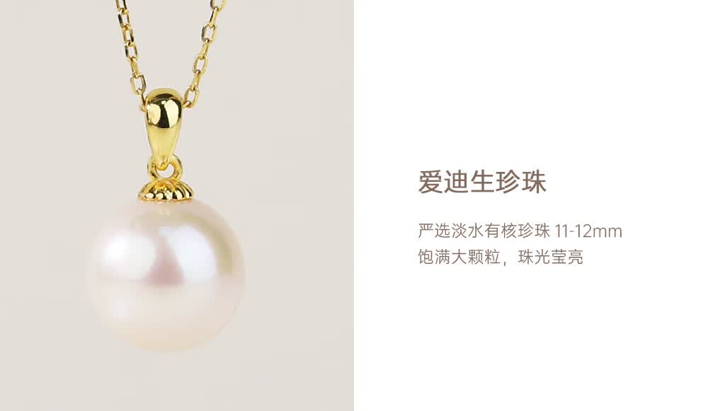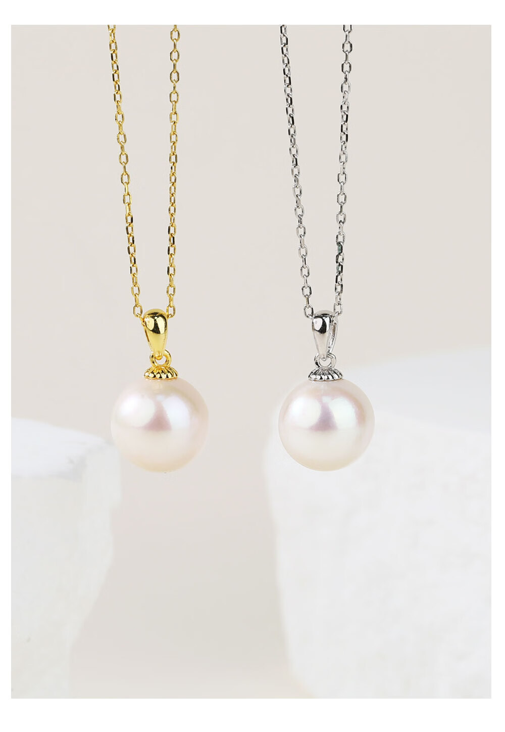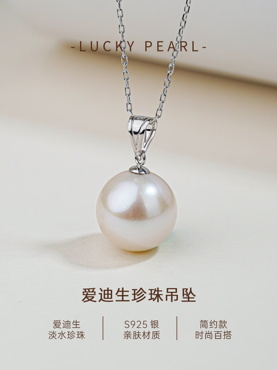 有幸珍珠吊坠 S925银爱迪生有核淡水珍珠吊坠简约百搭款生日项链礼物 10-11mm 圆/强光【S925银白-厚版瓜子扣】【赠银链】