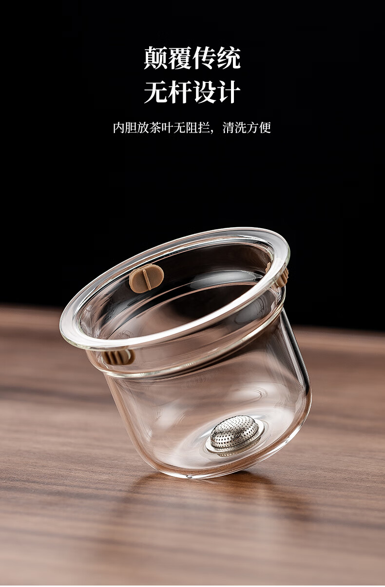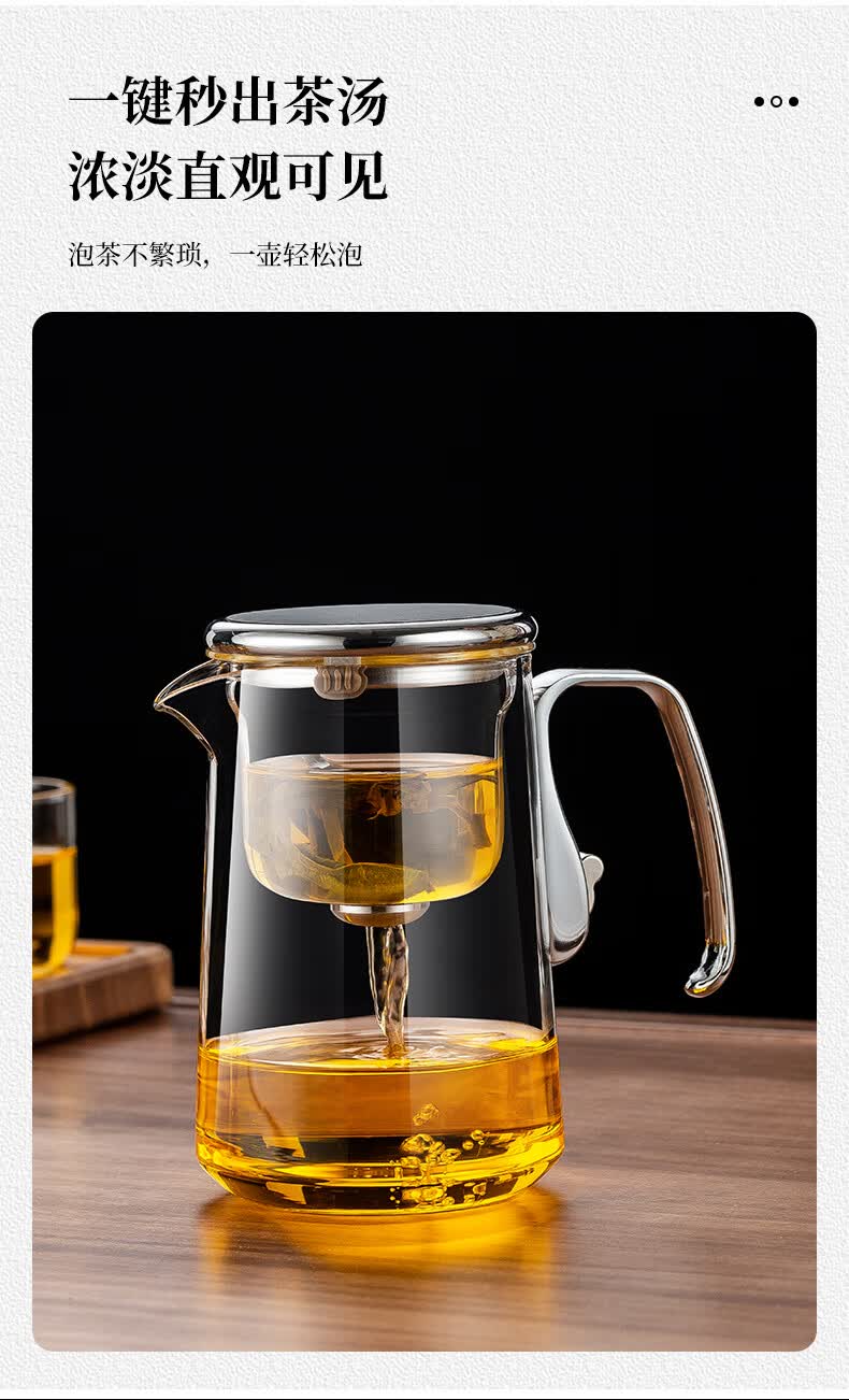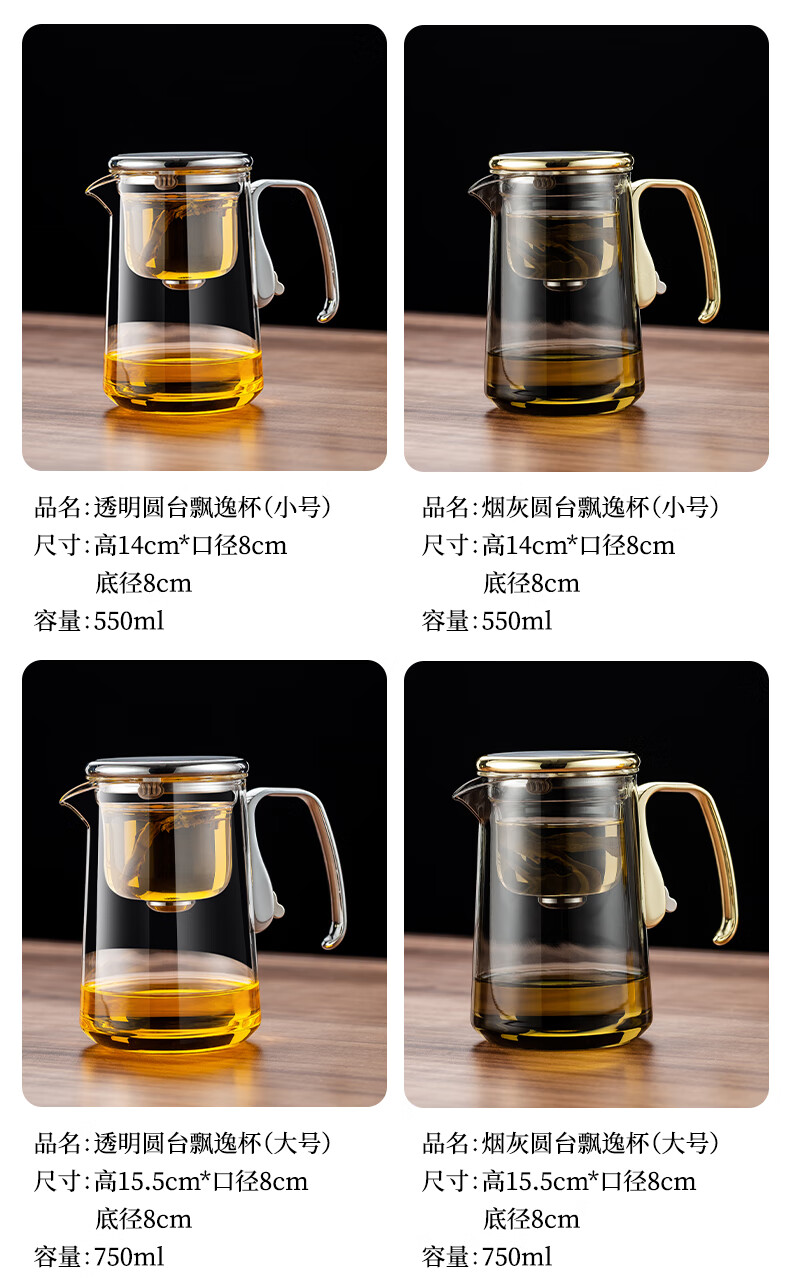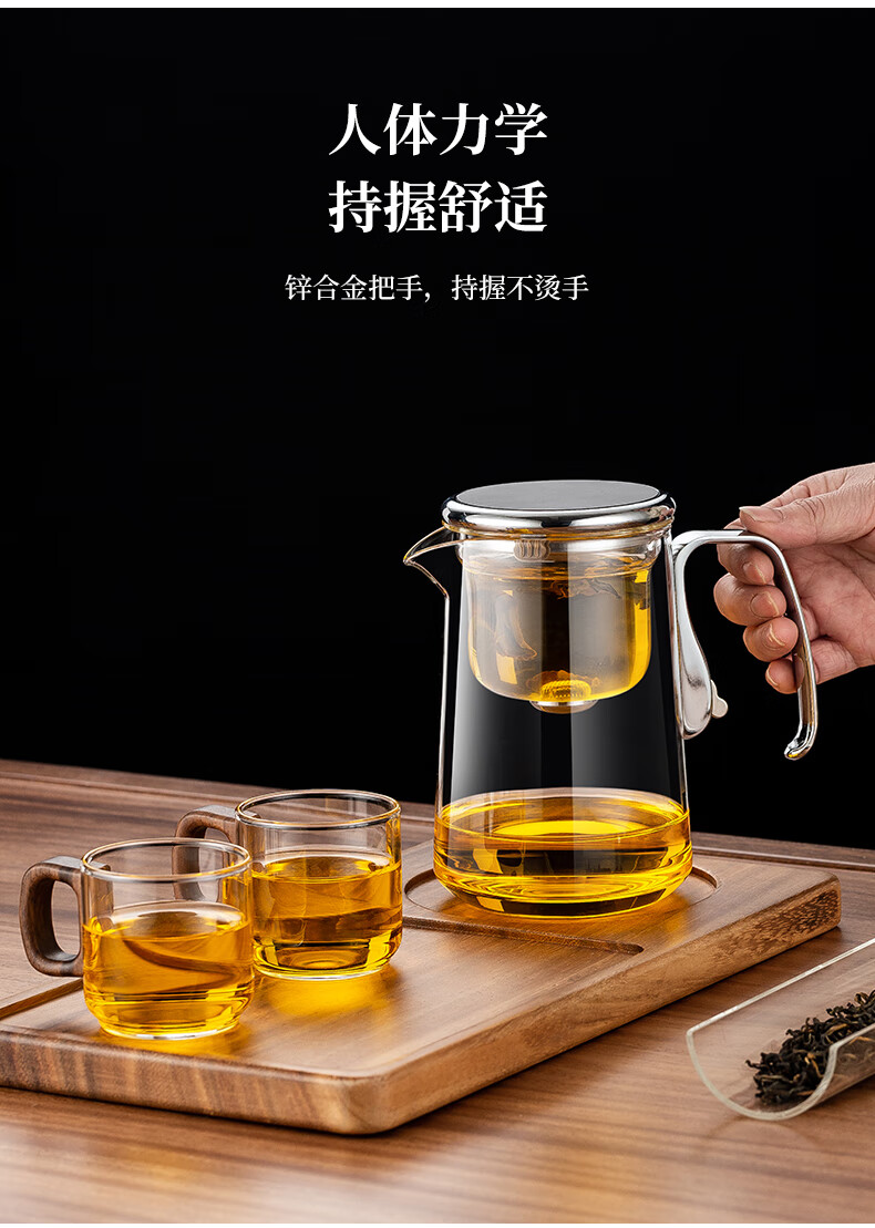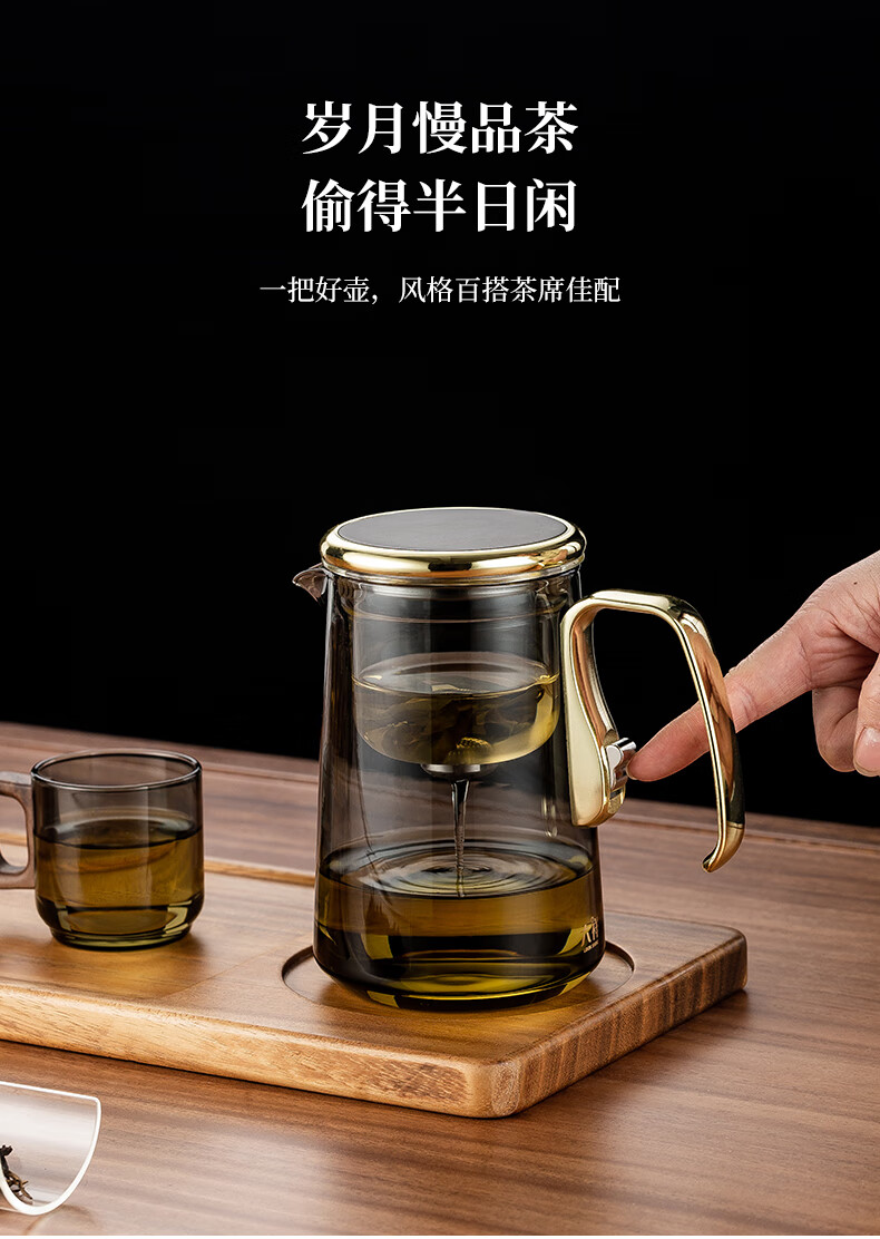 自像堂合金把飘逸杯泡茶壶一键过滤高档全玻璃内胆茶水分离杯内胆配件 鼓形合金飘逸杯【灰色550ml】