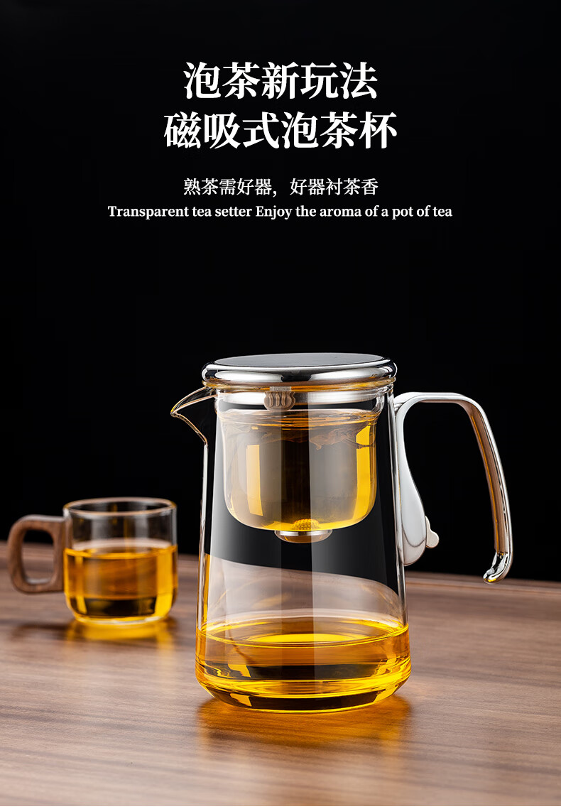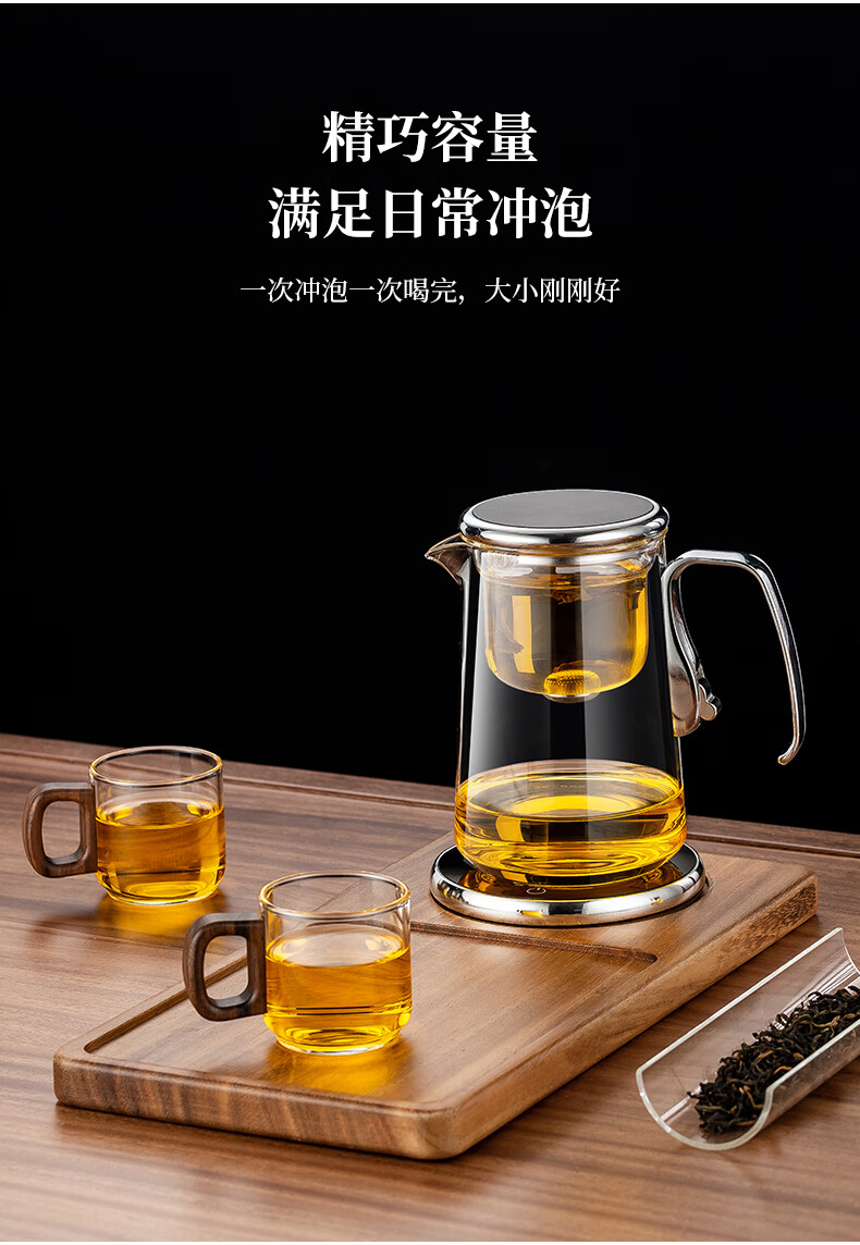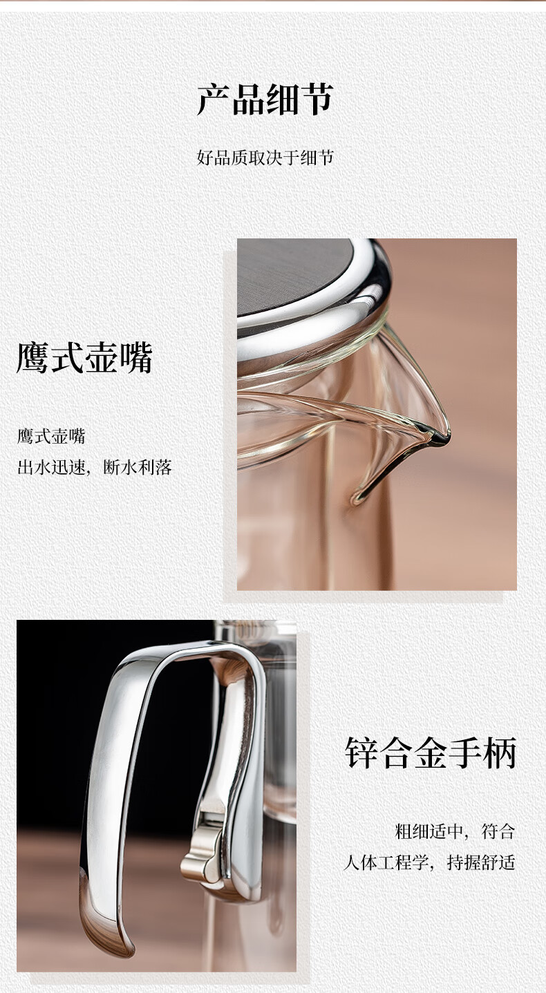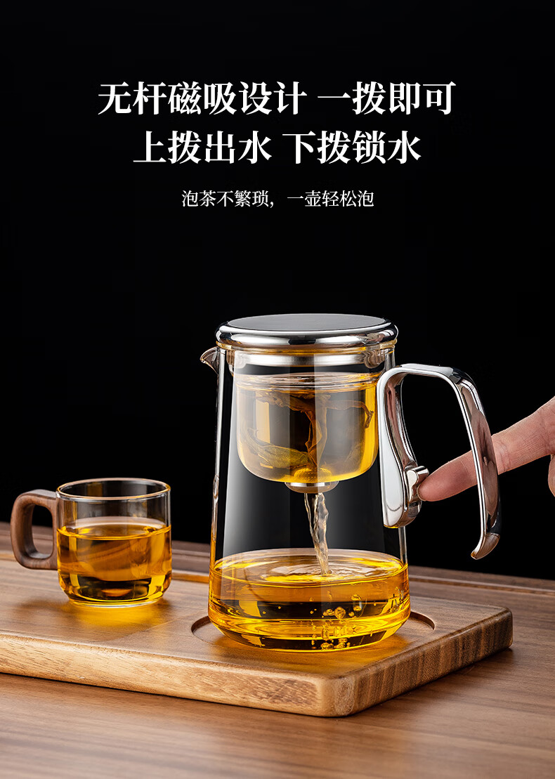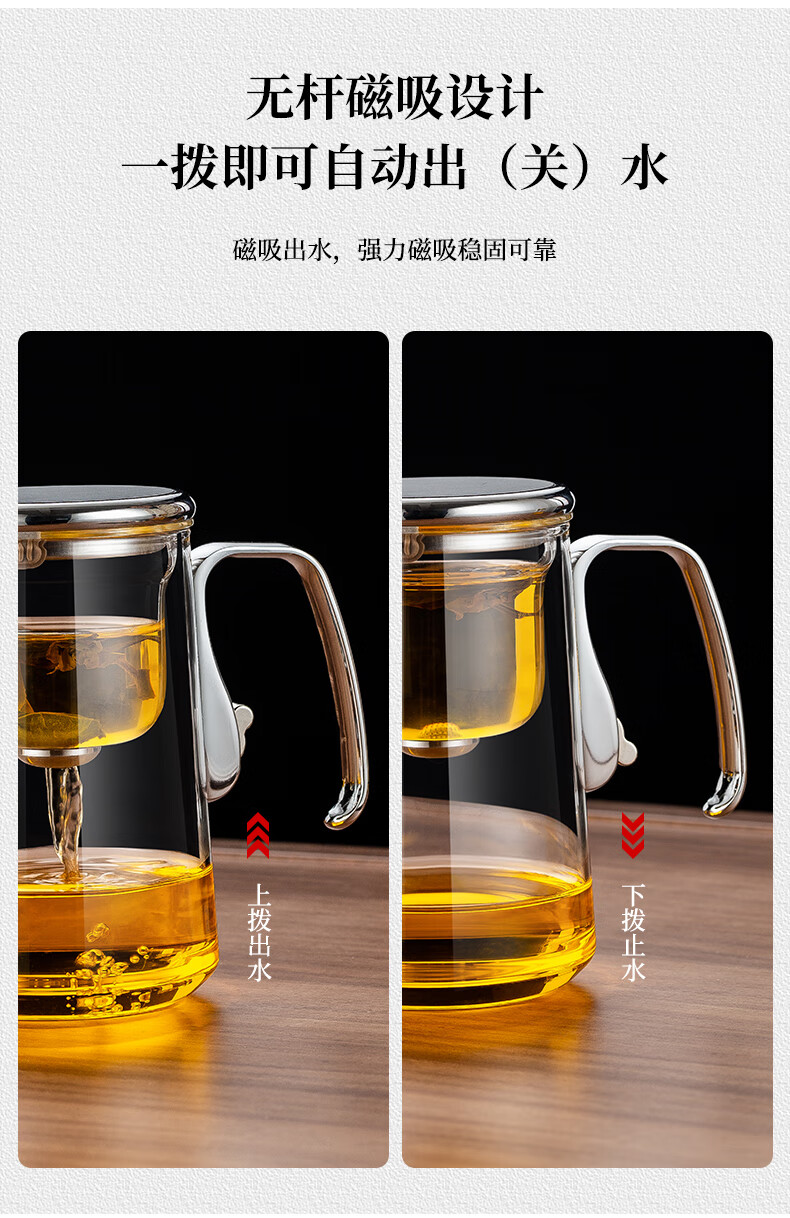自像堂合金把飘逸杯泡茶壶一键过滤高档全玻璃内胆茶水分离杯内胆配件 鼓形合金飘逸杯【灰色550ml】