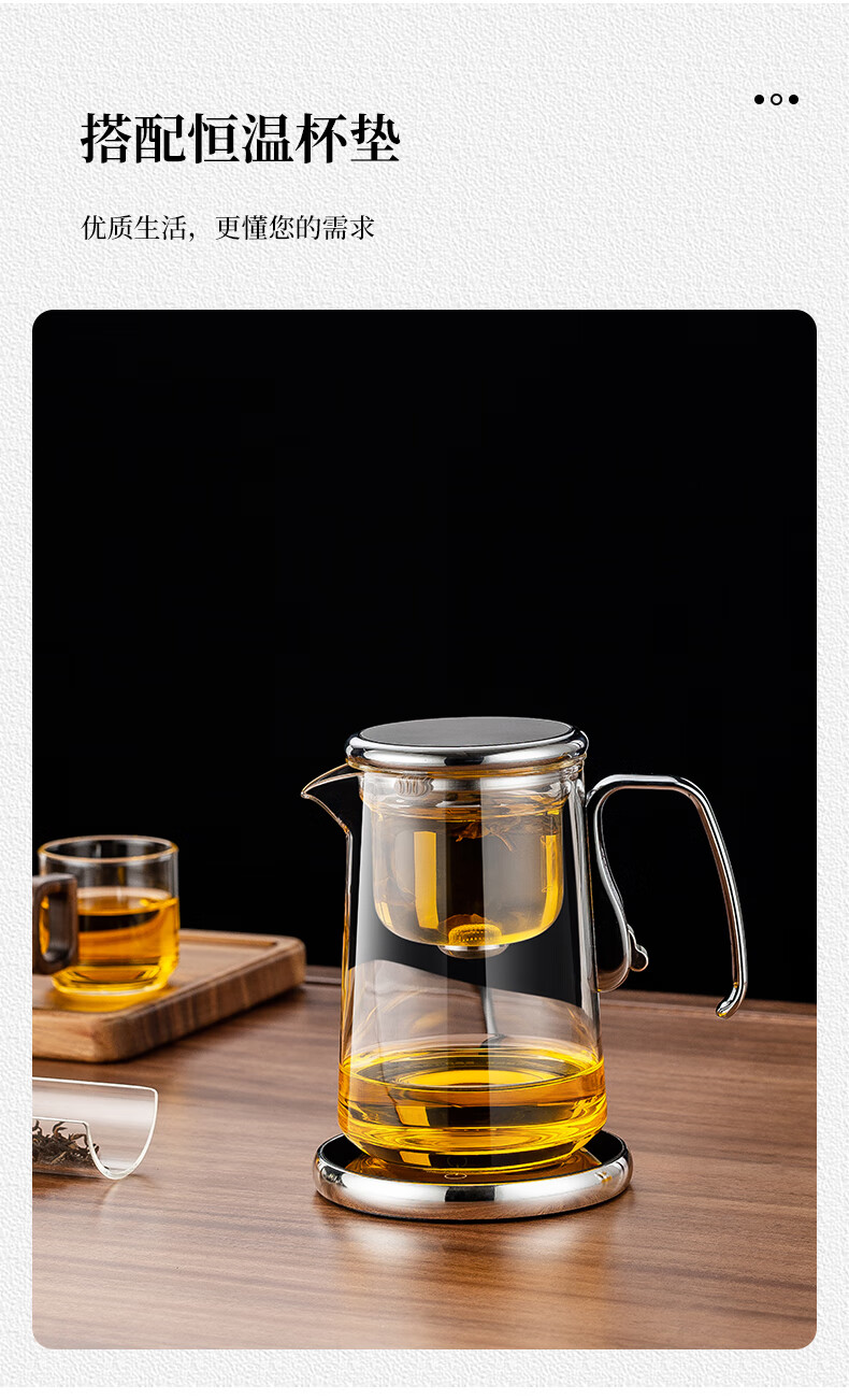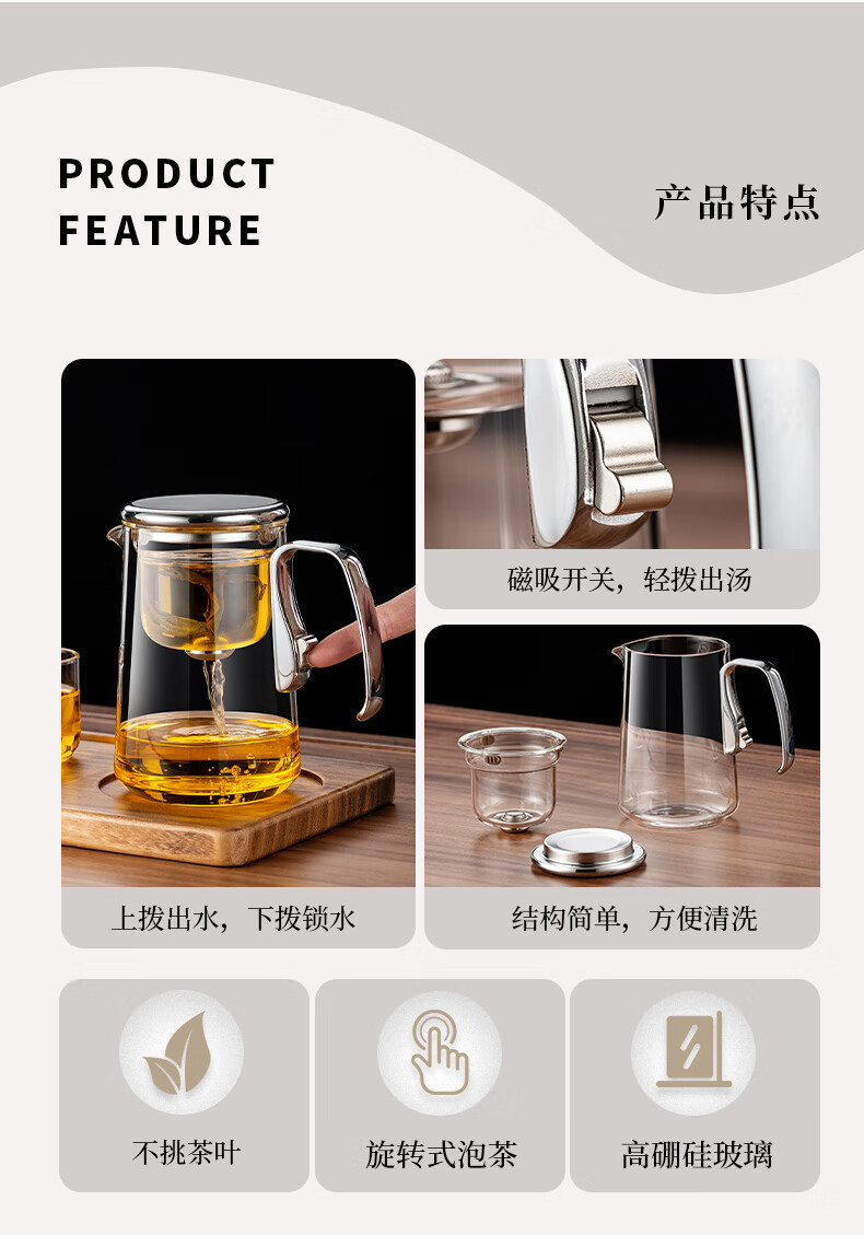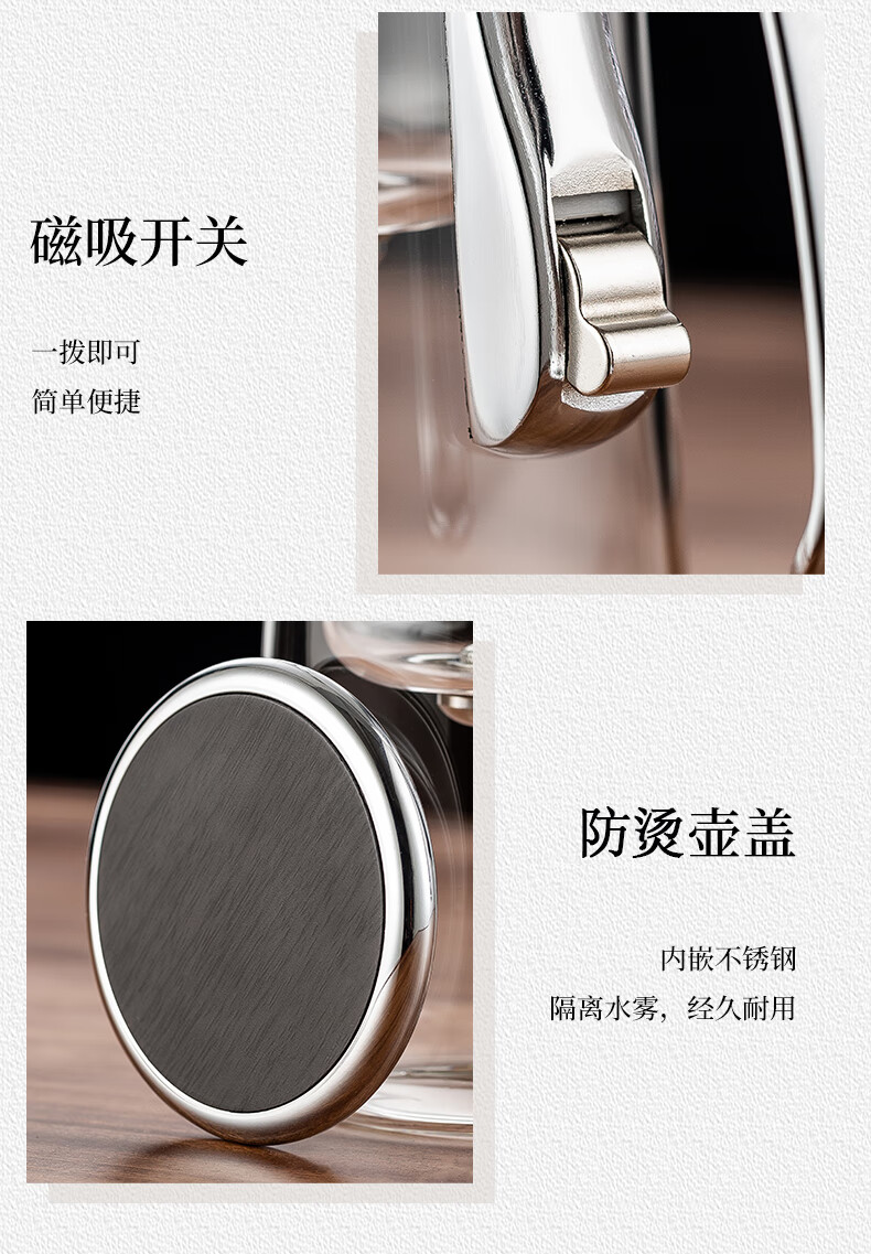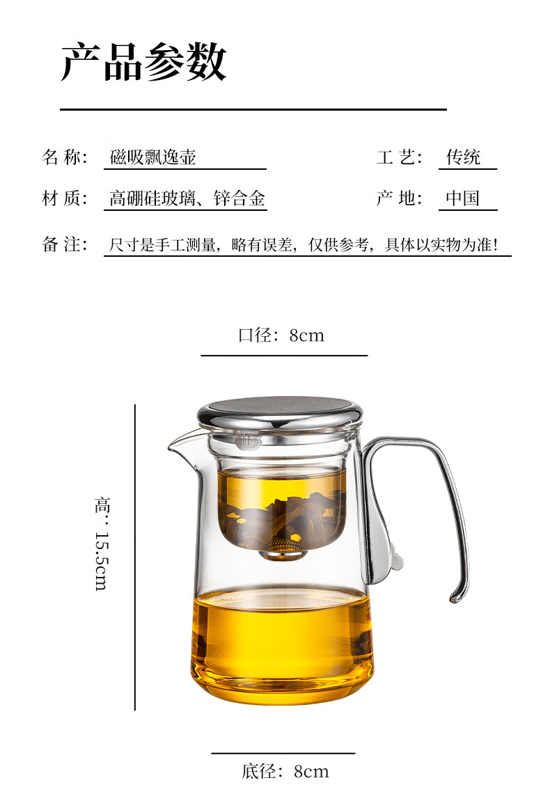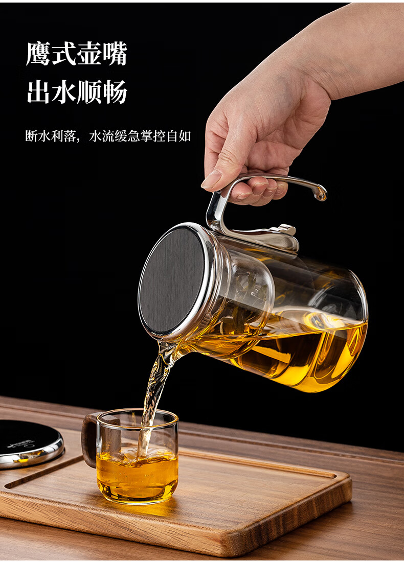 自像堂合金把飘逸杯泡茶壶一键过滤高档全玻璃内胆茶水分离杯内胆配件 鼓形合金飘逸杯【灰色550ml】