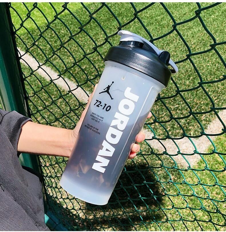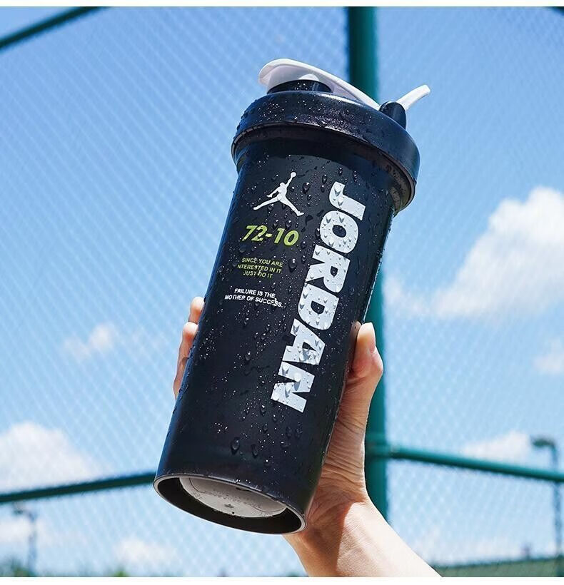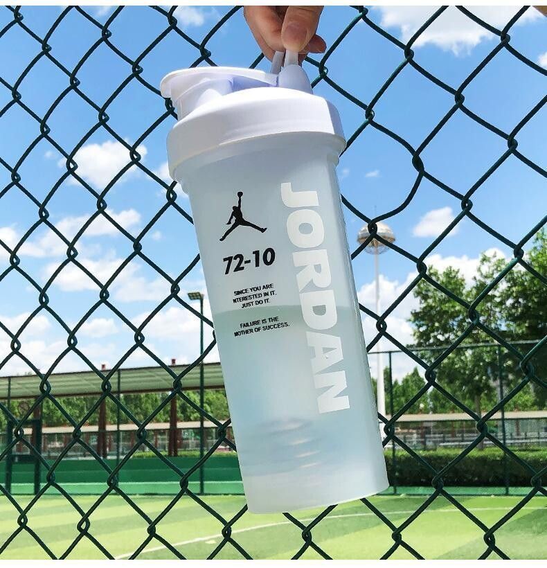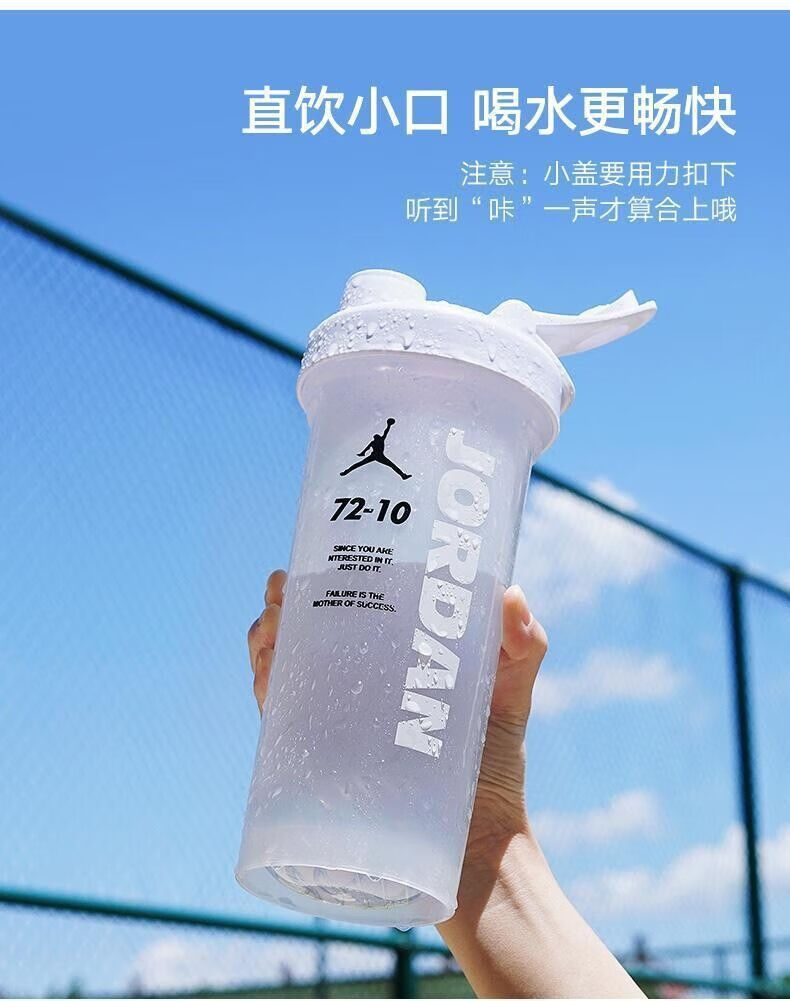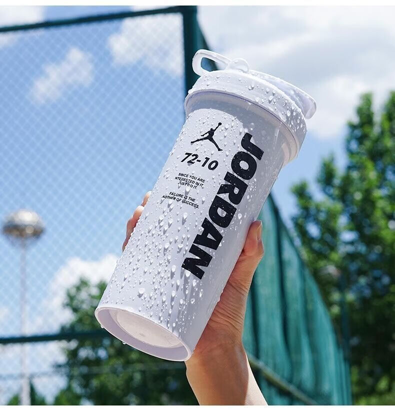 摇摇杯运动水杯便携男学生塑料水杯大容量水壶防摔耐高温健身杯子 白色 【600毫升】JORD扣篮+带刻度