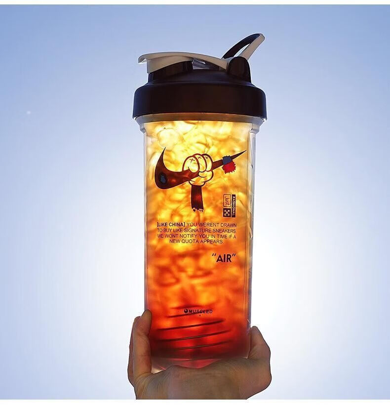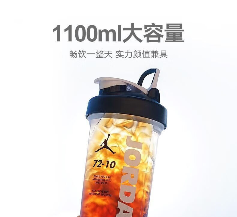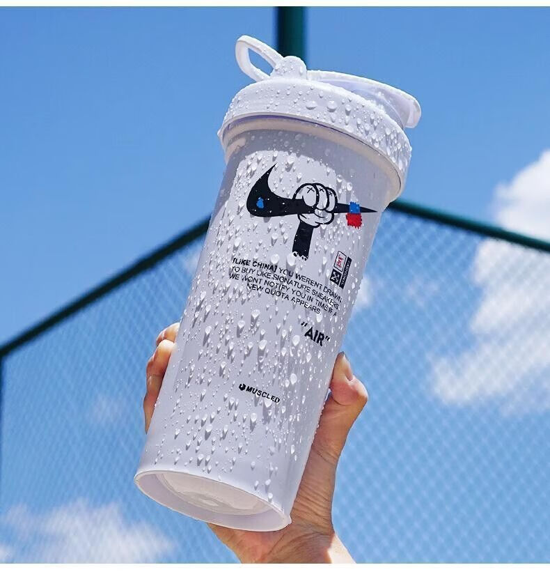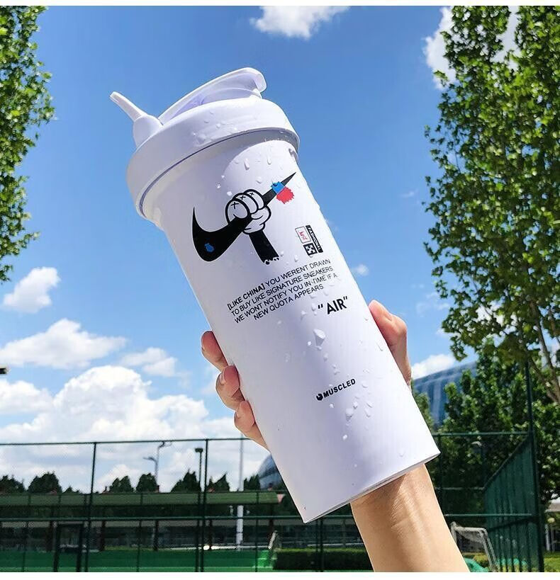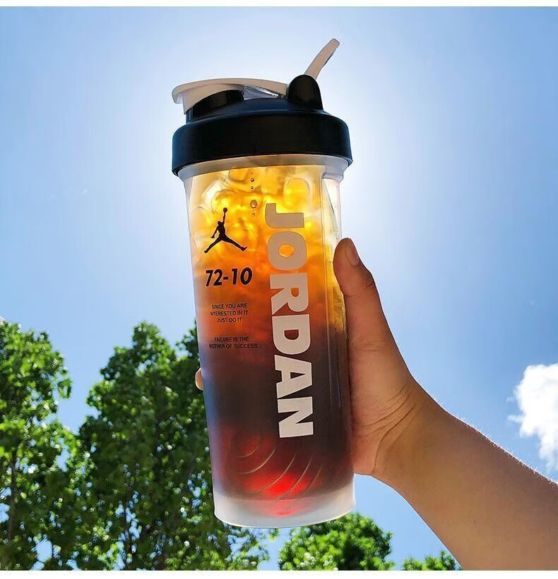 摇摇杯运动水杯便携男学生塑料水杯大容量水壶防摔耐高温健身杯子 白色 【600毫升】JORD扣篮+带刻度