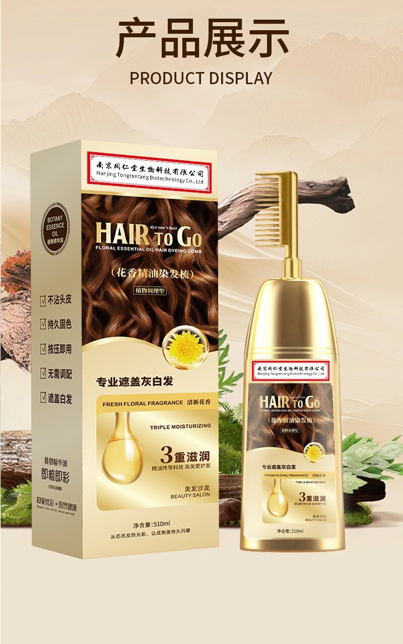 南京同仁堂同仁堂孕妇哺乳期可用染发剂纯天然植物染膏自己在家梳子不粘头皮 黑茶色510ml(可盖白发)