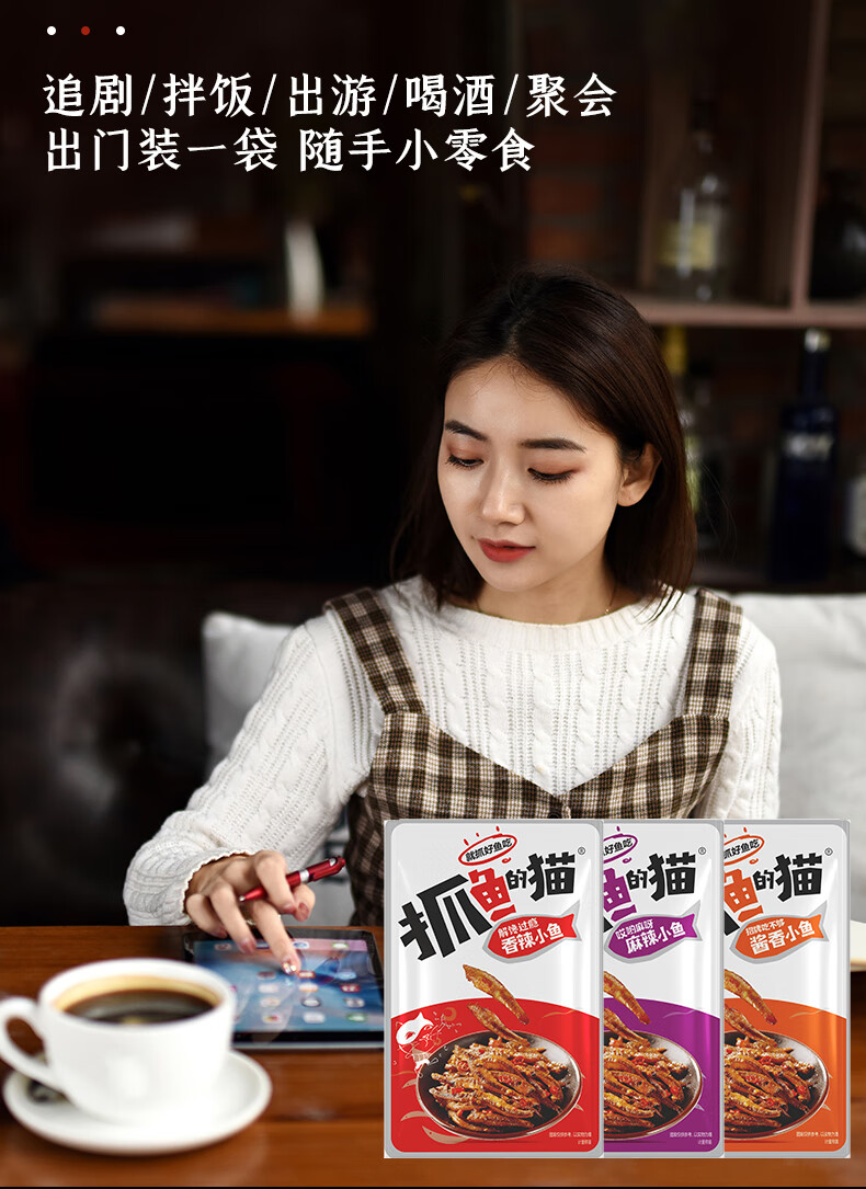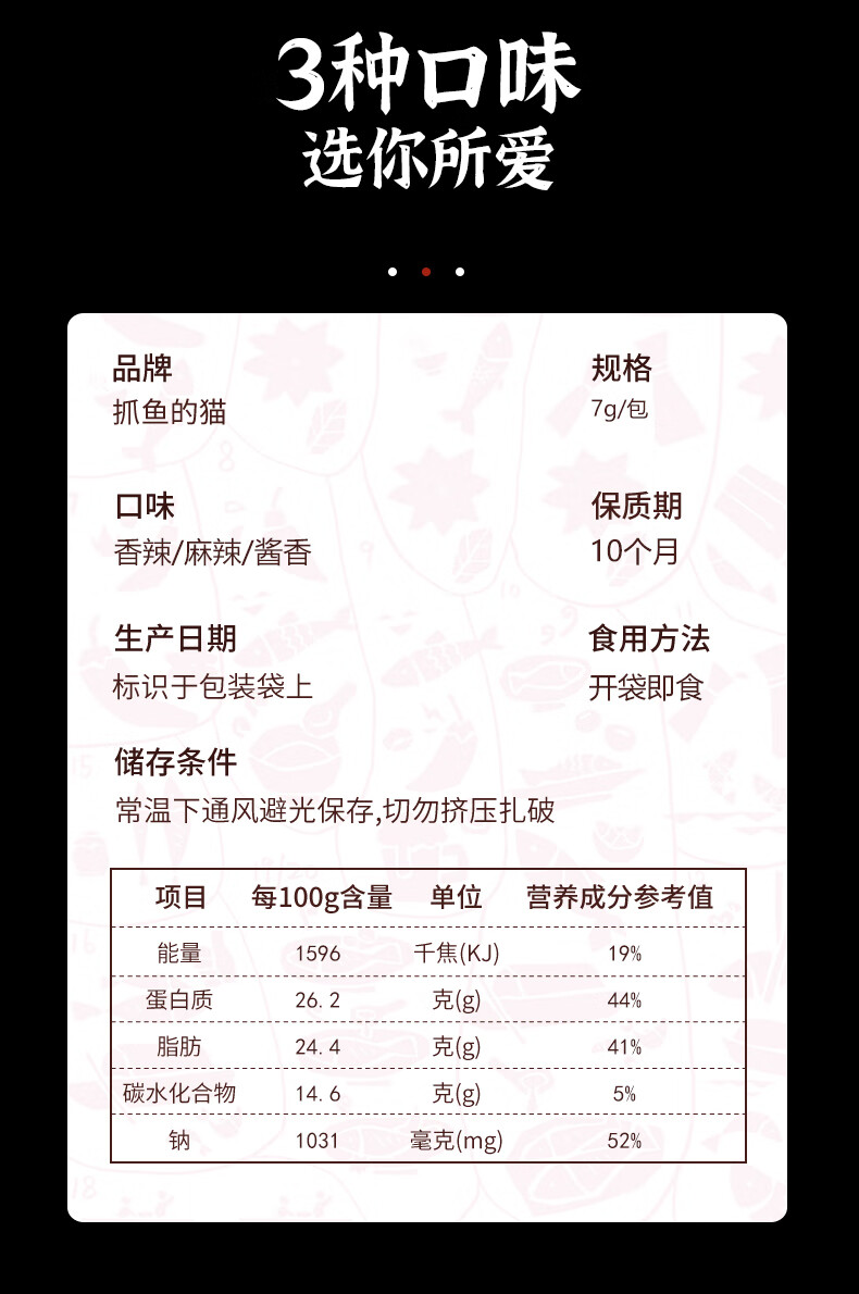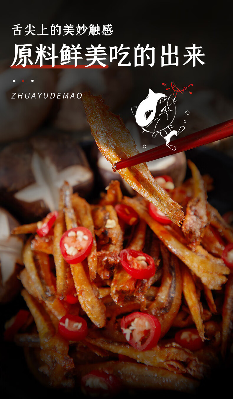 抓鱼的猫7g劲辣小鱼仔香辣深海鱼干豆干混合即食麻辣特产小吃怀旧小零食 40包 混合口味