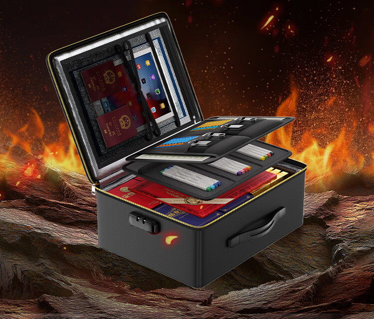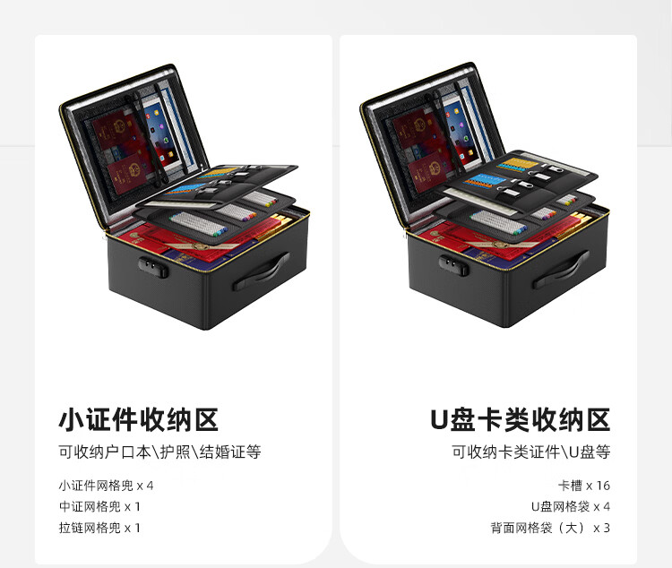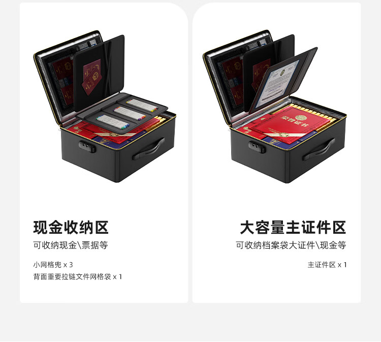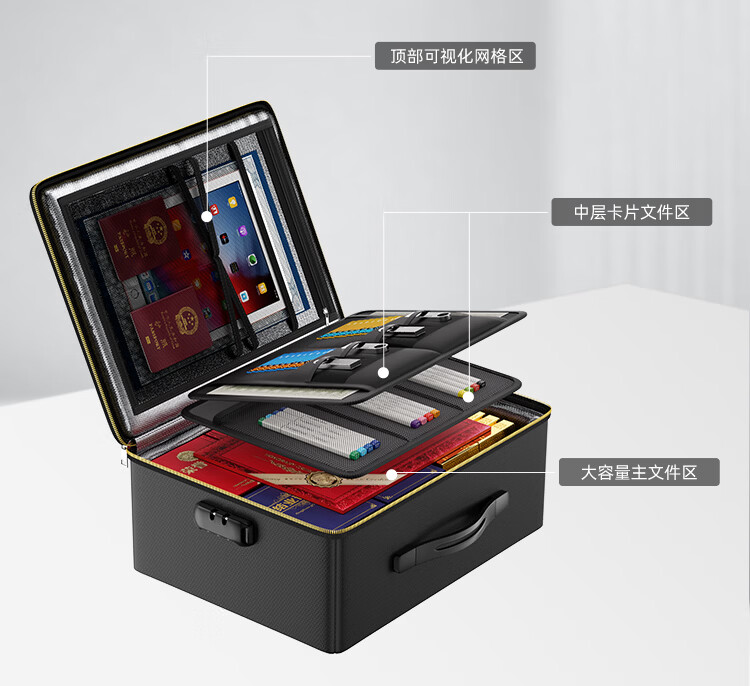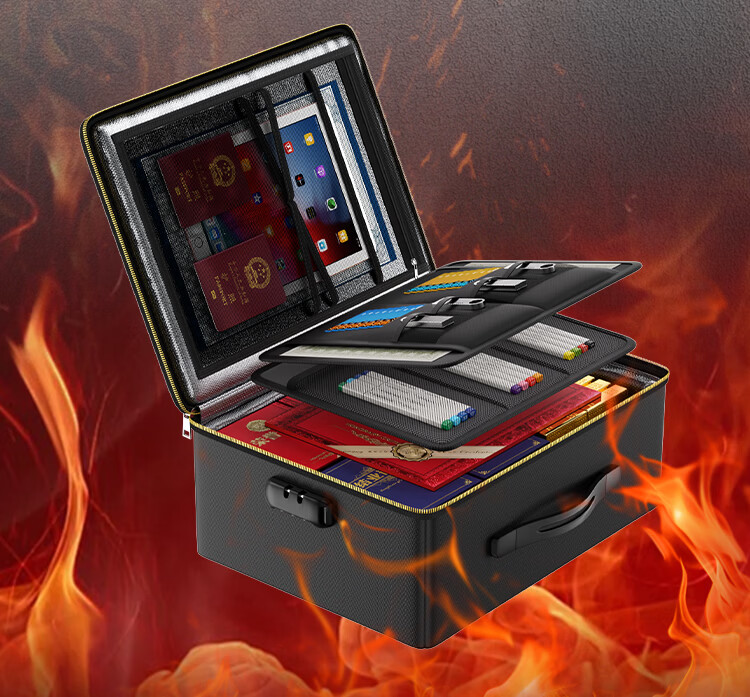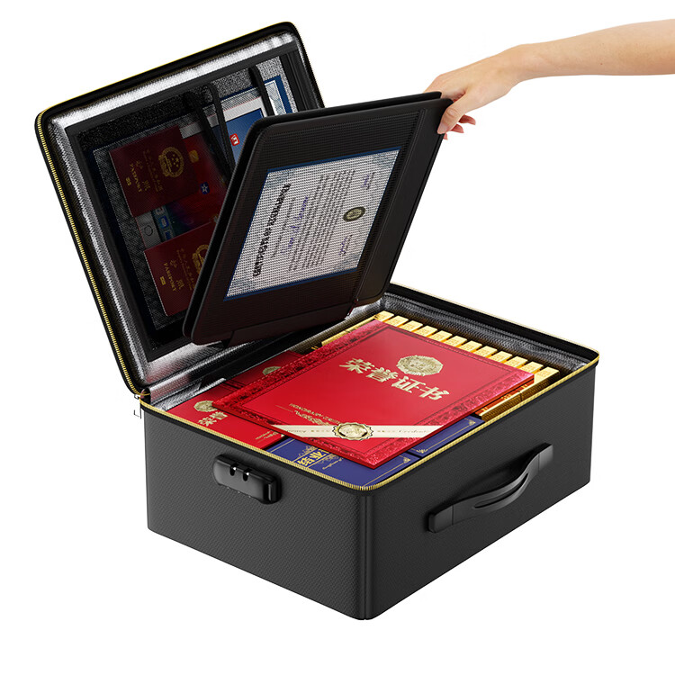 ENGPOW防火防水A4证件收纳包袋带锁大容量证件证书护照毕业证房产证 【折叠升级款】黑色证件包36*27*15cm