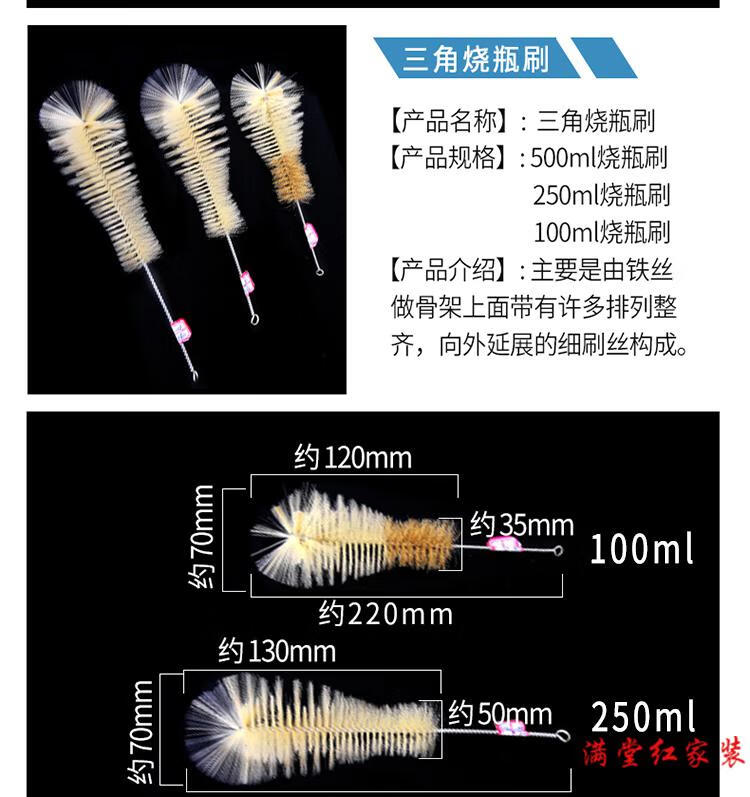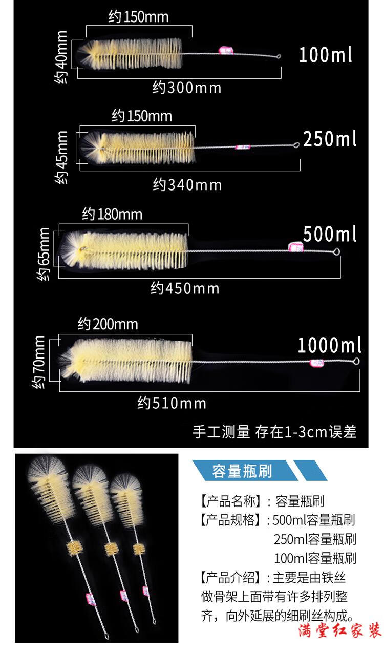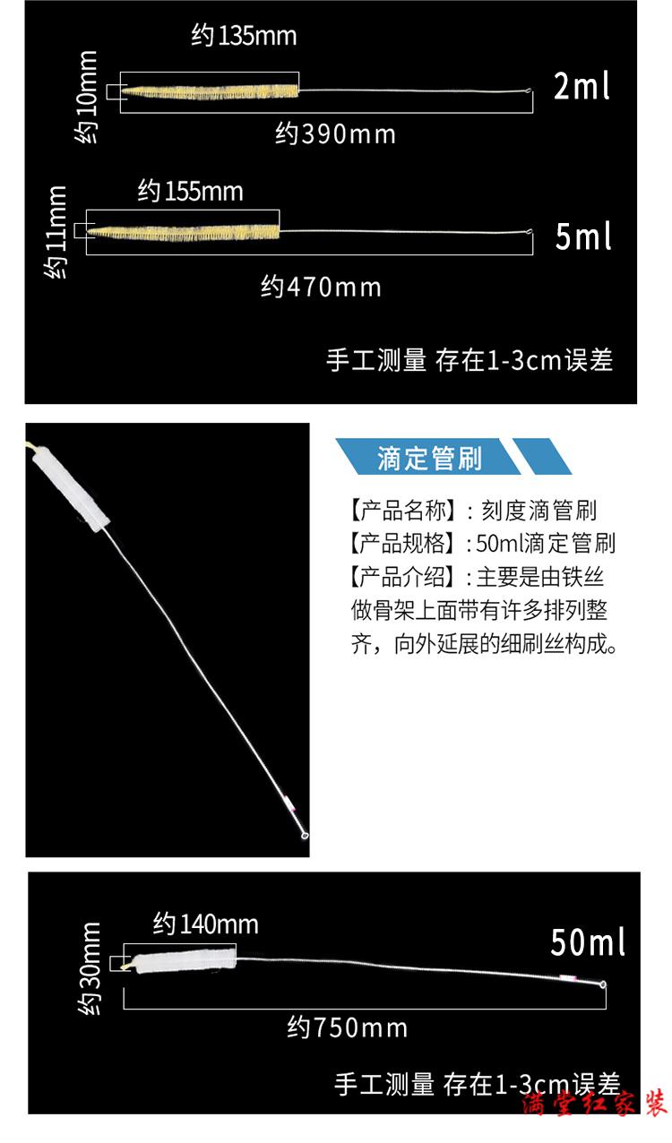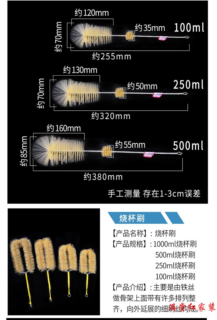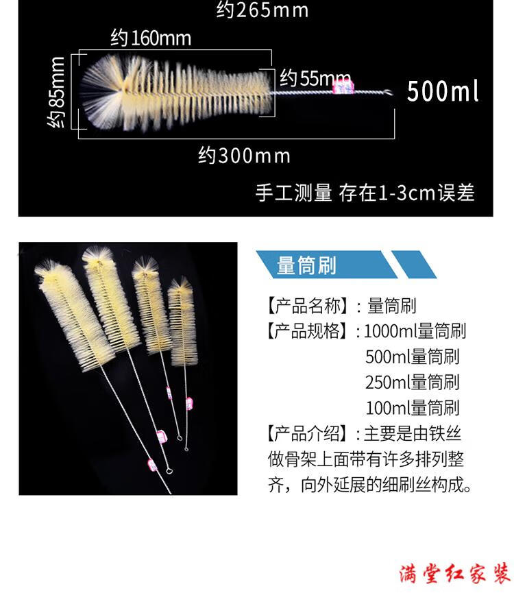 试管刷 烧杯量筒刷管道清洁吸管刷化学实验室试剂瓶清洁毛刷 500ml量筒刷 5支装