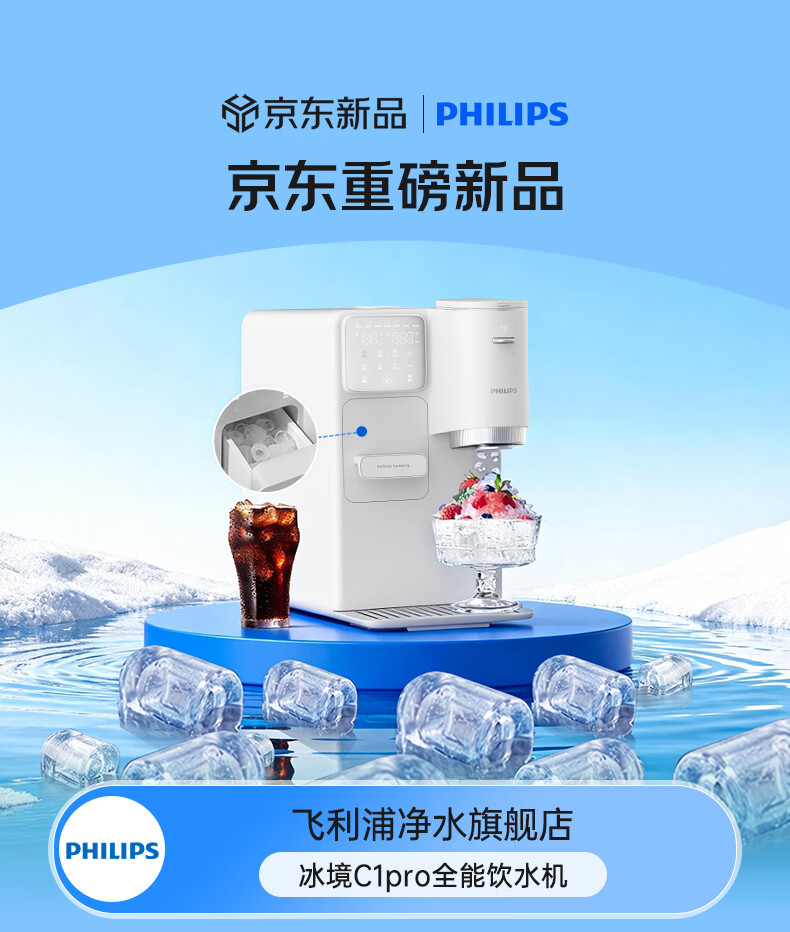 飞利浦制冰即热饮水机 直出冰沙冰块制冰机冰水直饮水机家用即热式饮水机 冰境C1/C1PRO ADD8240/ADD8243 【行业热销】冰境C1 即热制冷型