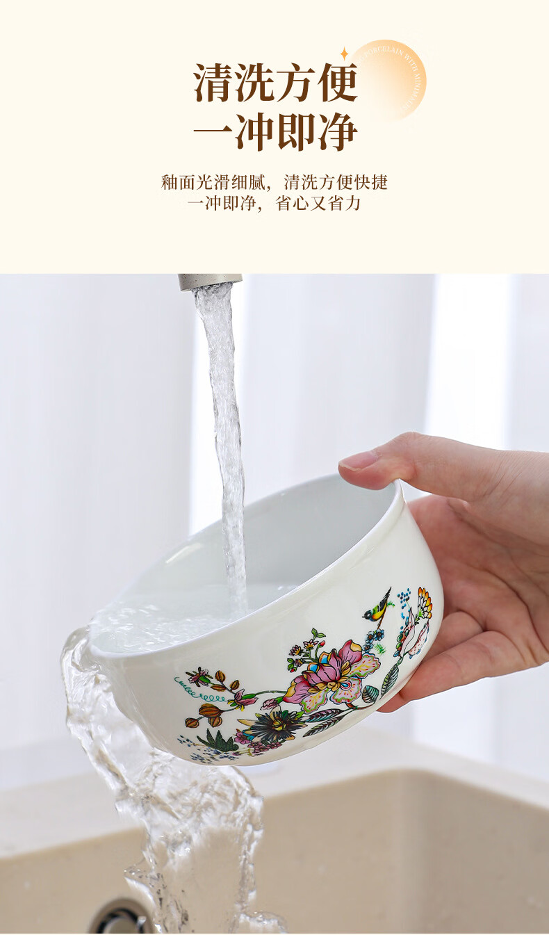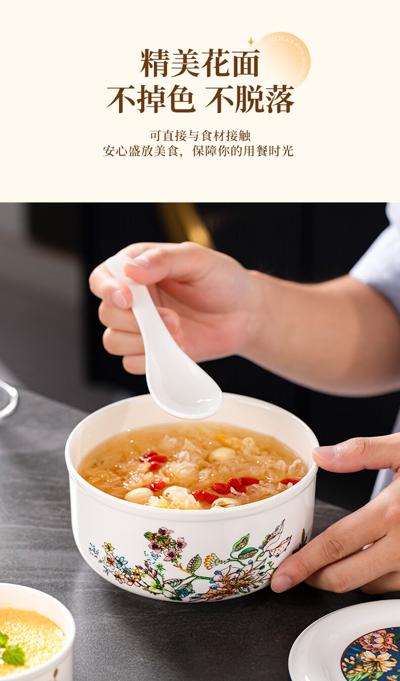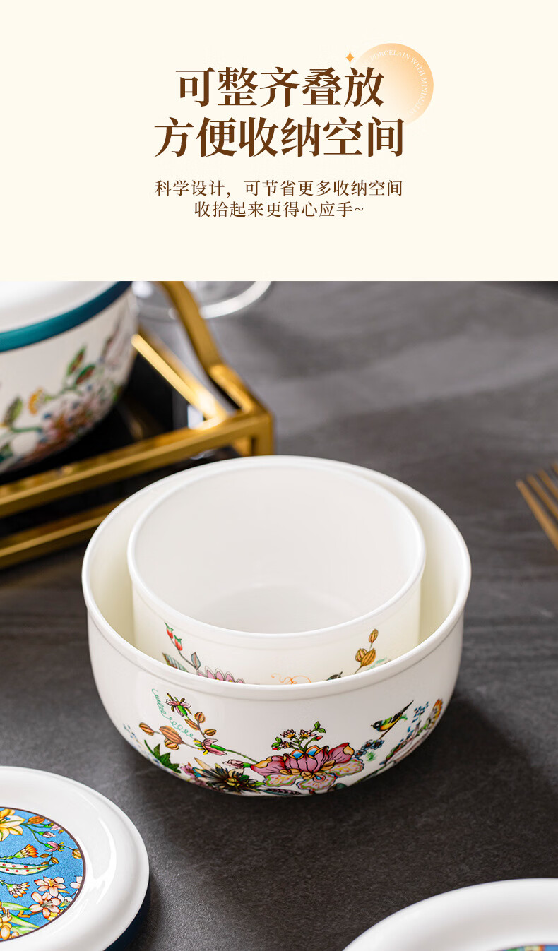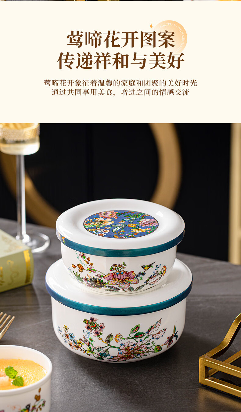山头林村蒸鸡蛋羹专用碗带盖陶瓷家用 耐高温隔水炖盅可微波炉蒸碗汤碗 莺啼花开蒸蛋碗大号