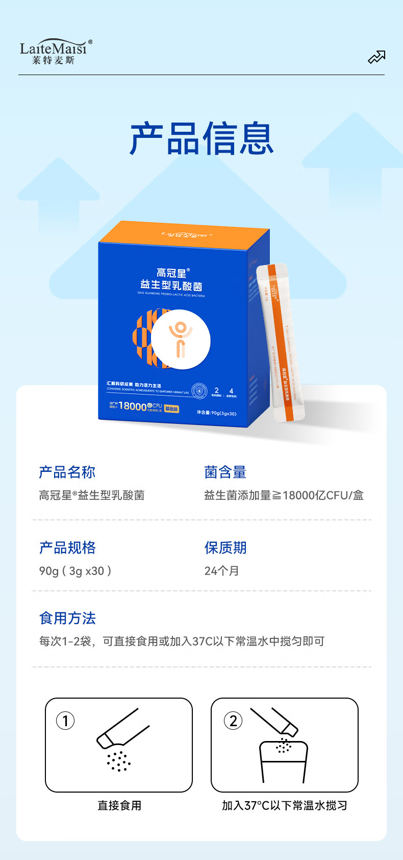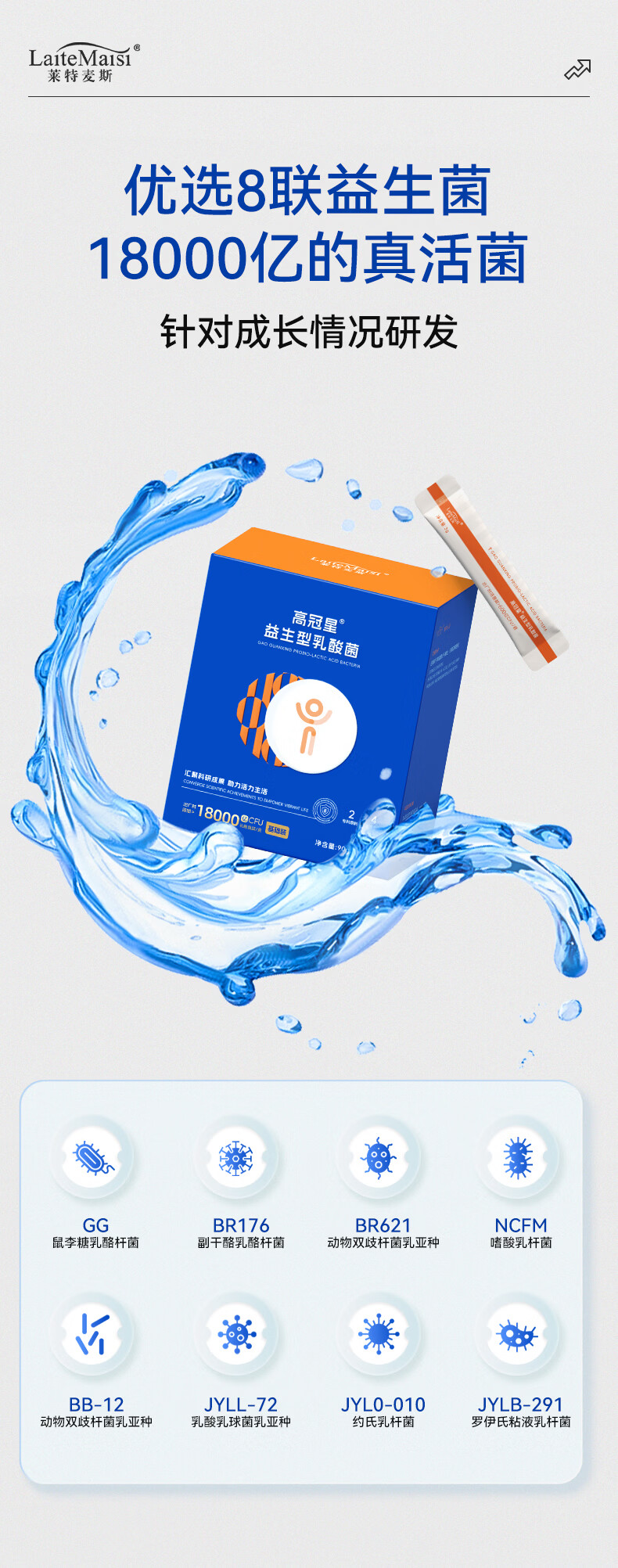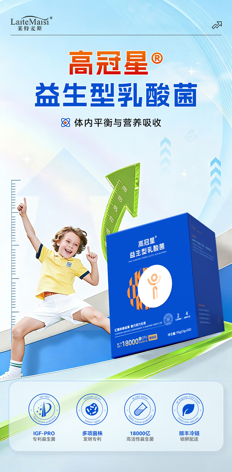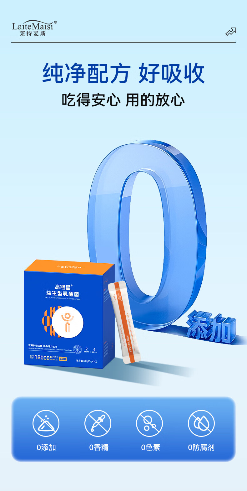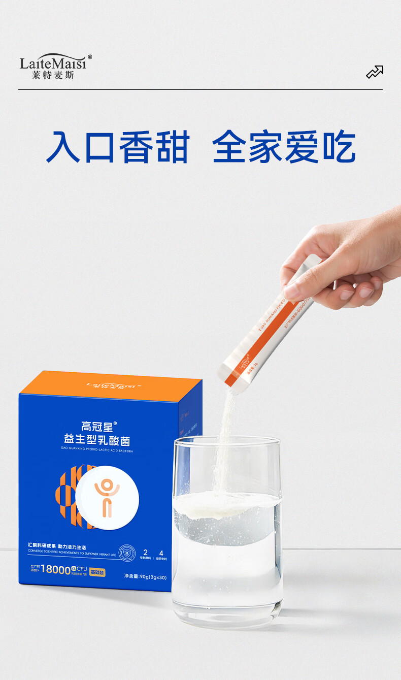 莱特麦斯高冠星复合益生菌儿童青少年生长发育益生元冻干粉乳酸菌18000亿 18000亿高活性 90g*1盒 【买2赠1盒巩固装】