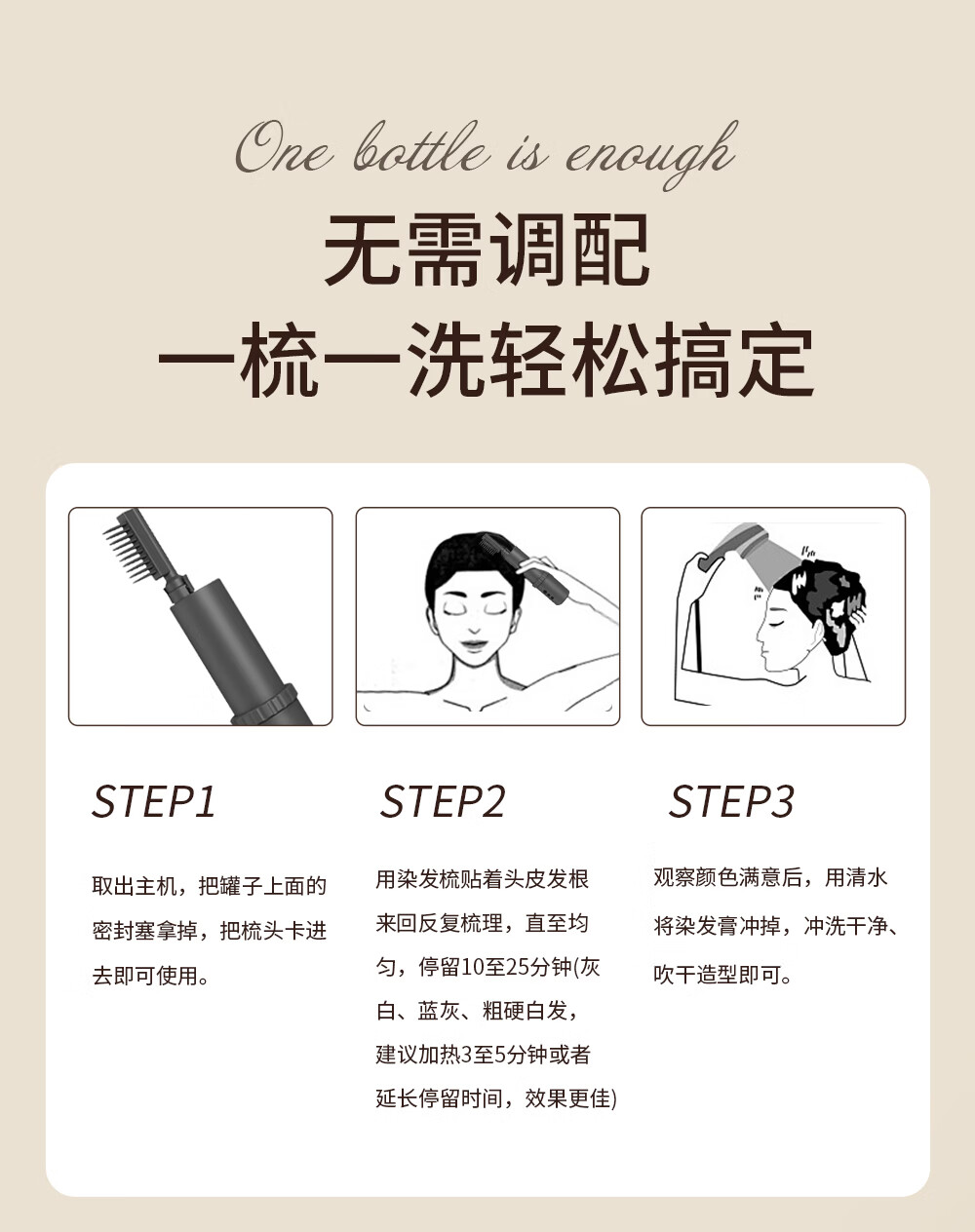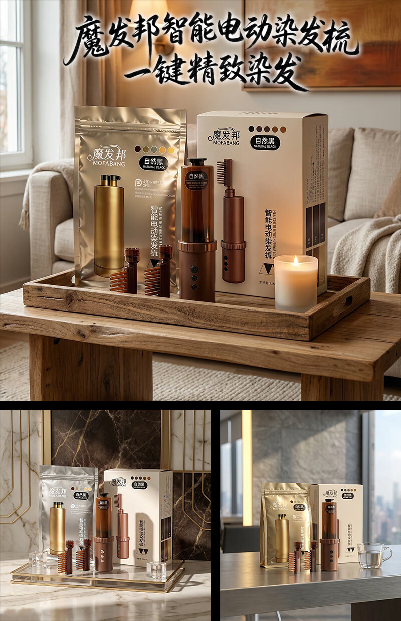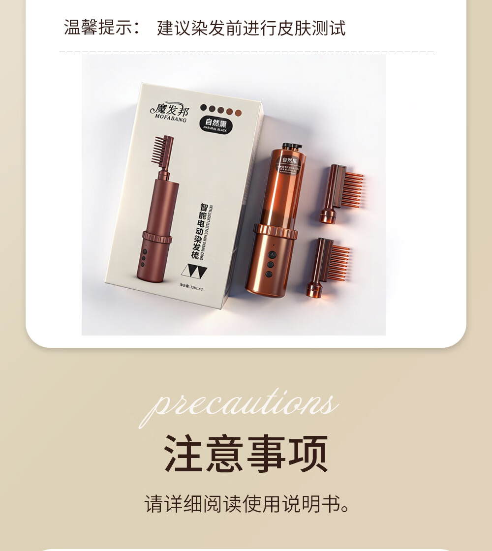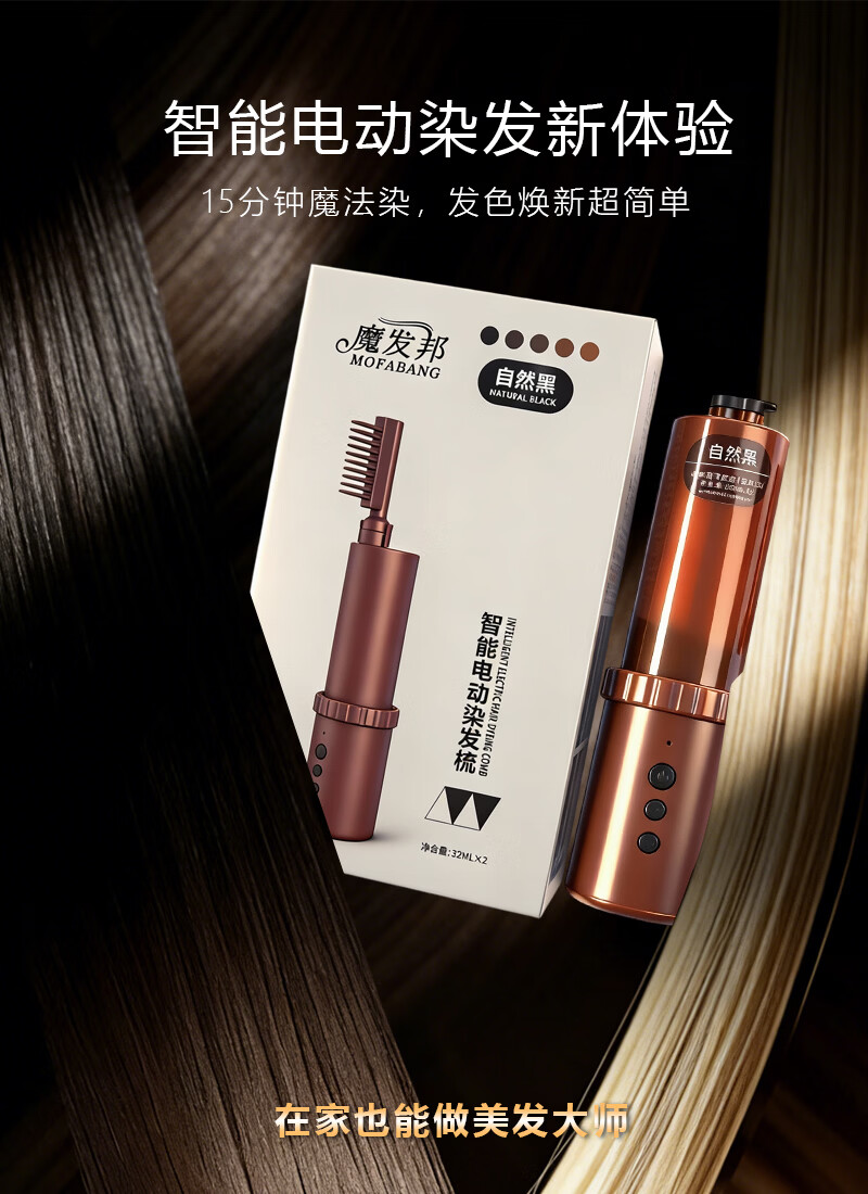 魔发邦智能电动染发梳【染膏芯套装】自助染发膏补染神器易染梳染发剂 【黄色】染膏芯*3