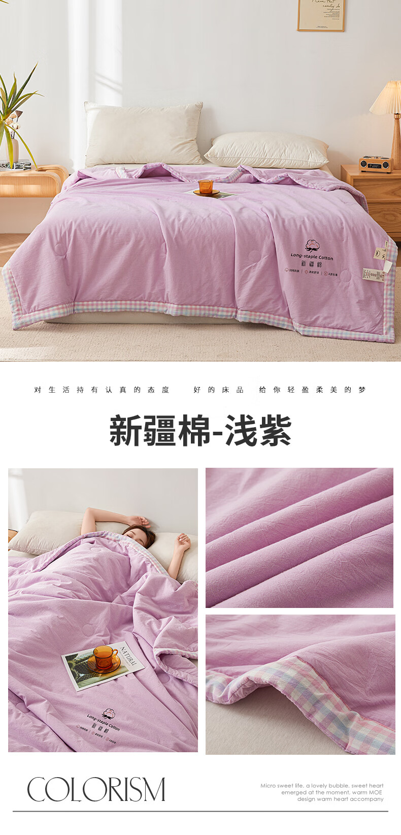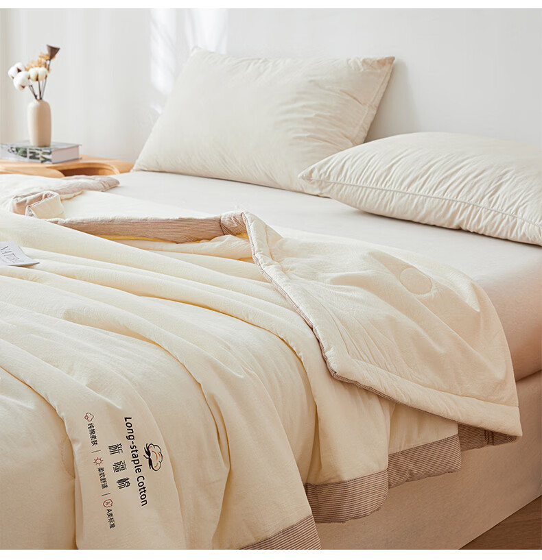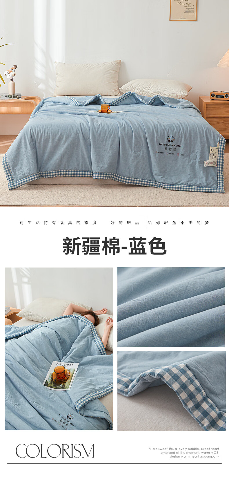 无印良品A类新疆棉花夏凉被1.5米x2米单人空调被夏季可机洗裸睡家用薄棉被 新疆棉-浅灰【A类新疆棉花填充】 150cmx200cm单夏被