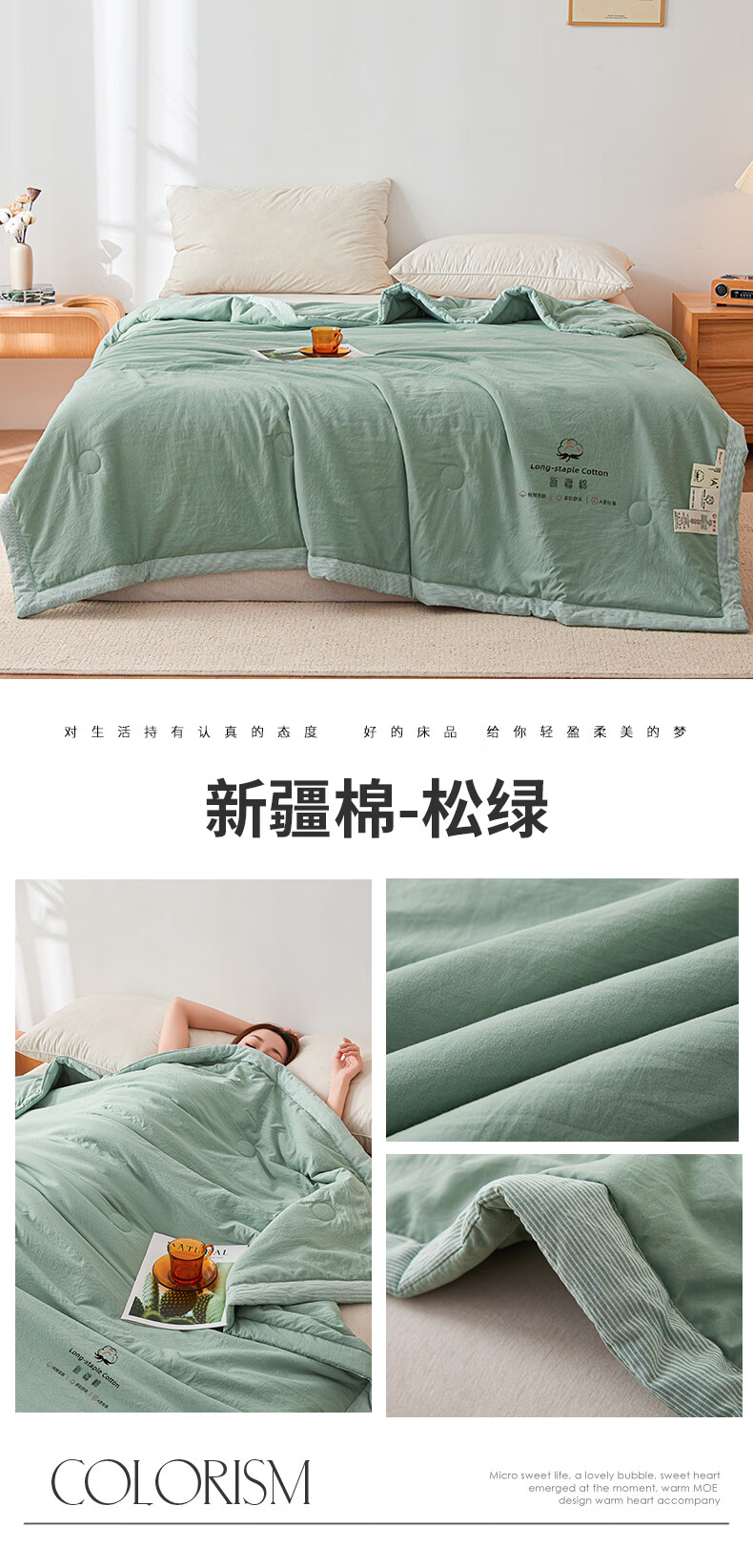 苏萱2026新款热卖水洗冰丝夏被四件套夏季夏凉被空调被可机水洗单双人 亚丁绿+冰川灰 单人夏被-150*200cm