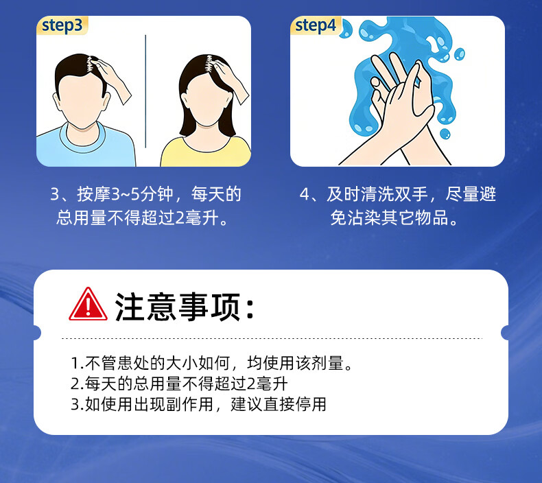 [恒医森]米诺地尔搽剂 60ml*1瓶 2盒装 60ml/瓶 5% 生发液男用宽发缝防脱生发发际线脱发斑秃泡沫米洛地尔搽剂 固发装