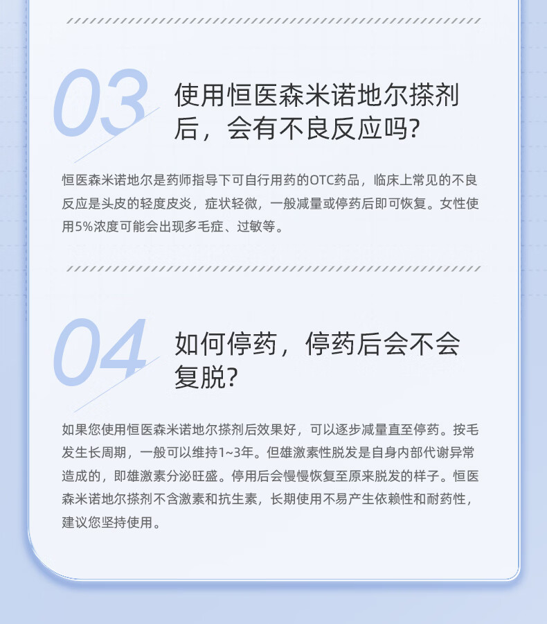 [恒医森]米诺地尔搽剂 60ml*1瓶 2盒装 60ml/瓶 5% 生发液男用宽发缝防脱生发发际线脱发斑秃泡沫米洛地尔正品 固发装