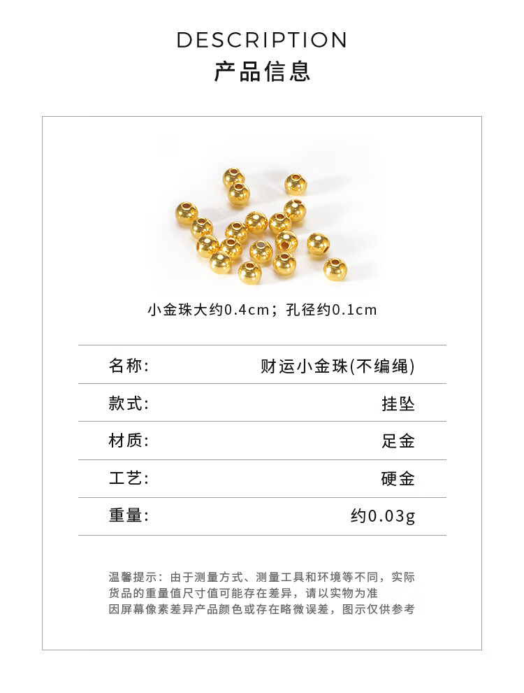 曼卡龙黄金转运珠足金财运小金珠DIY手链 小金珠(不编绳) 金重约0.04g