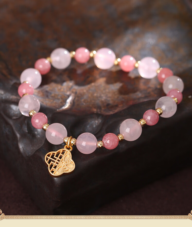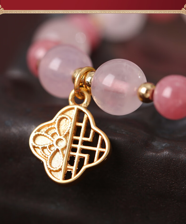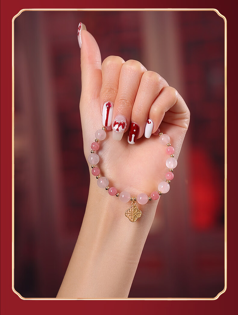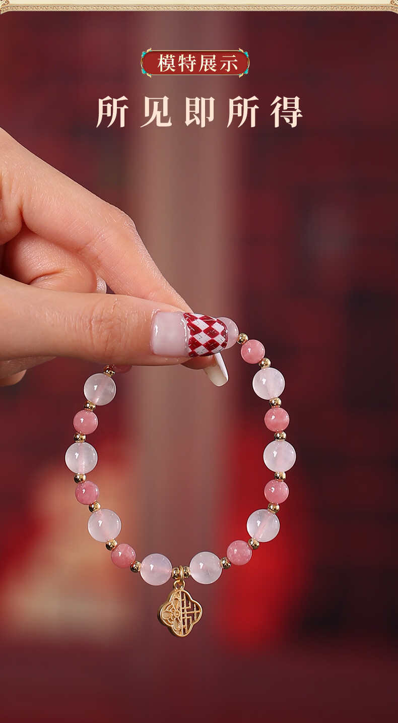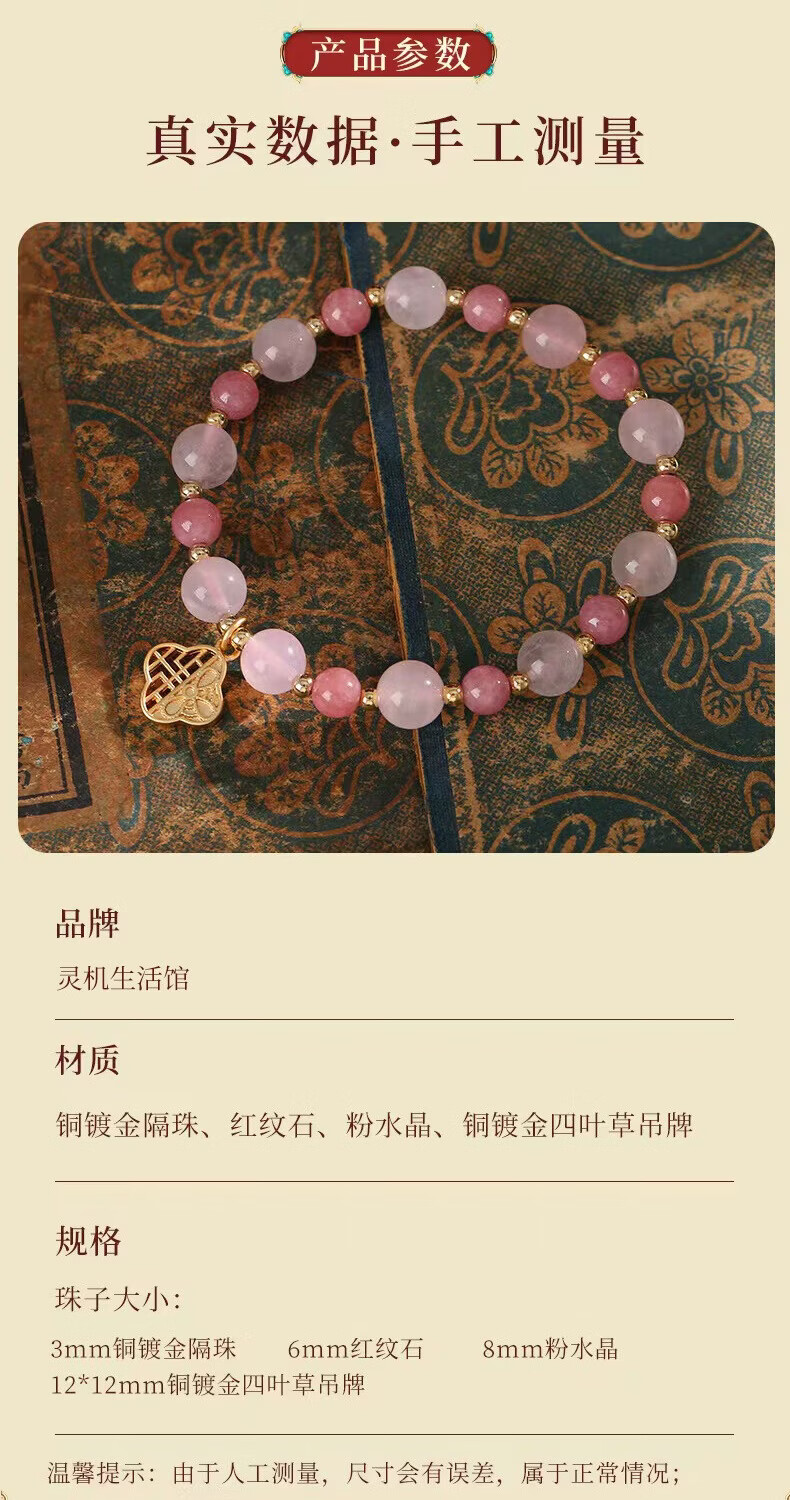 灵机生活馆麦玲玲代言马年2026开运招财四叶草红纹石粉水晶手链生日礼物 【桃花】四叶草红纹石粉水晶手链