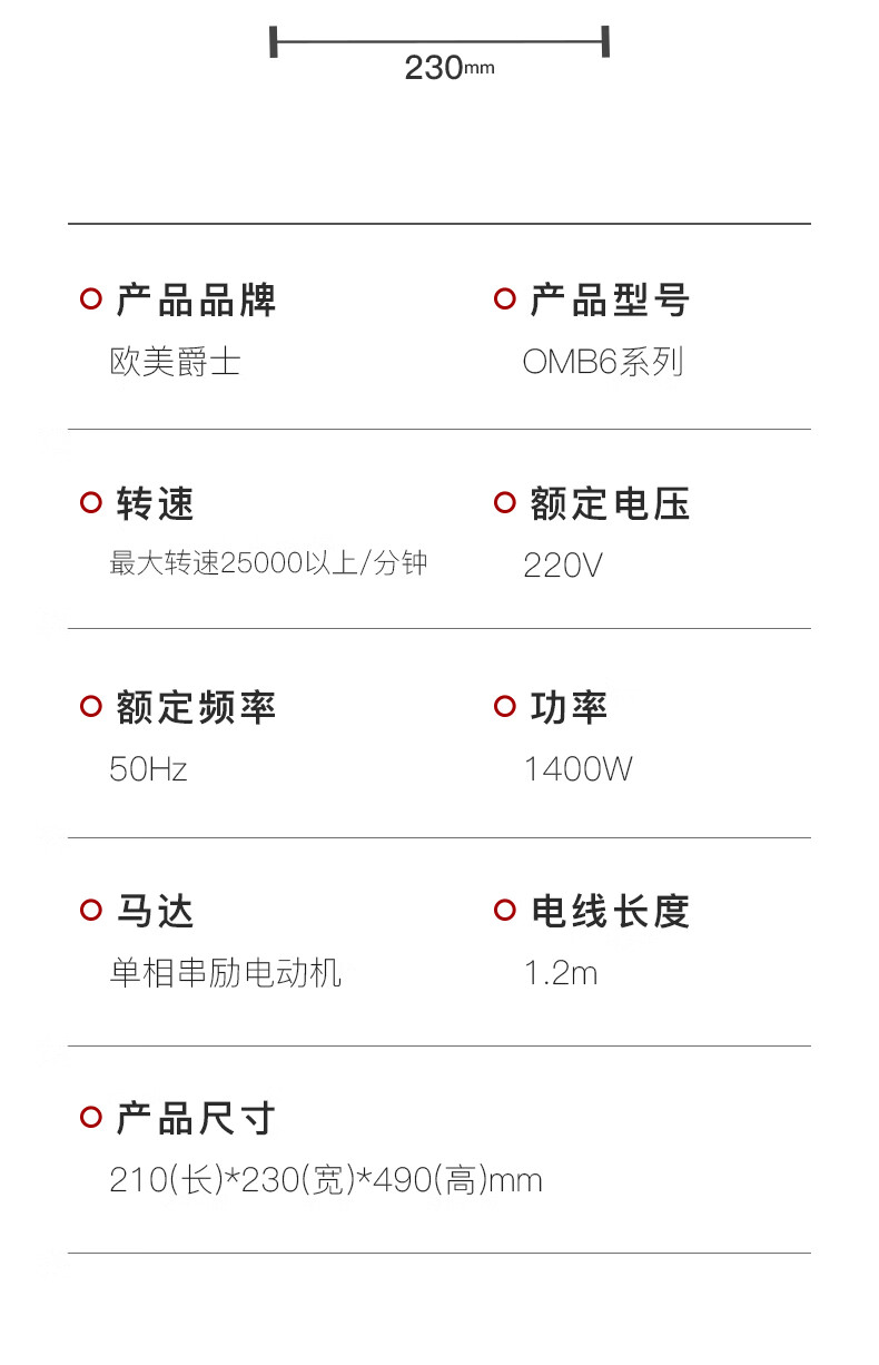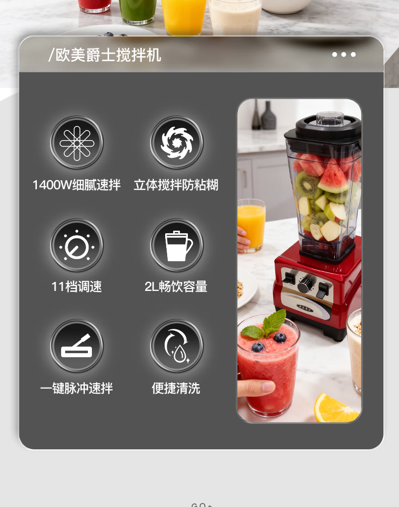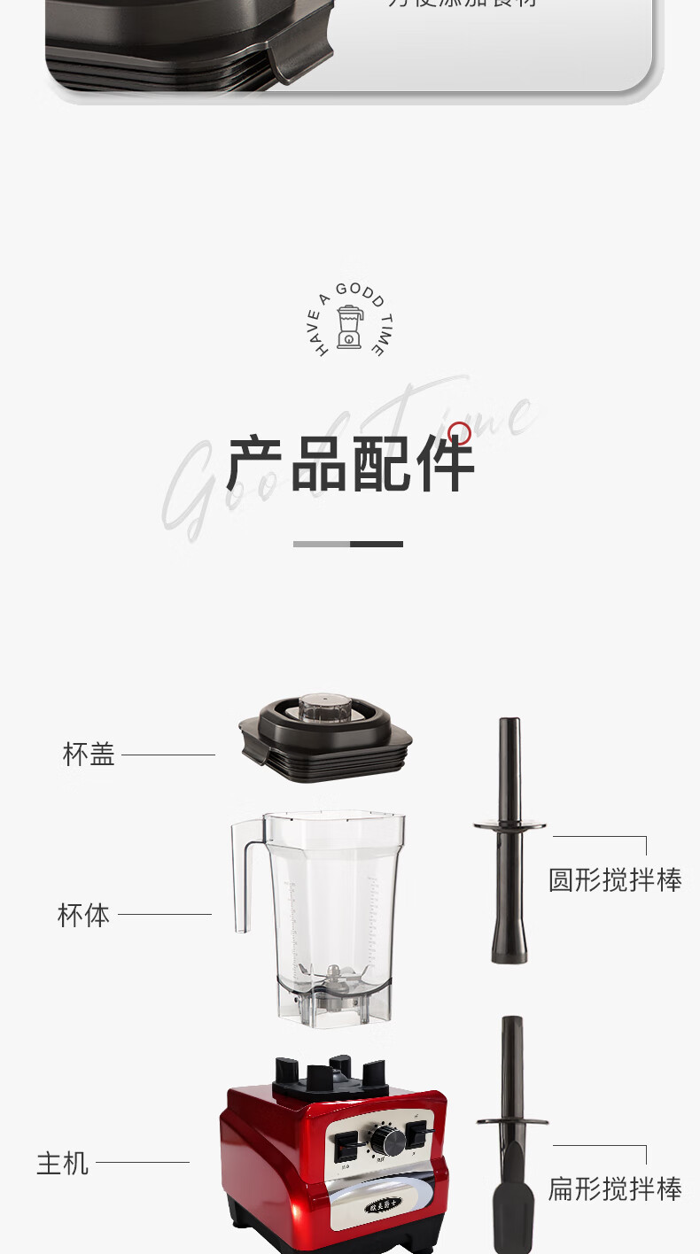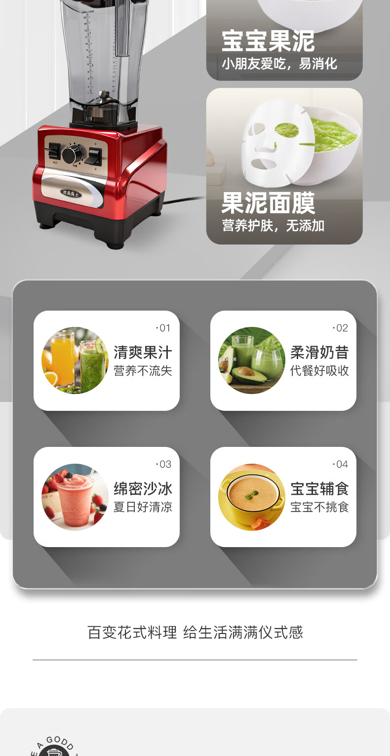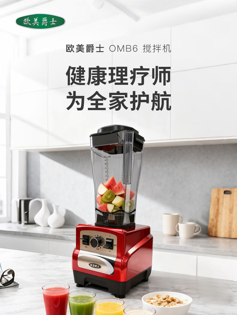 欧美爵士破壁机大容量家用轻音全自动多功能降噪早餐料理机沙冰磨浆搅拌机豆浆榨果汁机婴儿辅食机OMB6R-C
