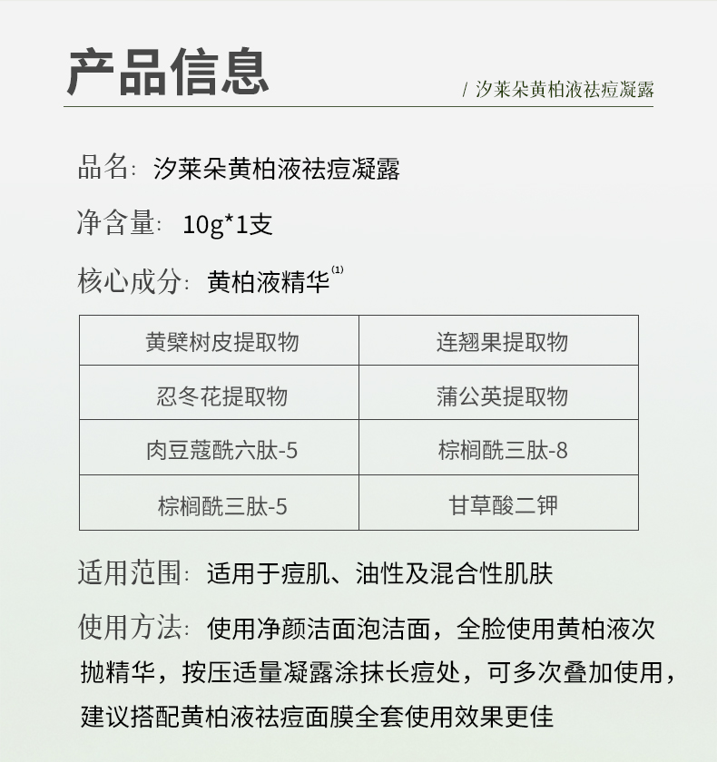 汐莱朵SLAOR/汐莱朵黄柏液祛痘凝露10g|舒缓祛痘|油性混合性|草本精华| 黄柏液祛痘凝露10g