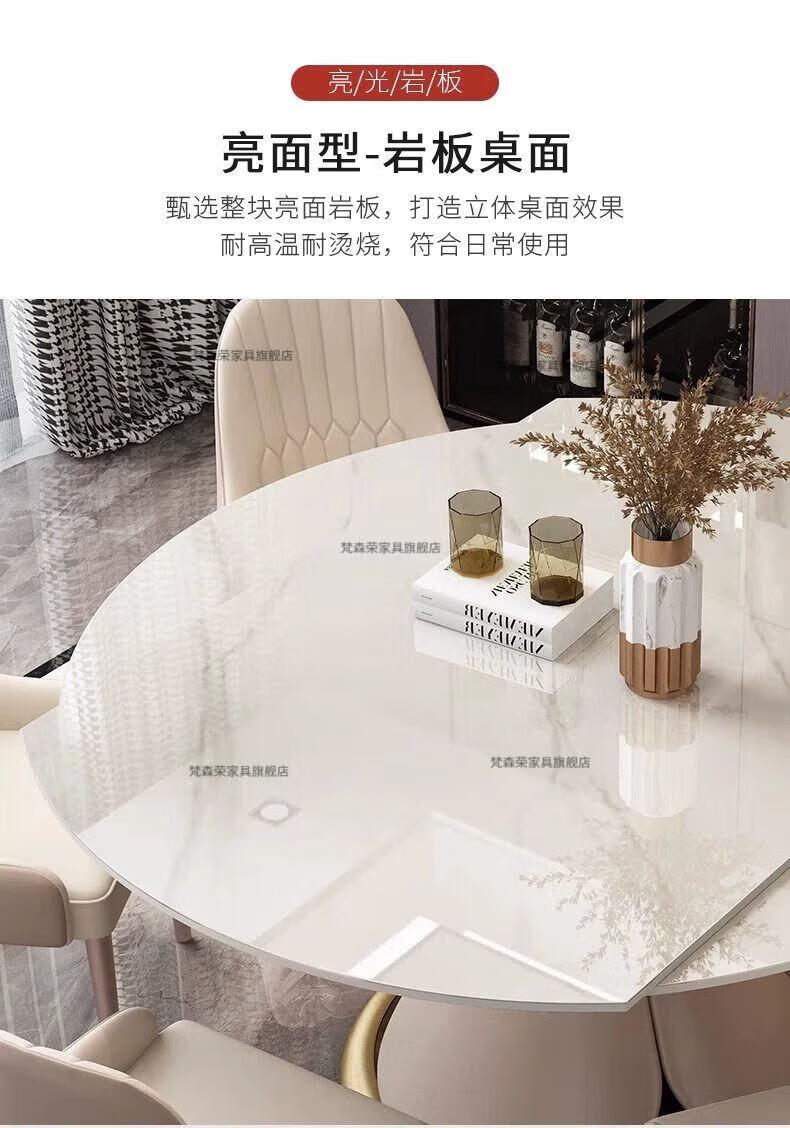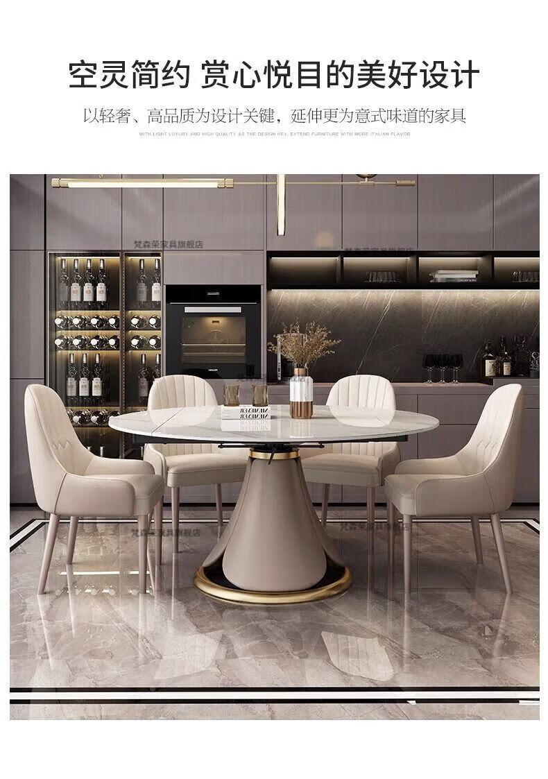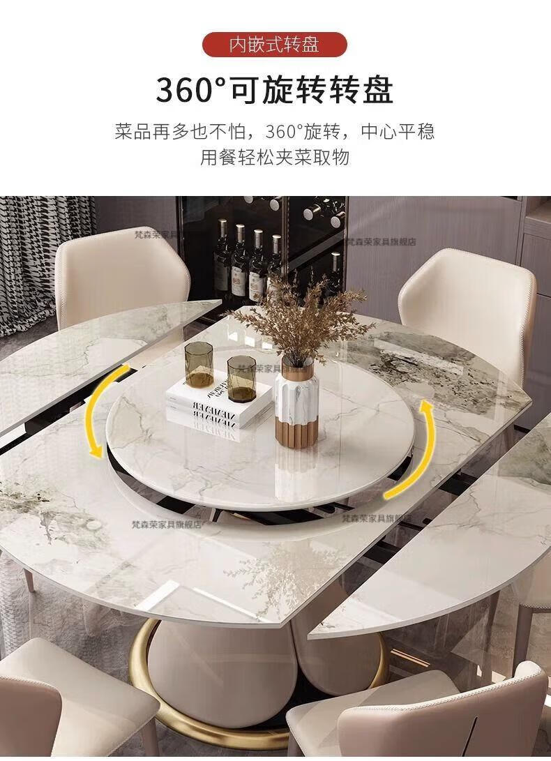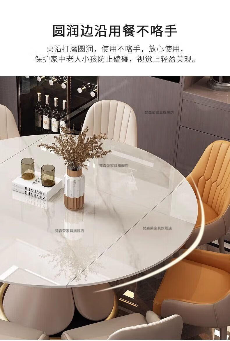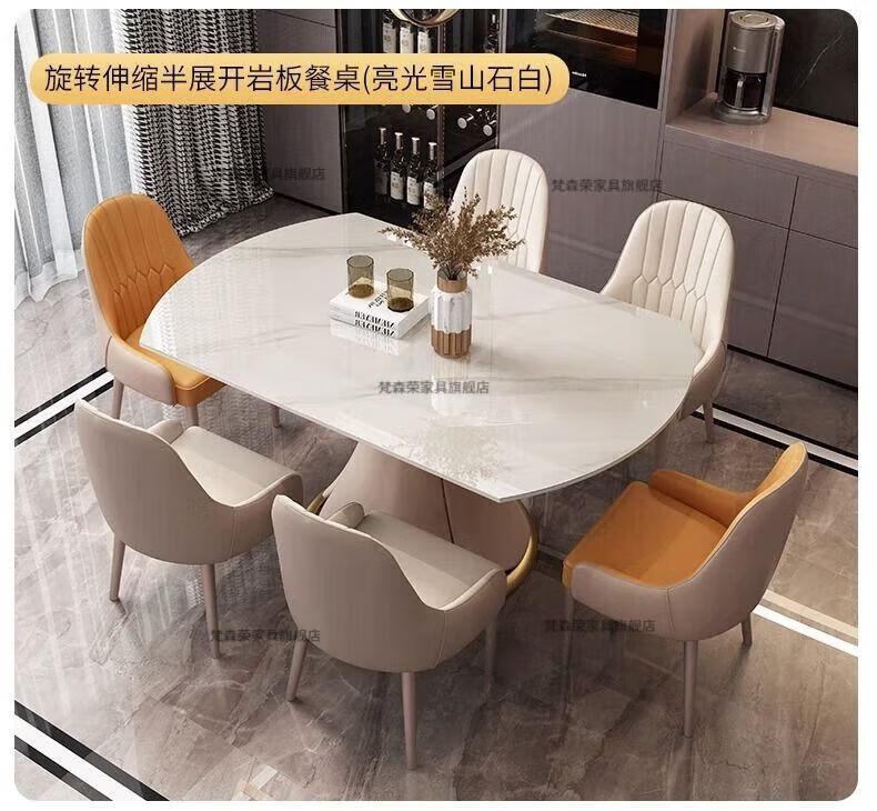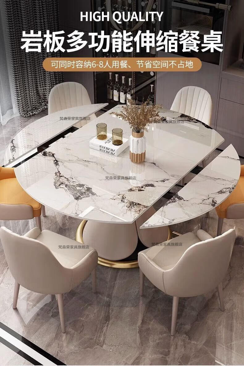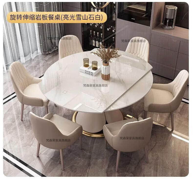 梵森荣2026新款岩板餐桌椅组合意式轻奢可旋转伸缩多功能家用小户型饭桌 1.2米旋转伸缩餐桌 岩板[餐桌+4椅]