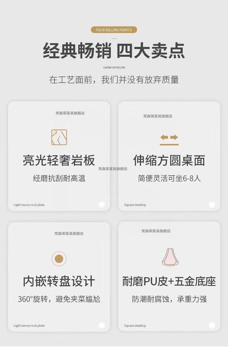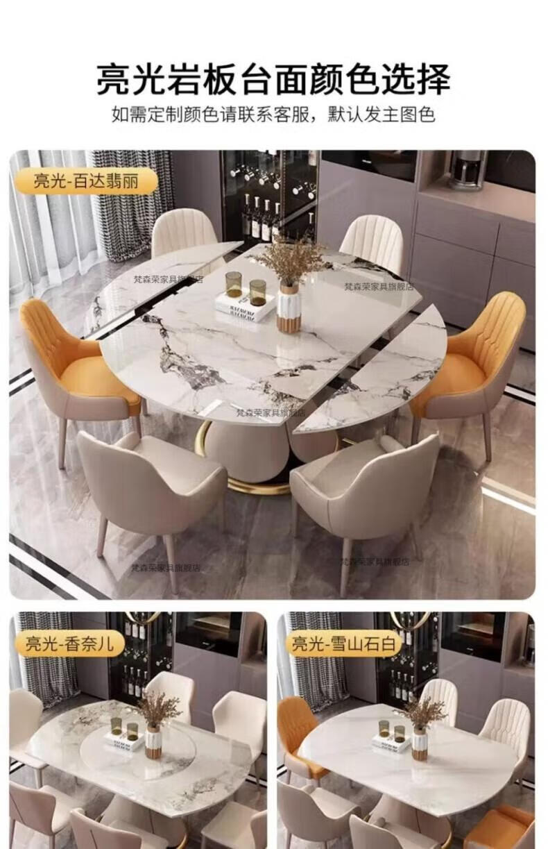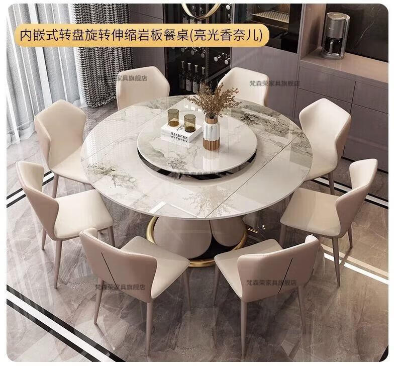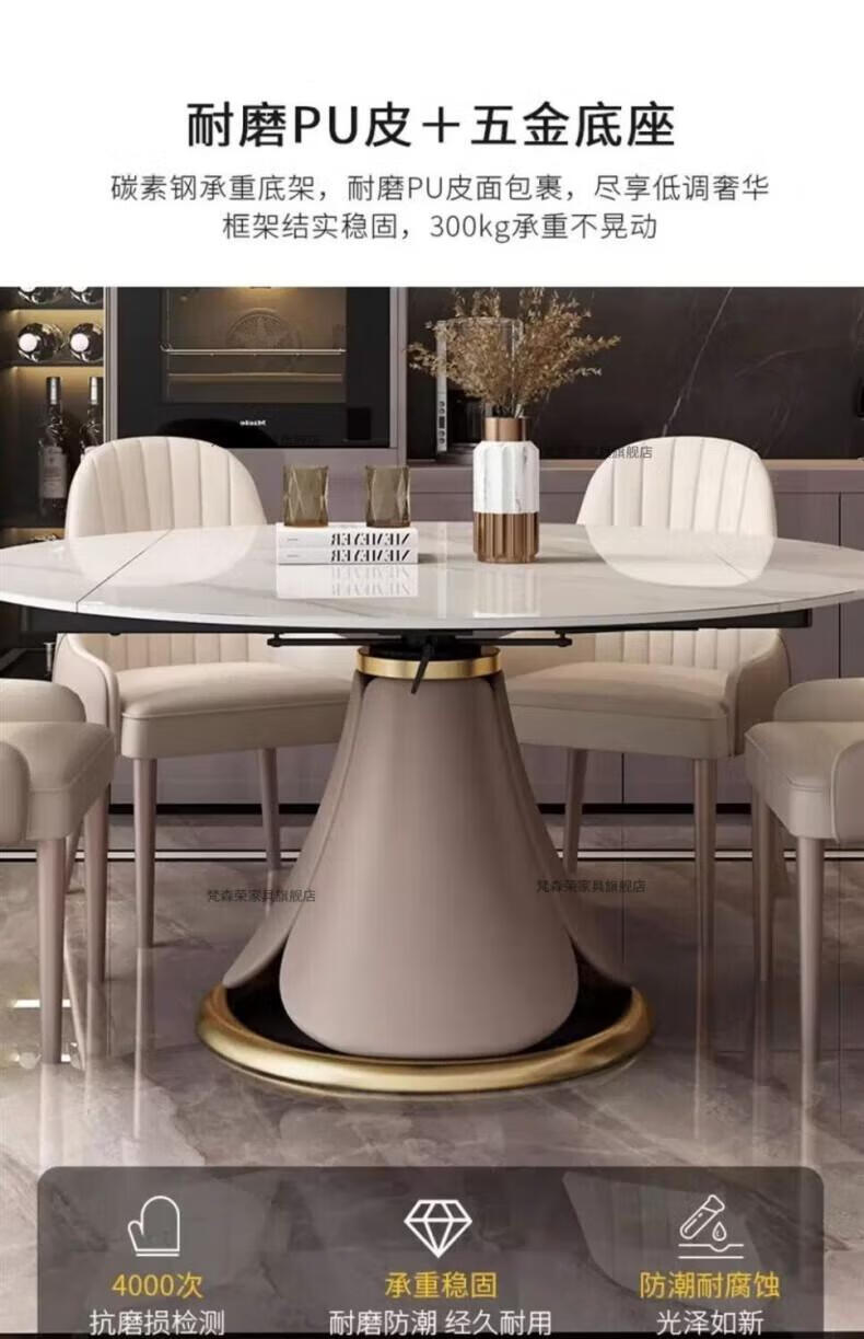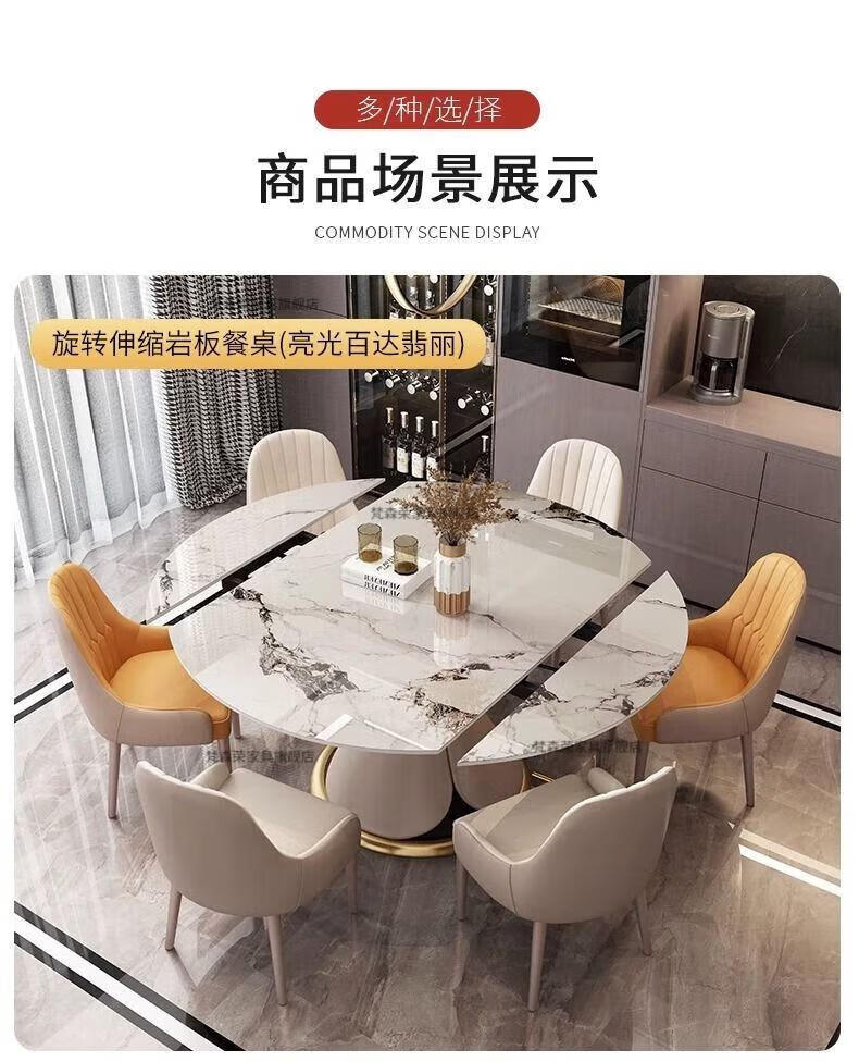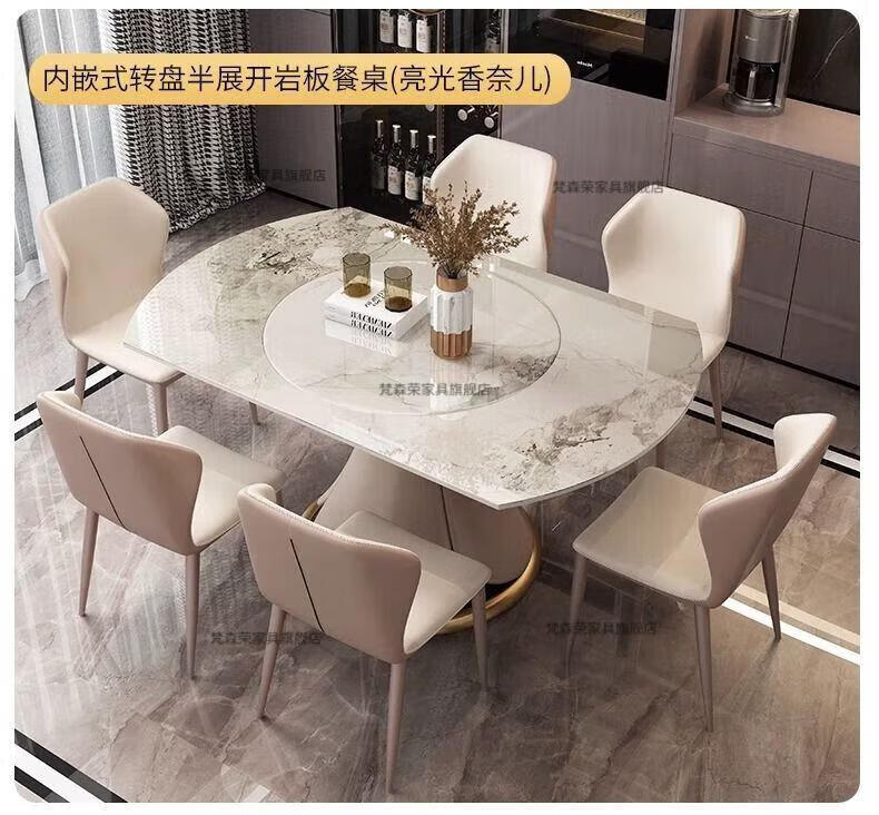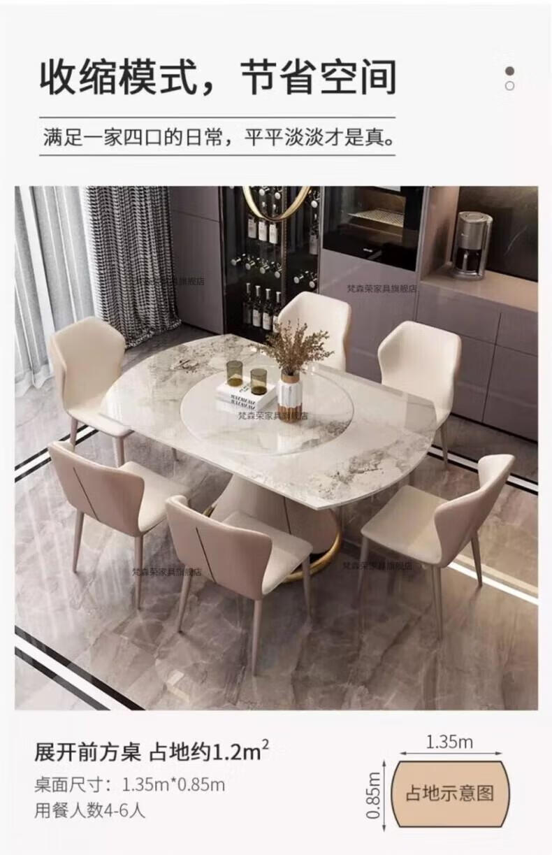 梵森荣2026新款岩板餐桌椅组合意式轻奢可旋转伸缩多功能家用小户型饭桌 1.2米旋转伸缩餐桌 岩板[餐桌+4椅]