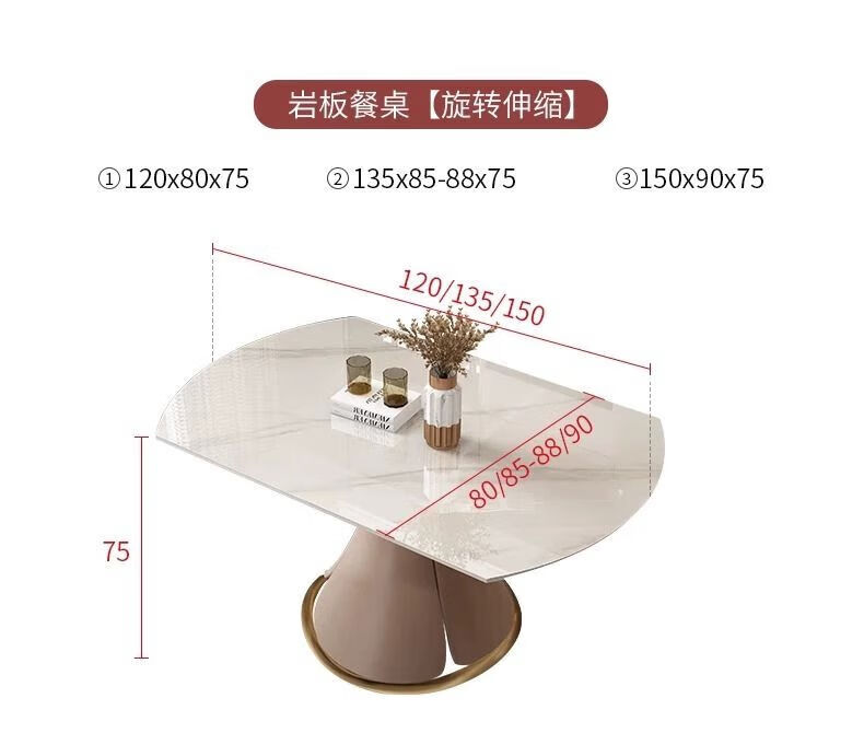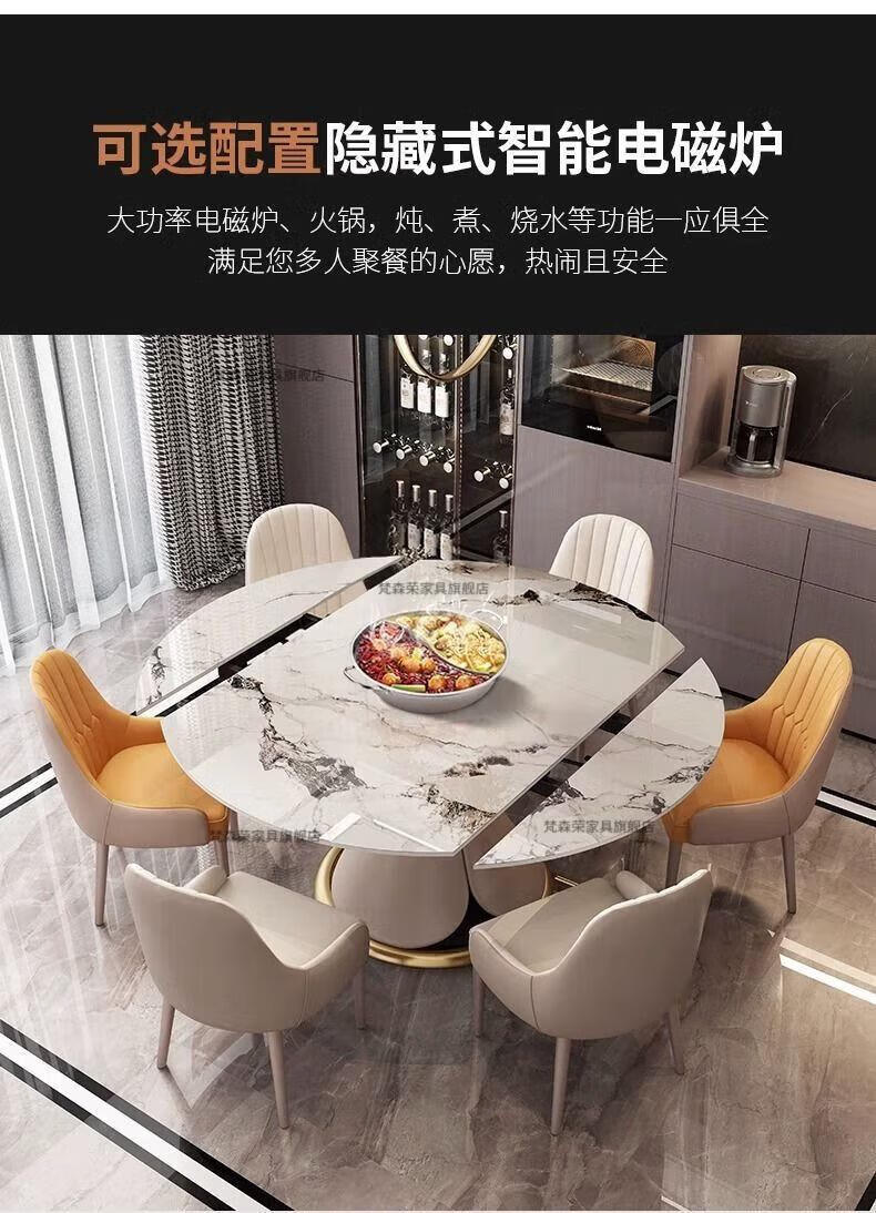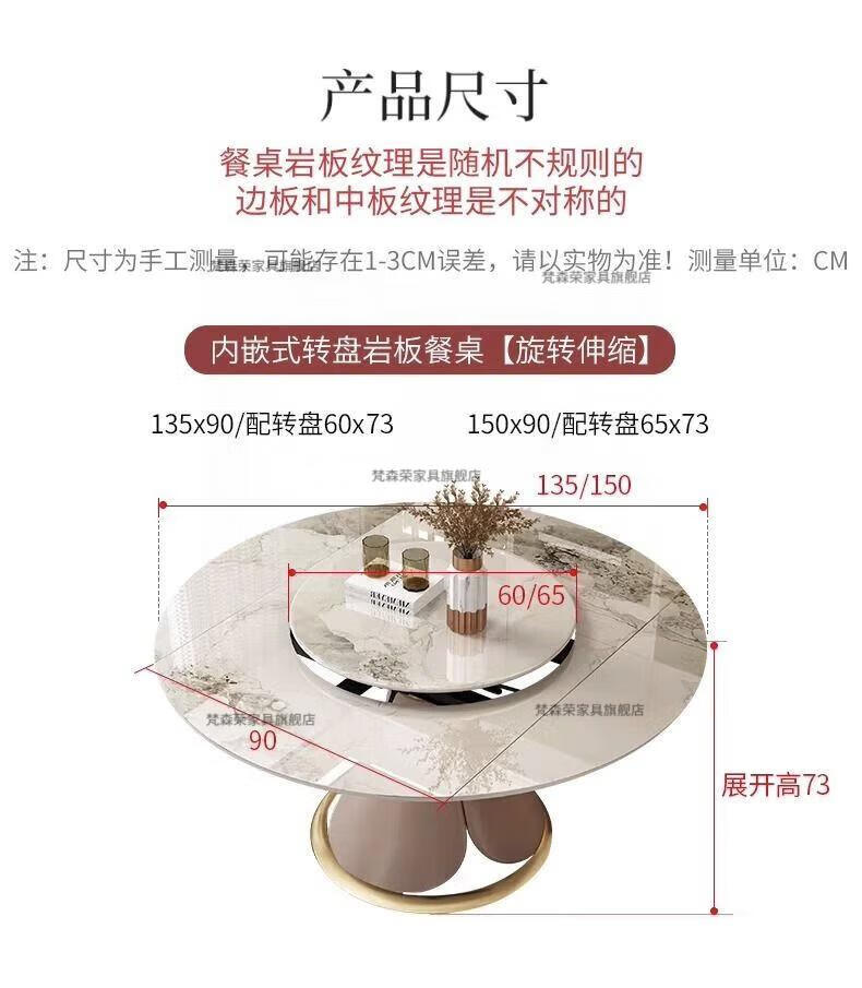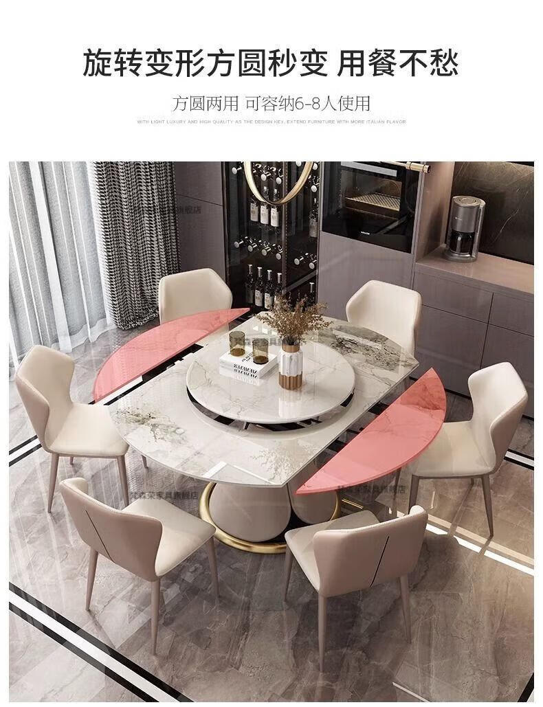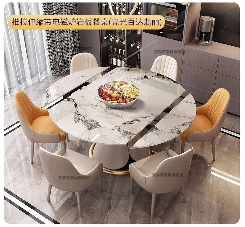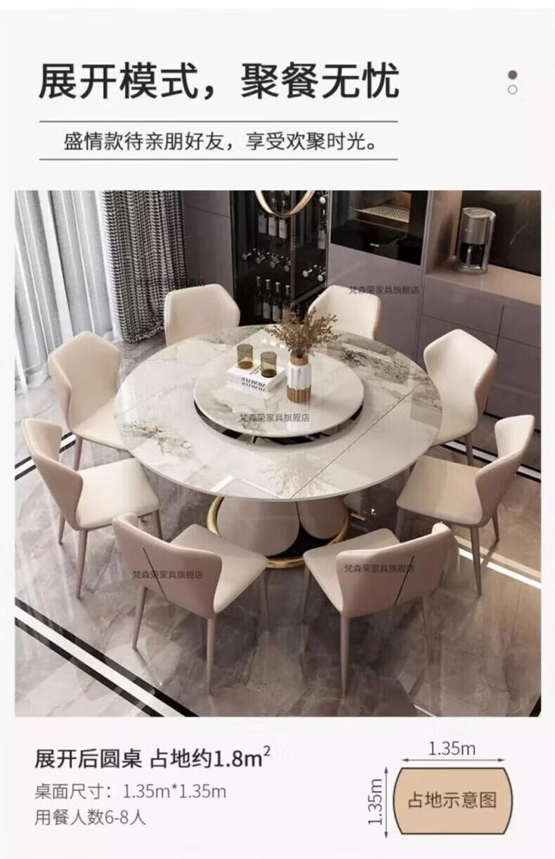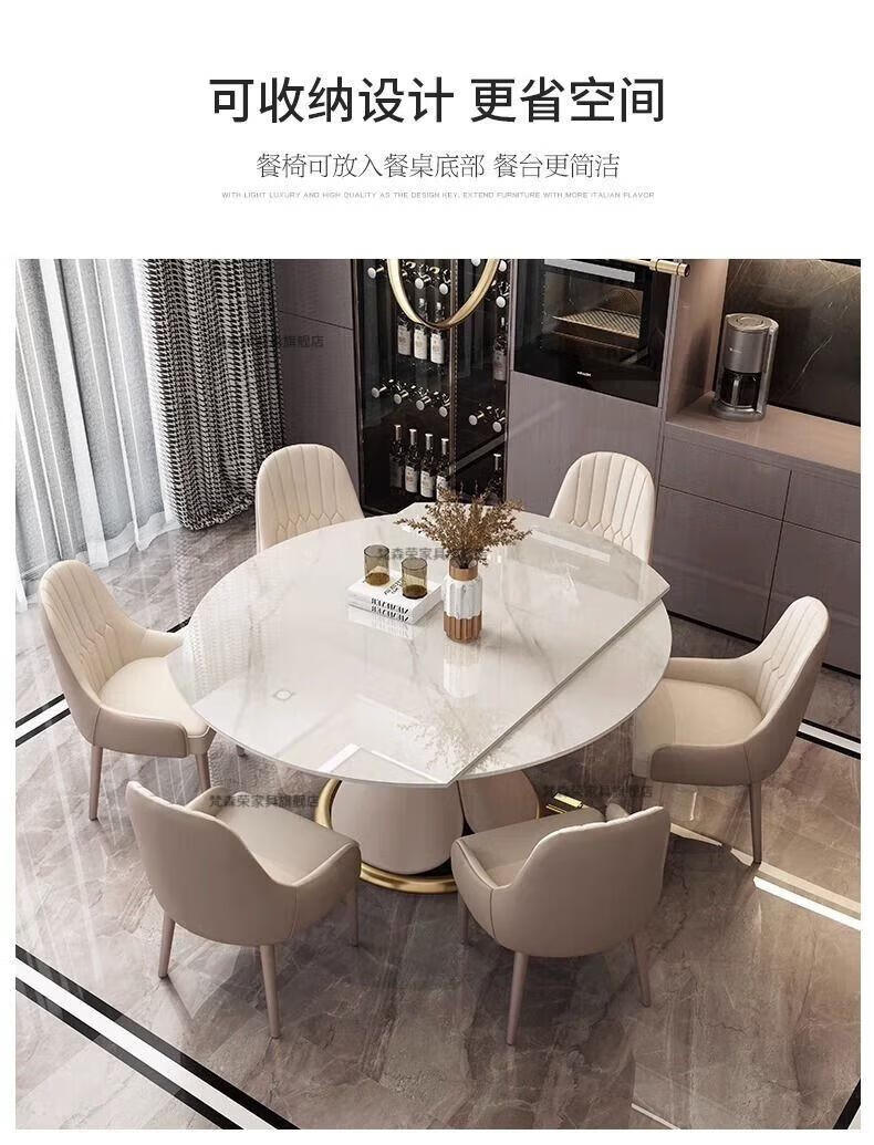 梵森荣2026新款岩板餐桌椅组合意式轻奢可旋转伸缩多功能家用小户型饭桌 1.2米旋转伸缩餐桌 岩板[餐桌+4椅]