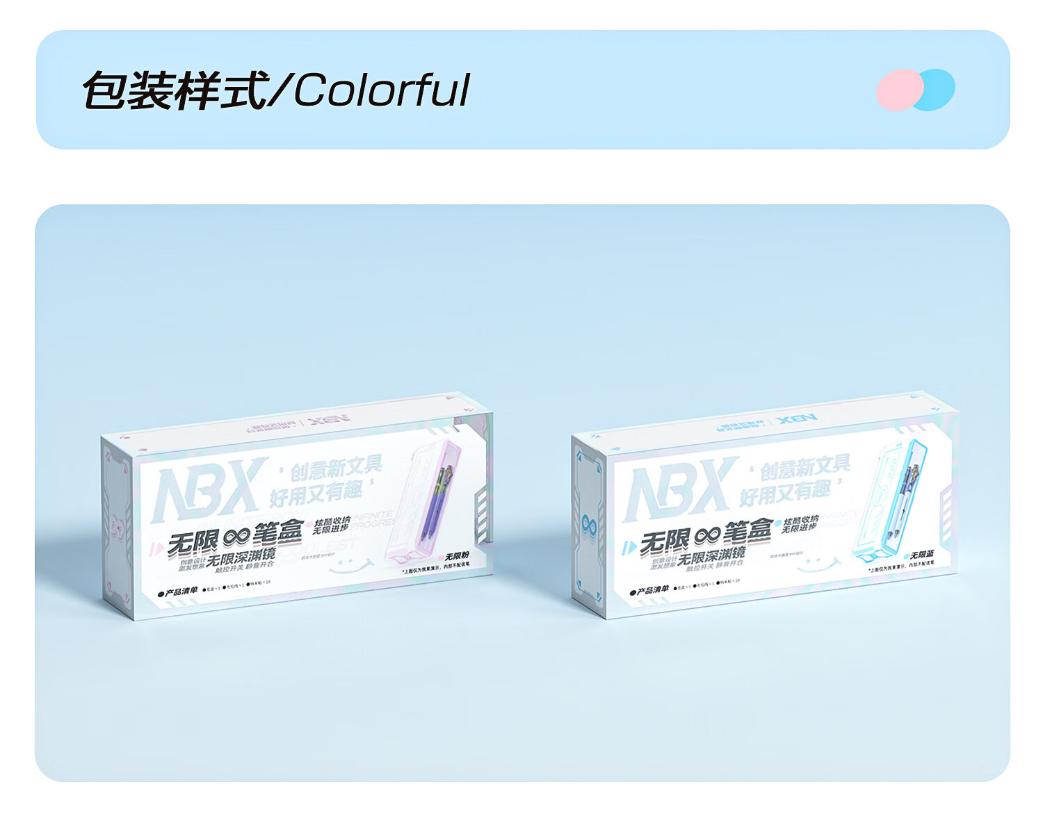 NBX无限笔盒男孩款可dir创意多功能文具收纳盒小学生双层大容量黑科技炫酷铅笔盒女生ins风便携文具盒 无限笔盒-无限粉