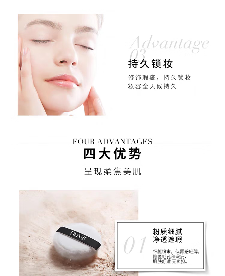 难却dhv轻纱控油定妆蜜粉粉饼散粉难却 防水防汗不脱妆粉细腻敏感肌用 dhv定妆粉1盒送水乳霜1盒