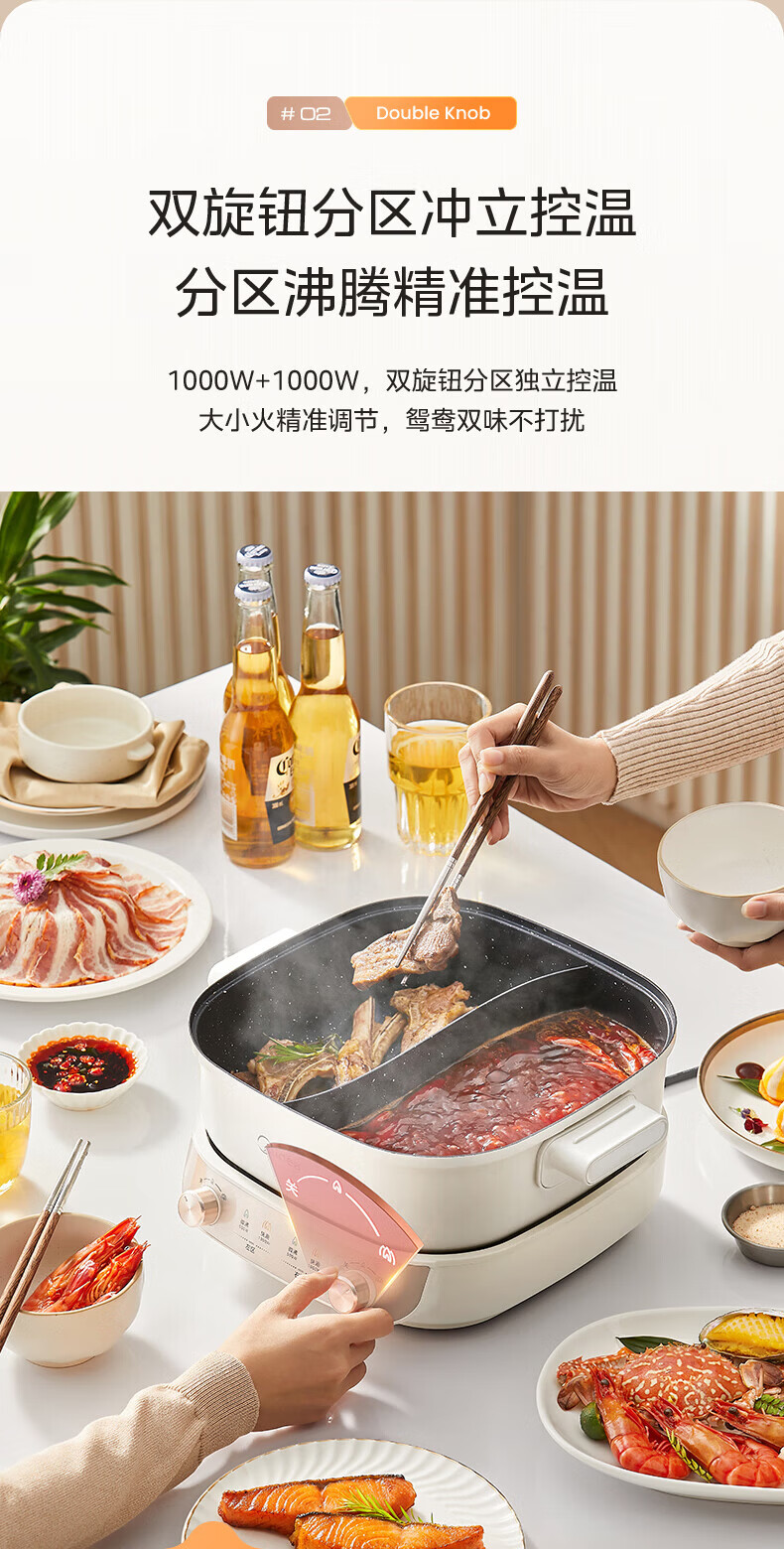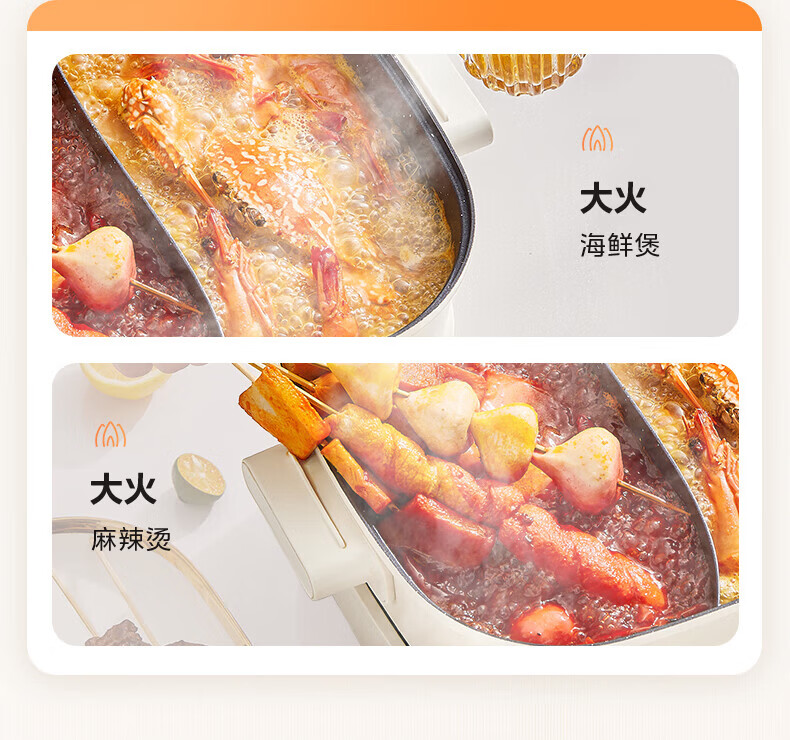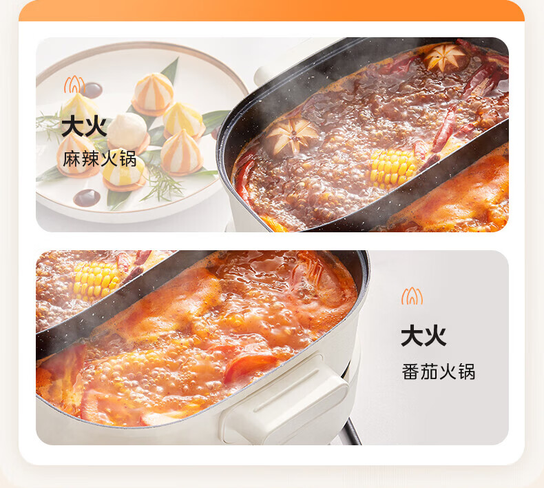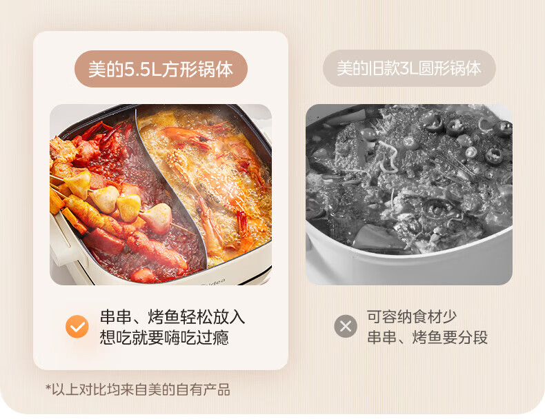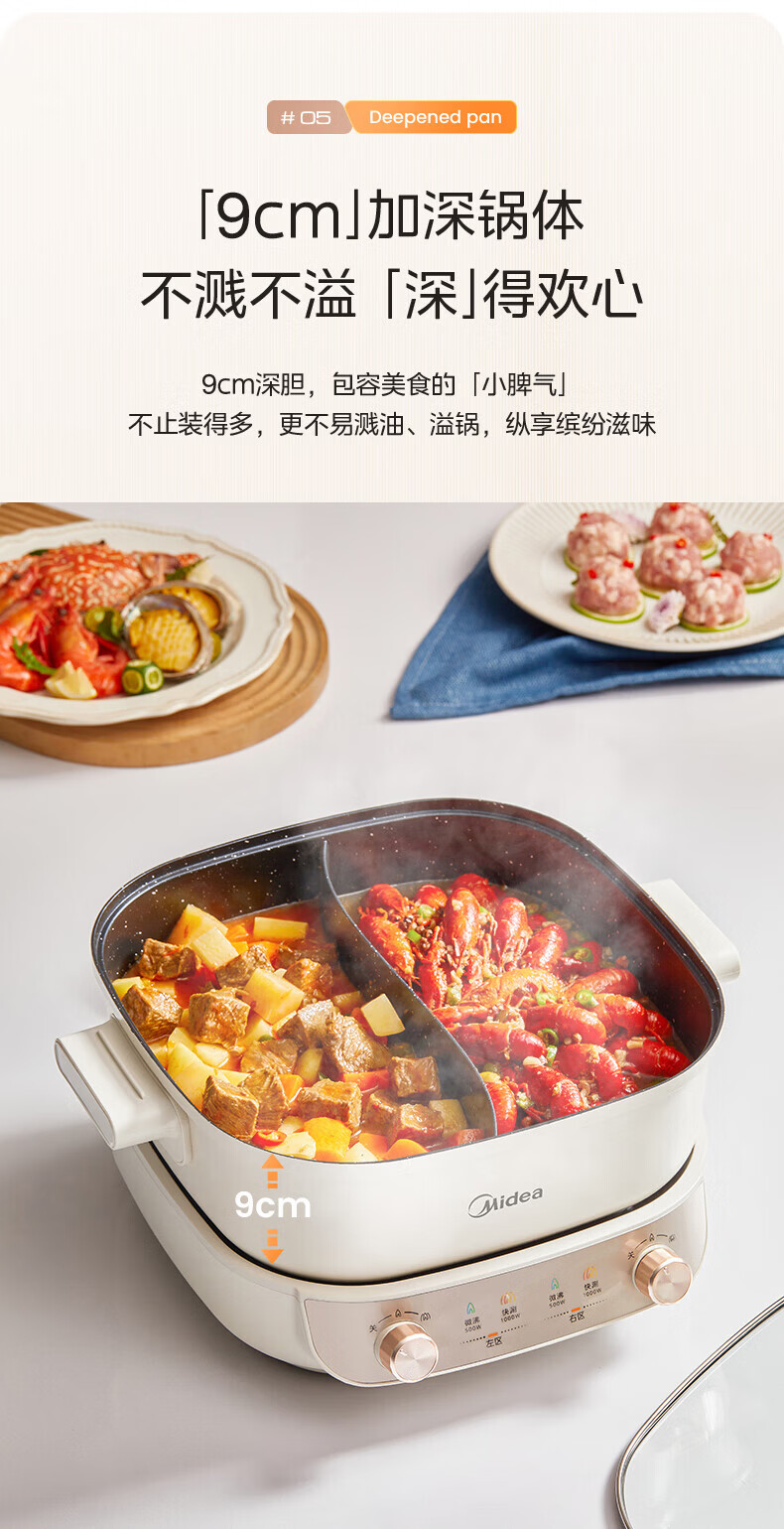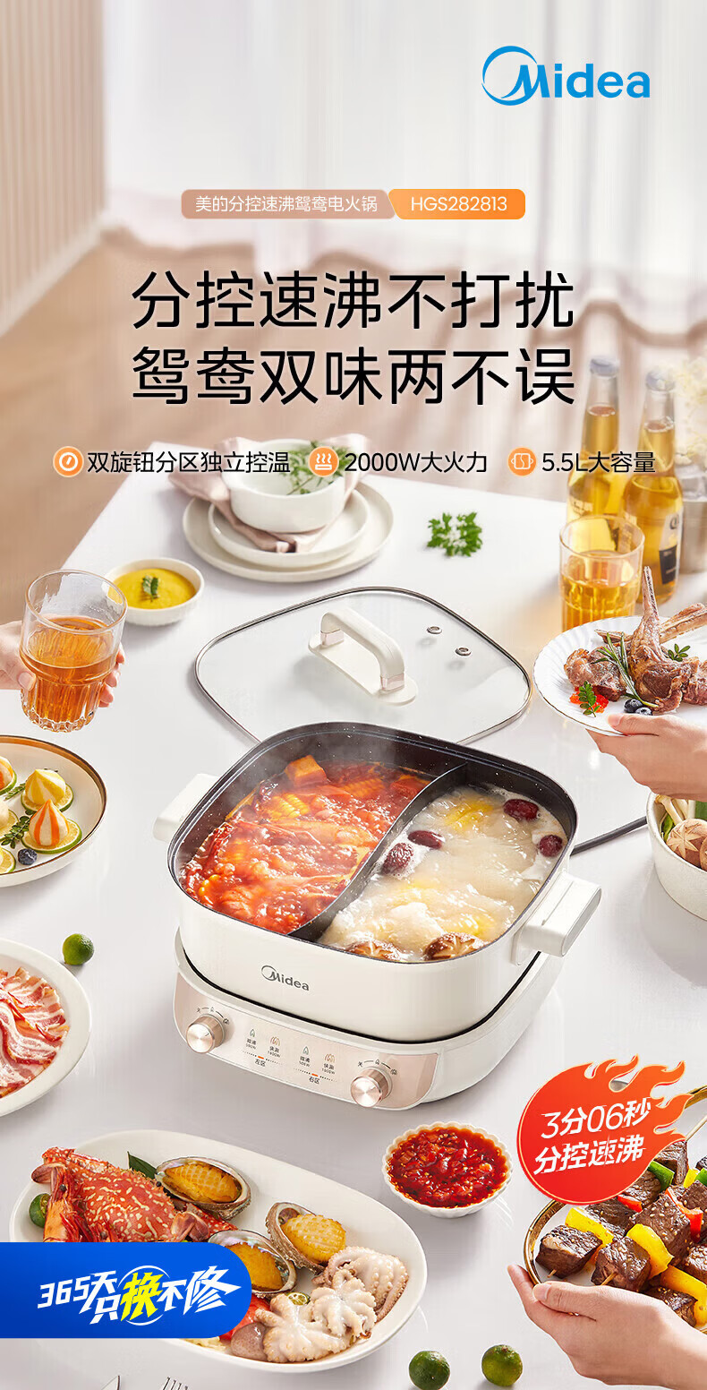 美的(Midea)速沸电火锅 家用5.5L分体式火锅专用锅鸳鸯锅电煮锅 大功率速沸可拆卸锅身多功能锅电热锅多用途锅 5.5L 【分体式分区控温鸳鸯锅】