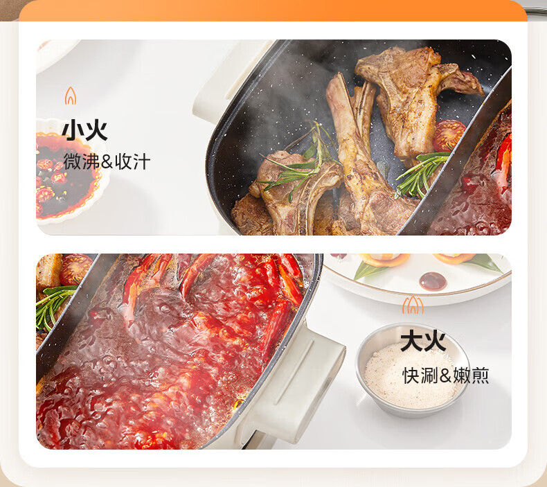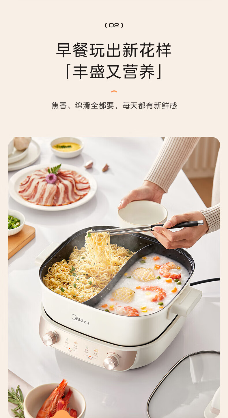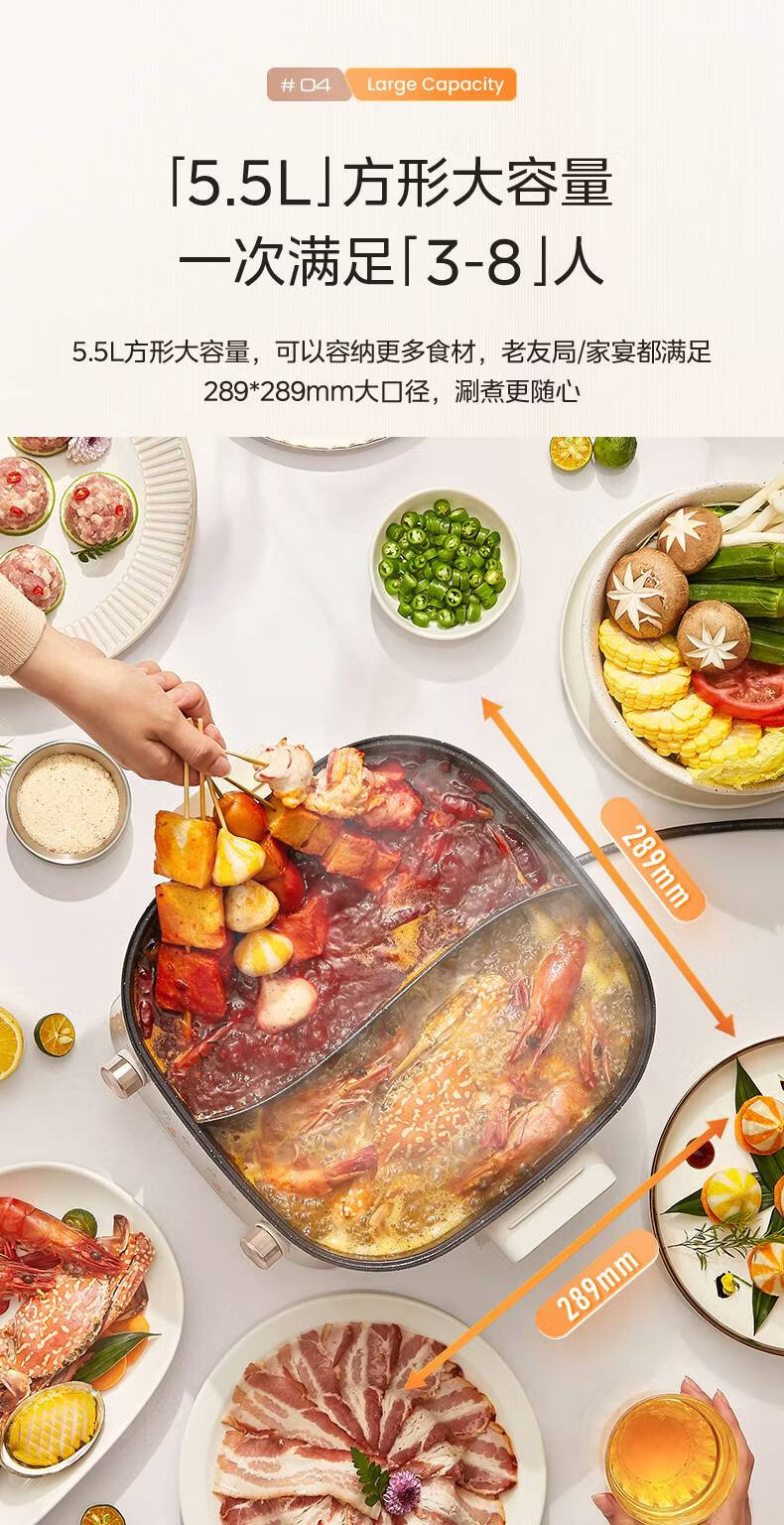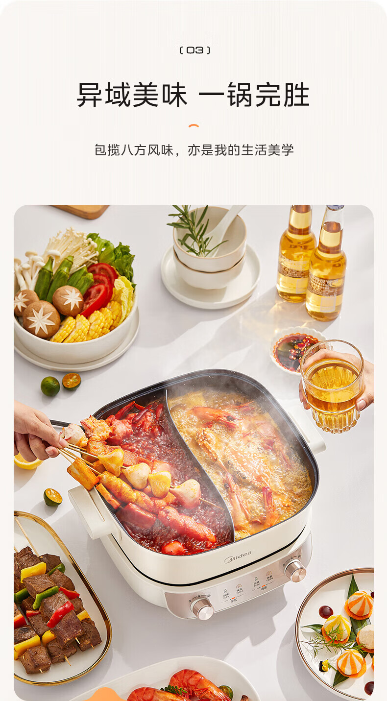 美的(Midea)速沸电火锅 家用5.5L分体式火锅专用锅鸳鸯锅电煮锅 大功率速沸可拆卸锅身多功能锅电热锅多用途锅 5.5L 【分体式分区控温鸳鸯锅】
