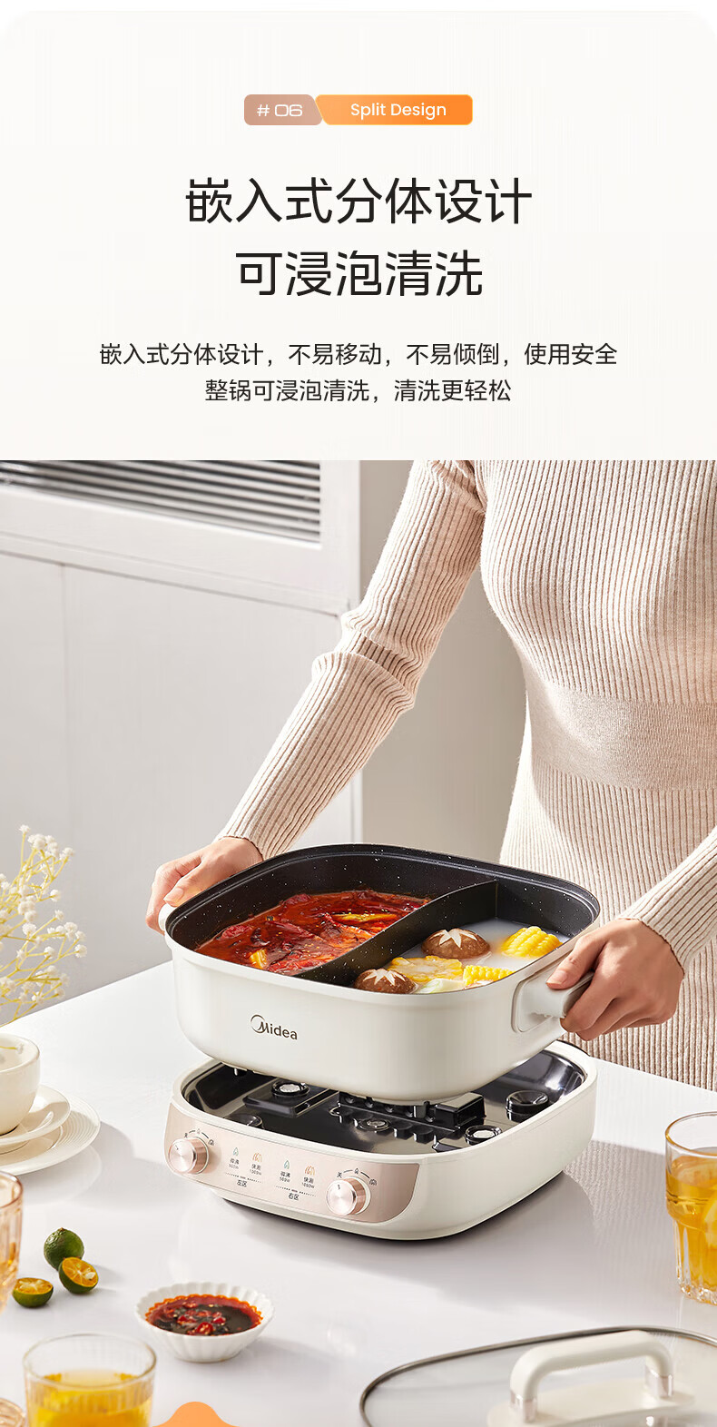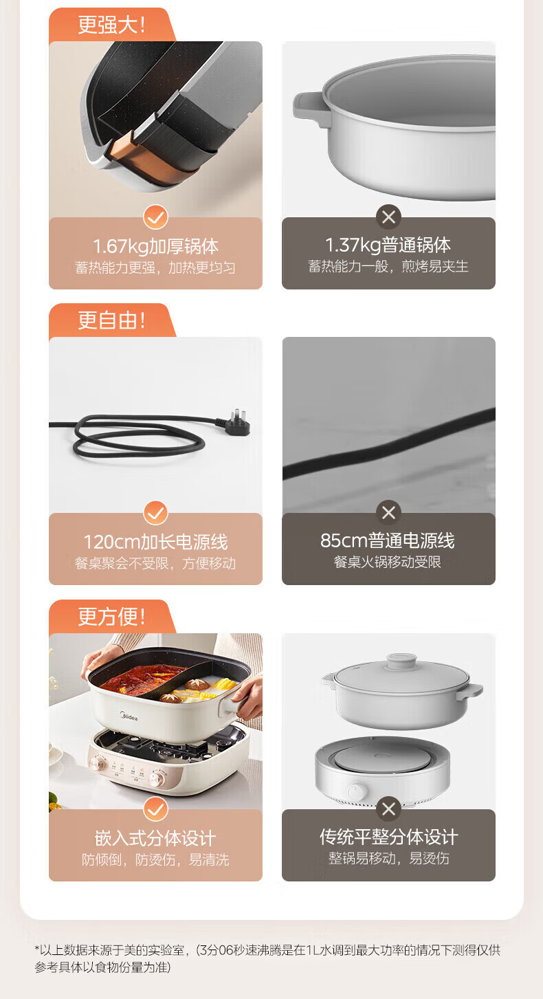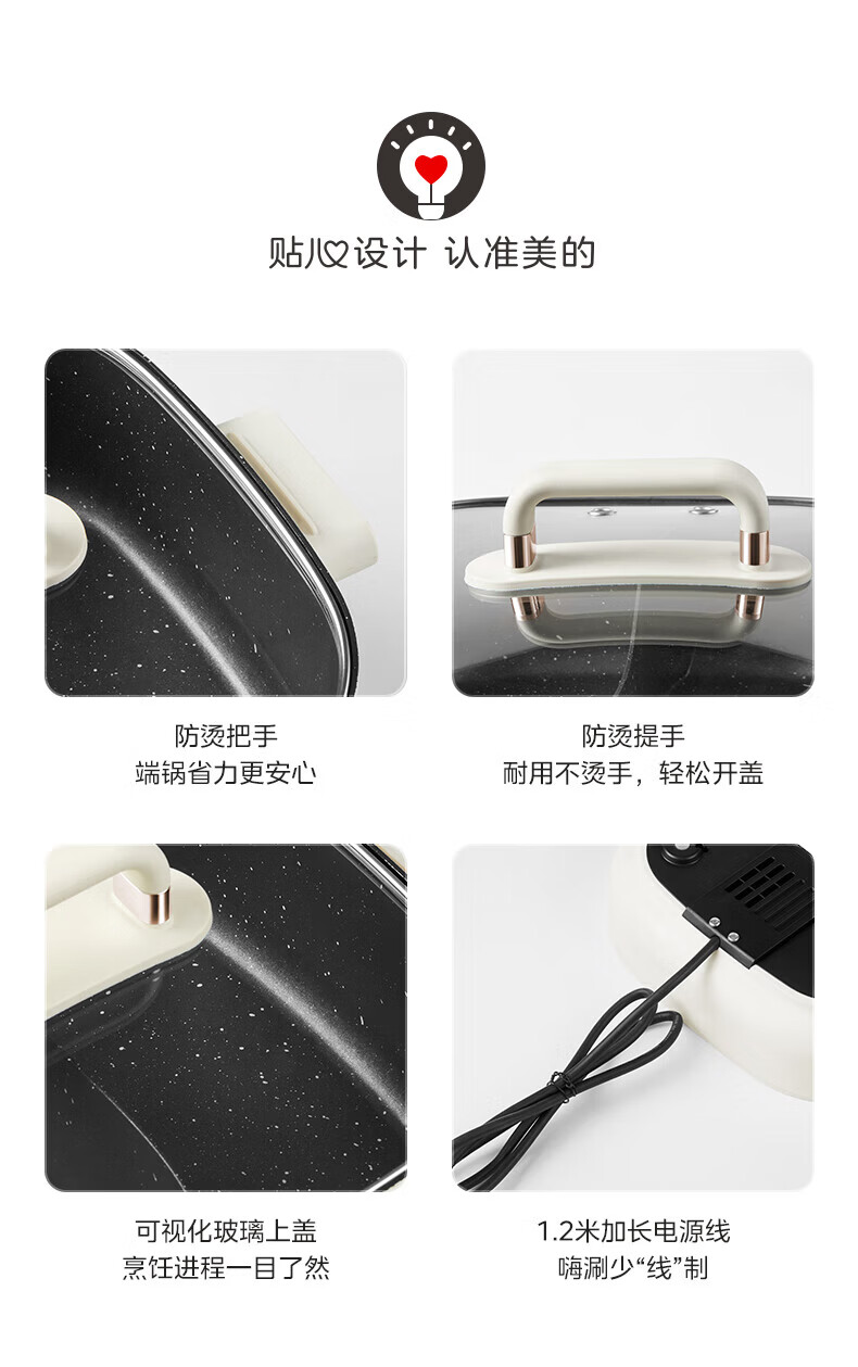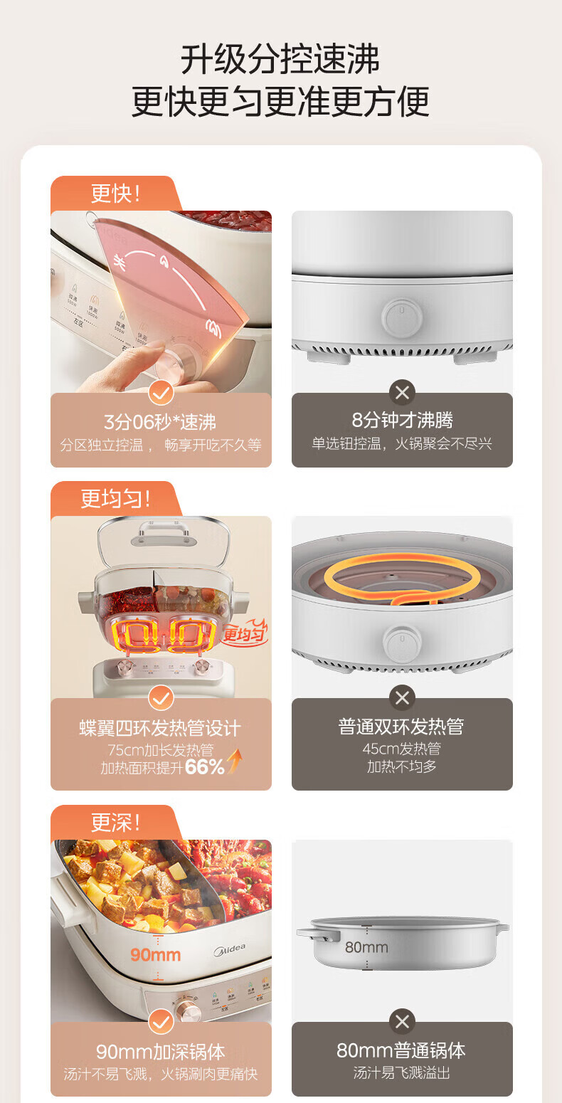 美的(Midea)速沸电火锅 家用5.5L分体式火锅专用锅鸳鸯锅电煮锅 大功率速沸可拆卸锅身多功能锅电热锅多用途锅 5.5L 【分体式分区控温鸳鸯锅】