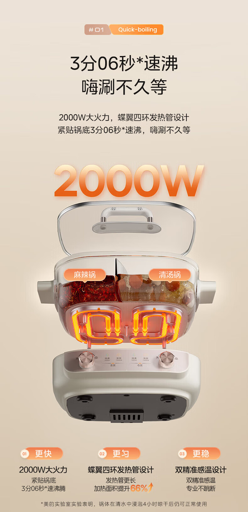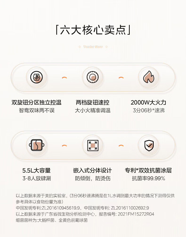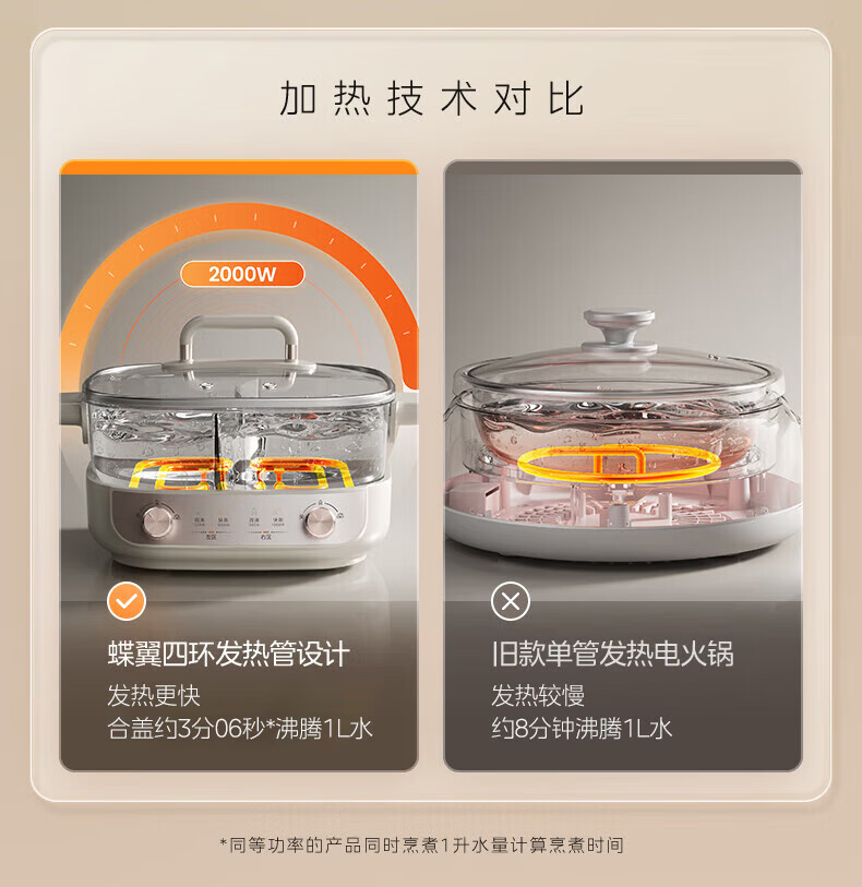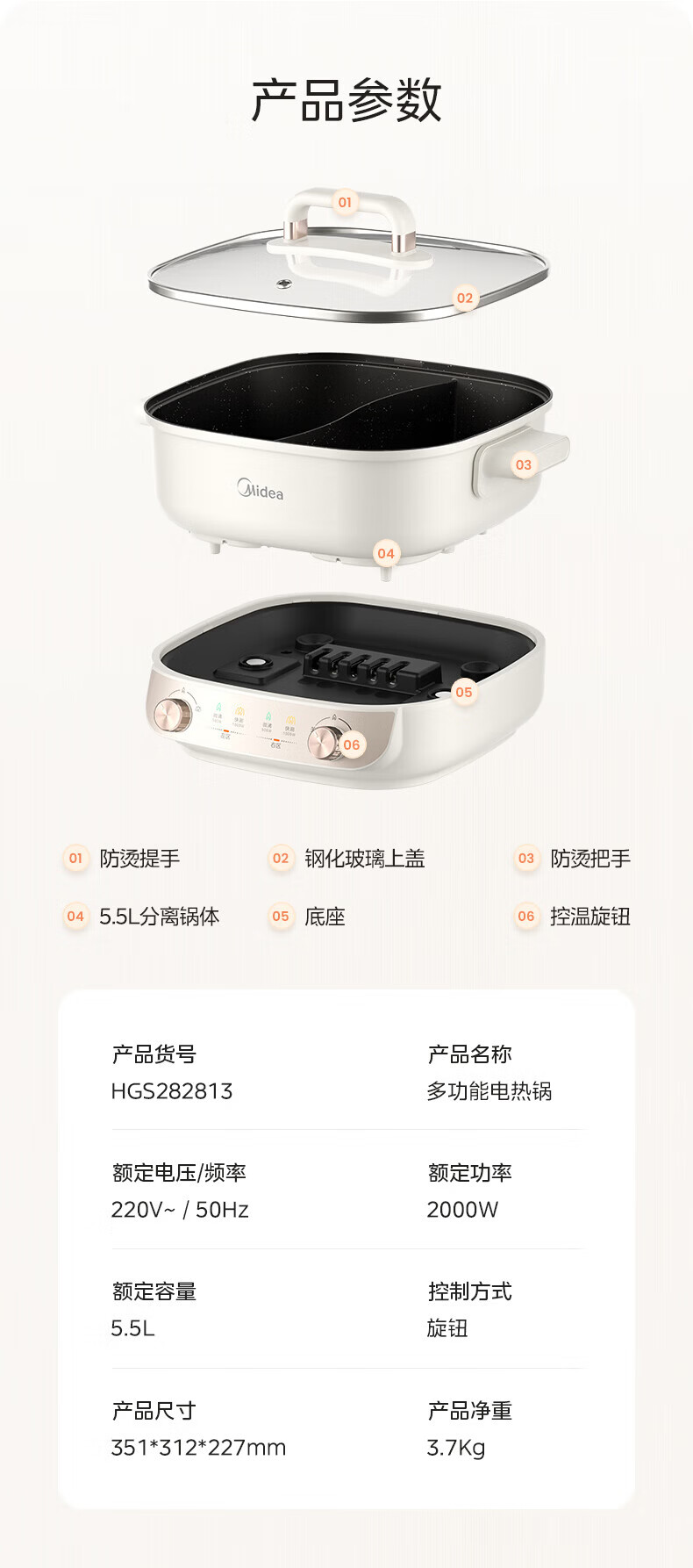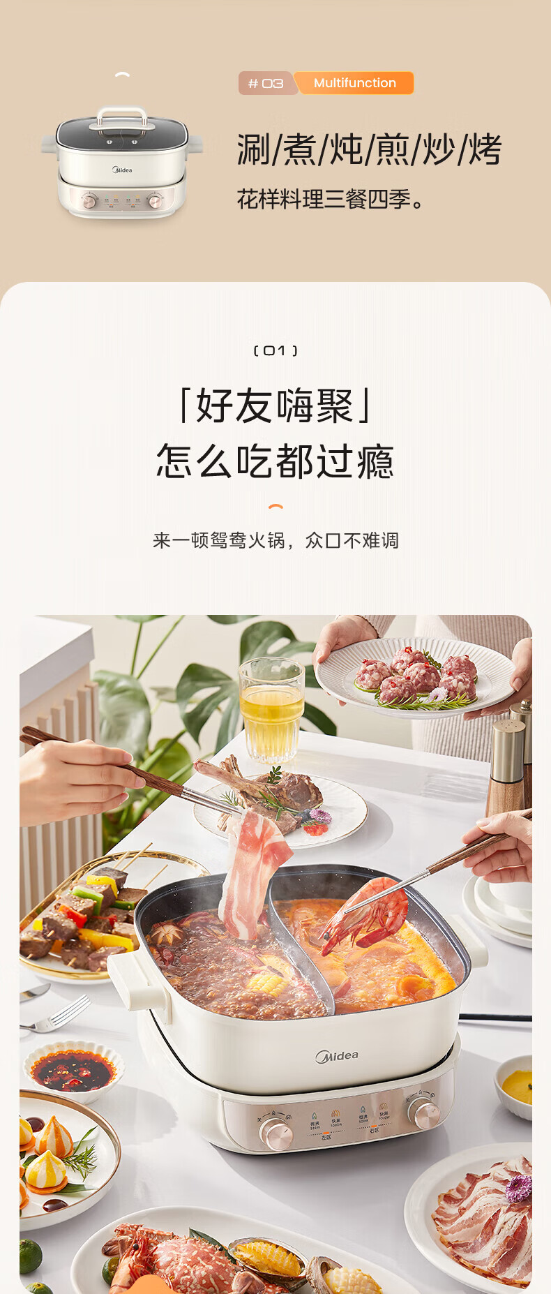 美的(Midea)速沸电火锅 家用5.5L分体式火锅专用锅鸳鸯锅电煮锅 大功率速沸可拆卸锅身多功能锅电热锅多用途锅 5.5L 【分体式分区控温鸳鸯锅】