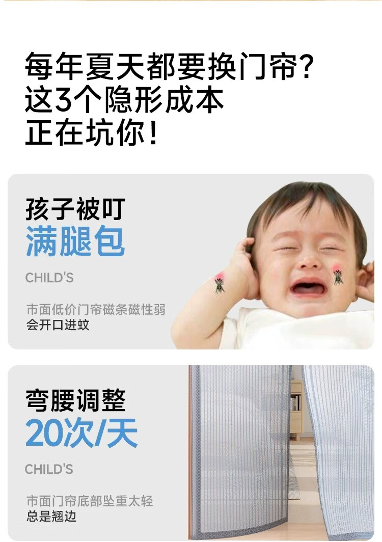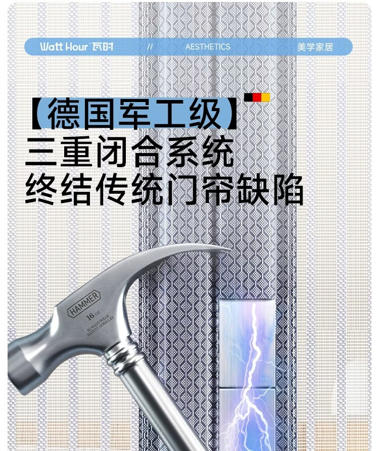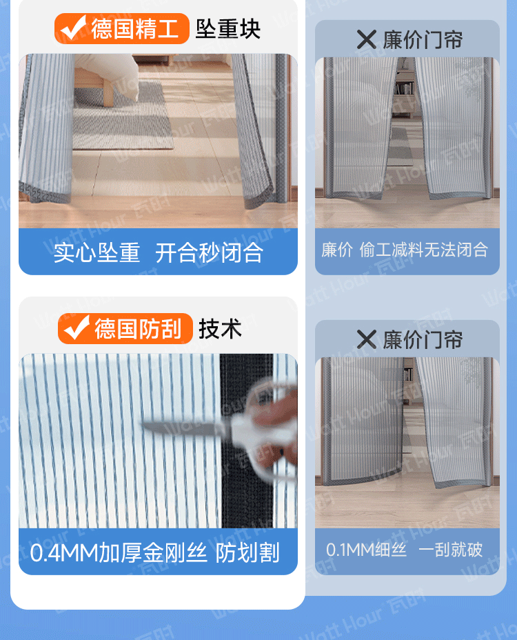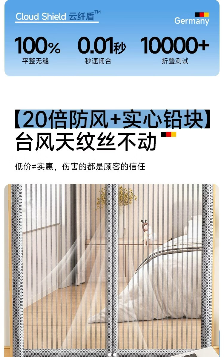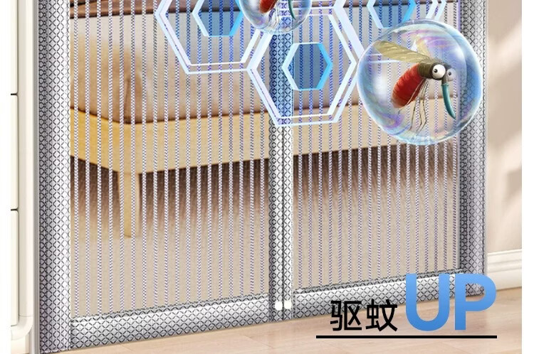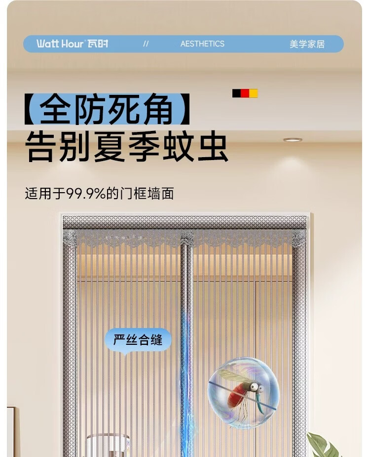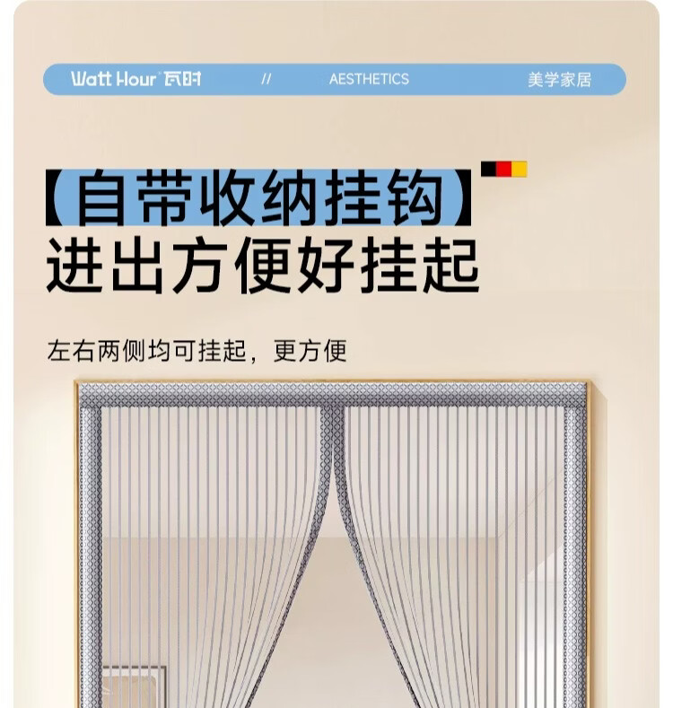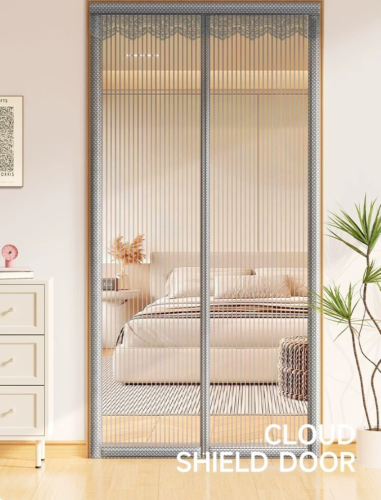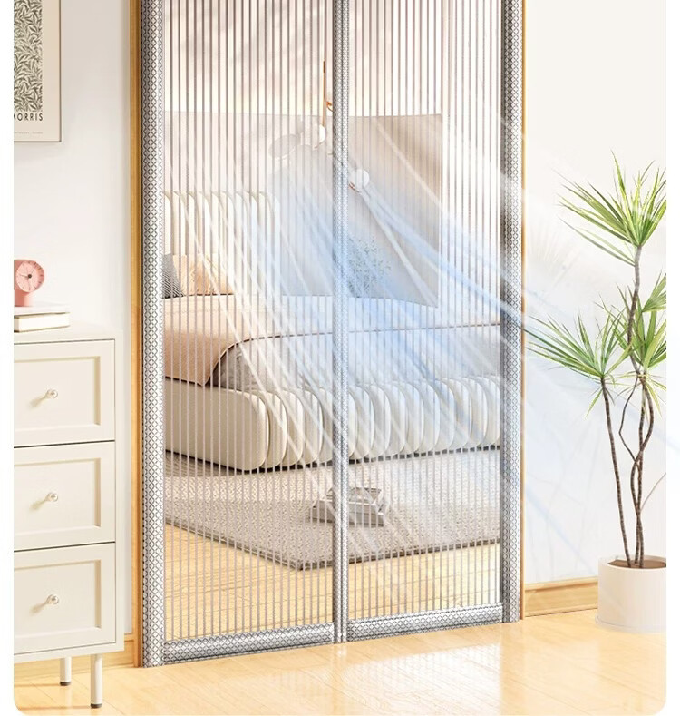 瓦时2026新款防蚊门帘全磁吸金刚网纱门卧室防虫门帘高档入户门隔断帘 条纹灰【全磁条+可定制】 0cm*0cm定制专拍【咨询客服】