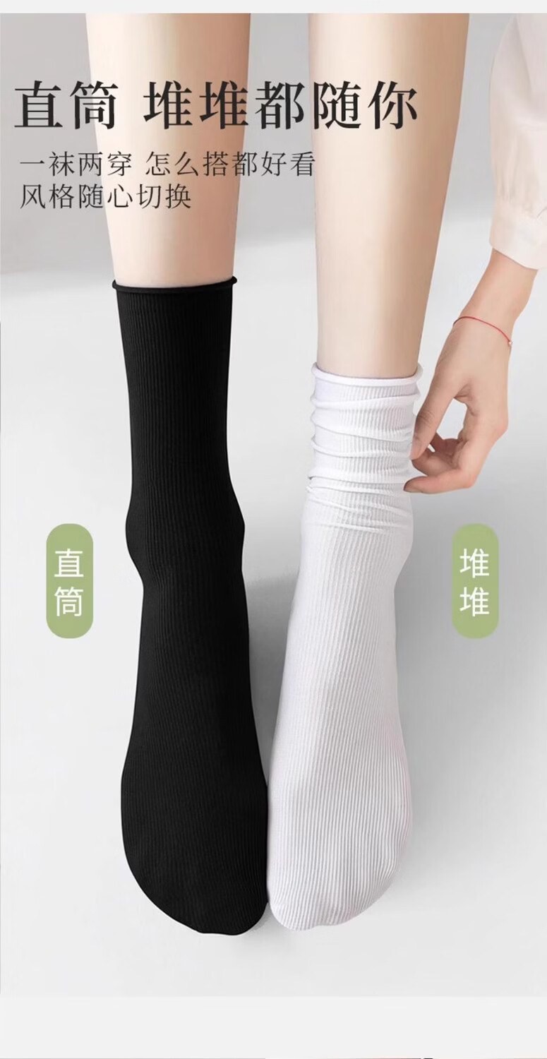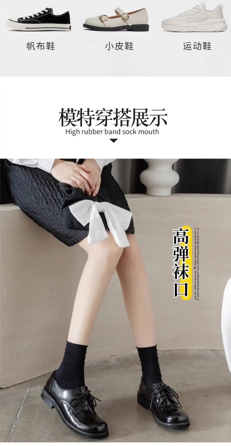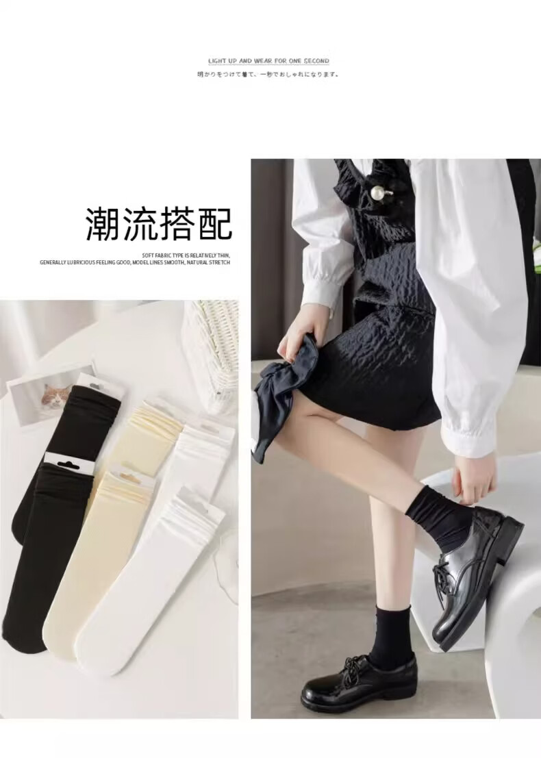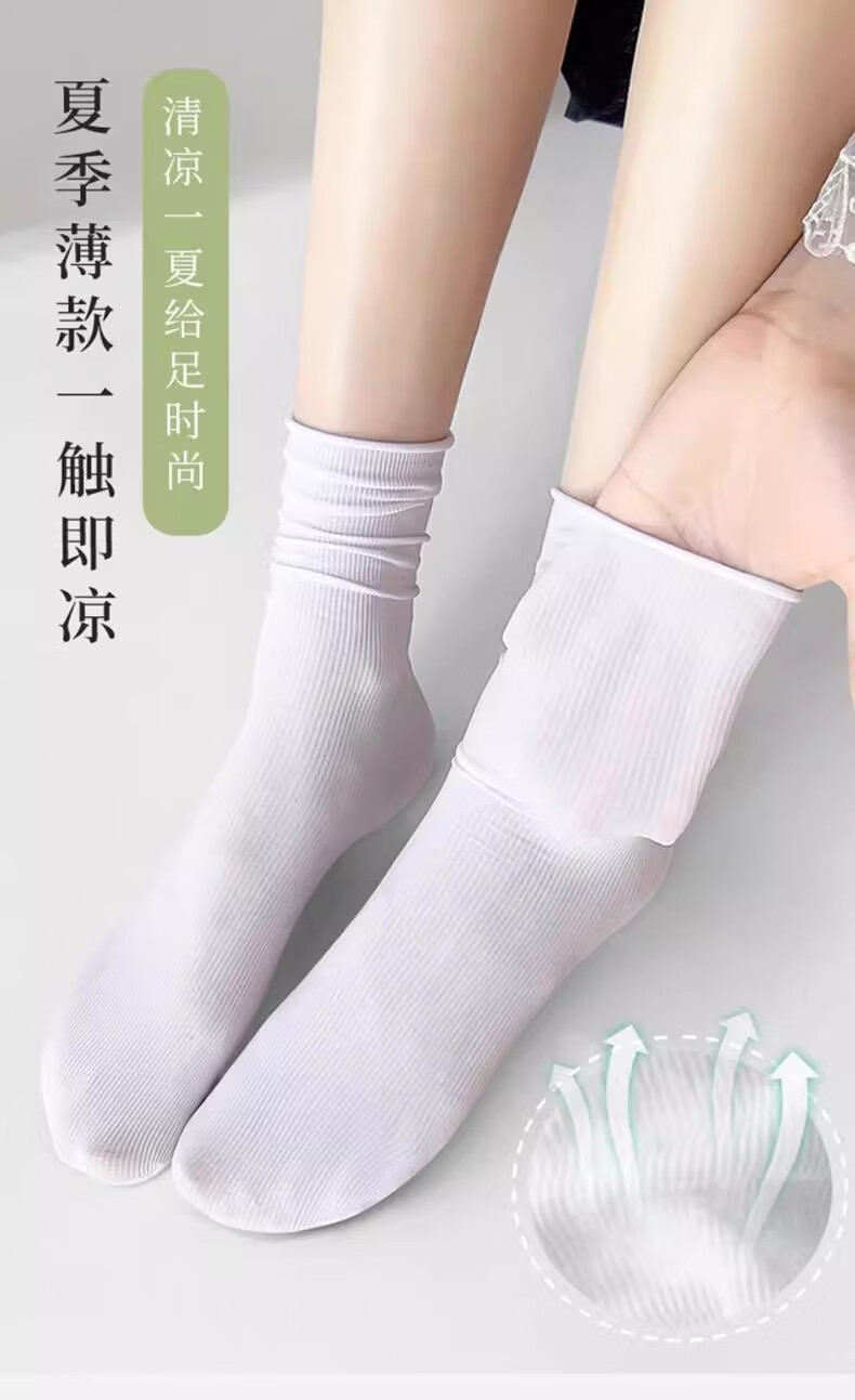 花边冰冰袜子女款夏季薄款冰丝中筒袜长袜白色堆堆袜配小皮鞋 5双装【颜色搭配】 均码