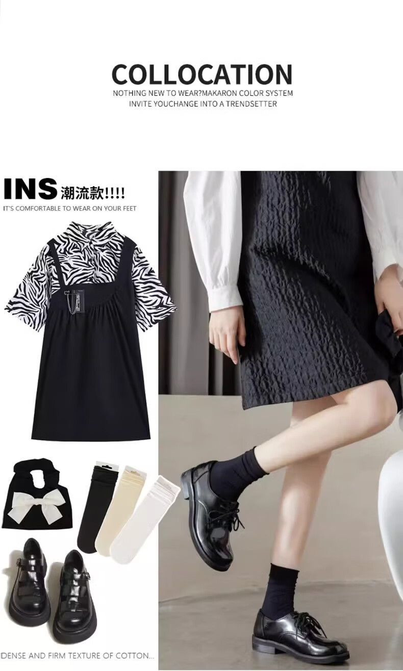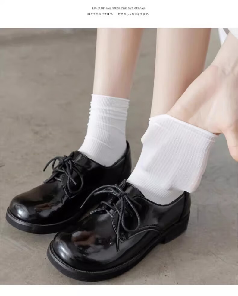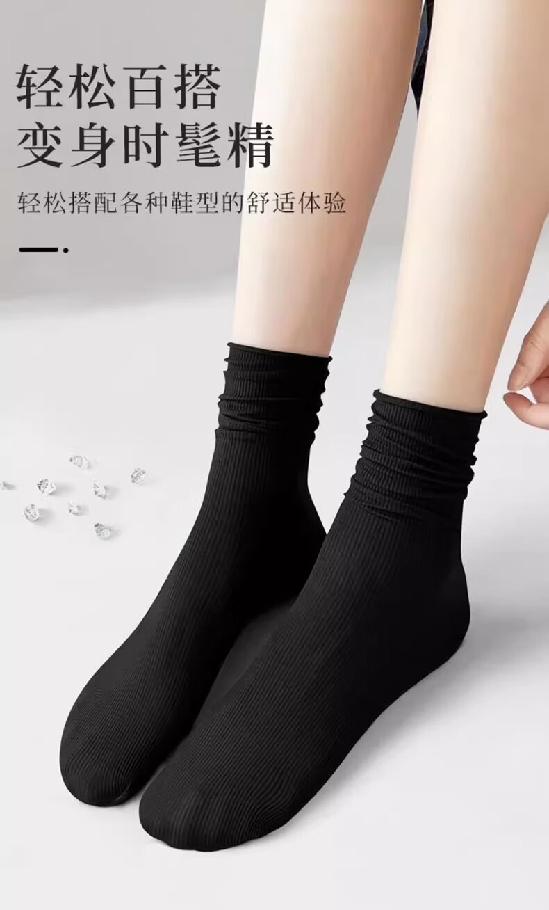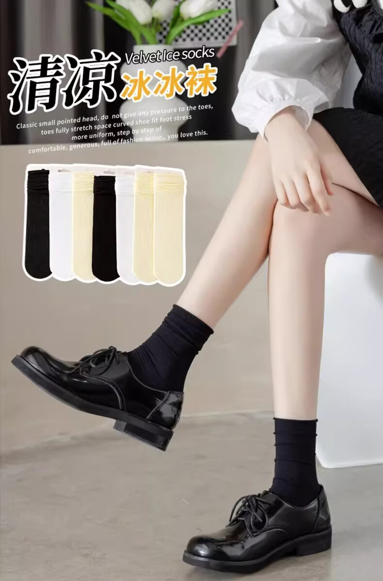 花边冰冰袜子女款夏季薄款冰丝中筒袜长袜白色堆堆袜配小皮鞋 5双装【颜色搭配】 均码
