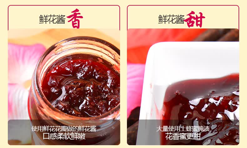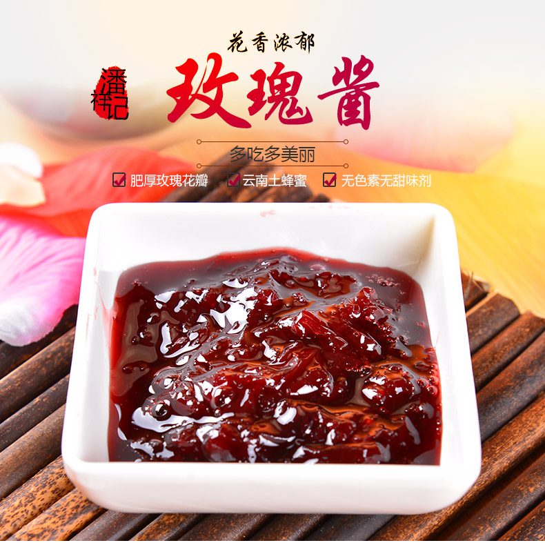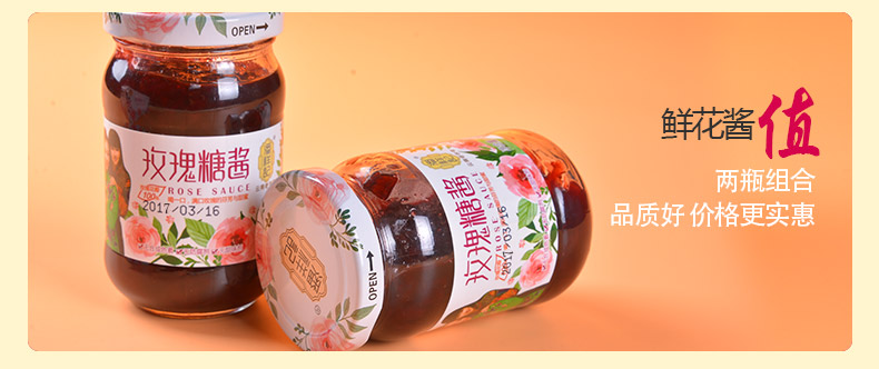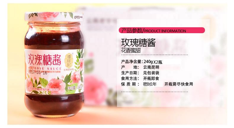 潘祥记鲜花玫瑰酱240g*2瓶云南特产玫瑰糖浆果酱