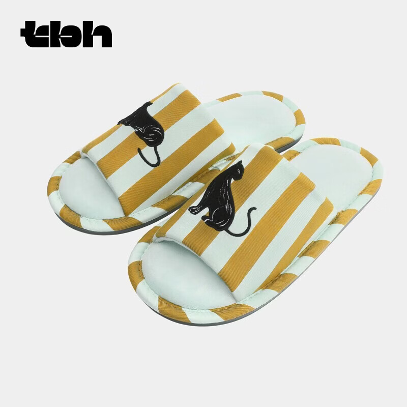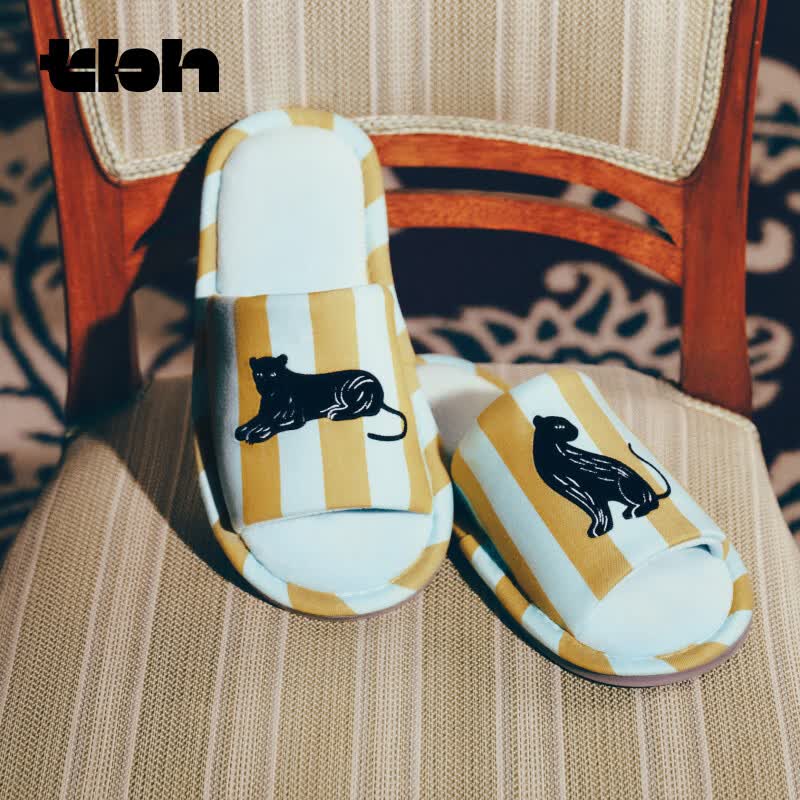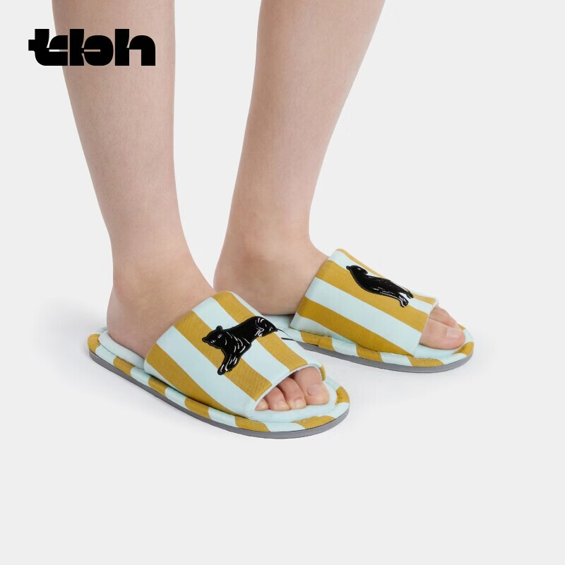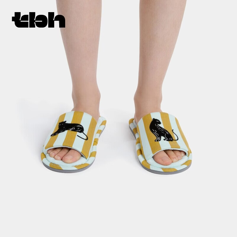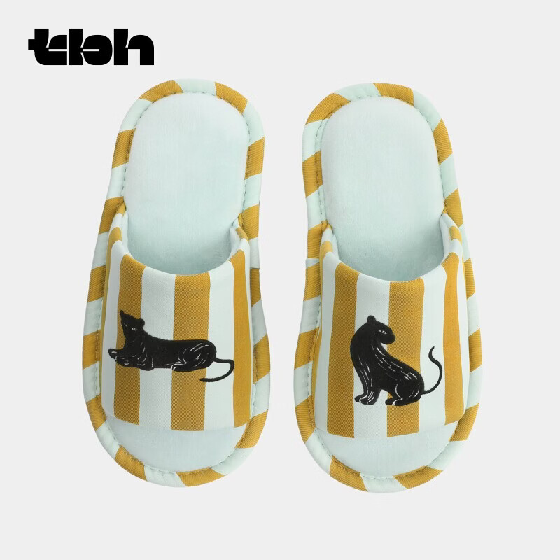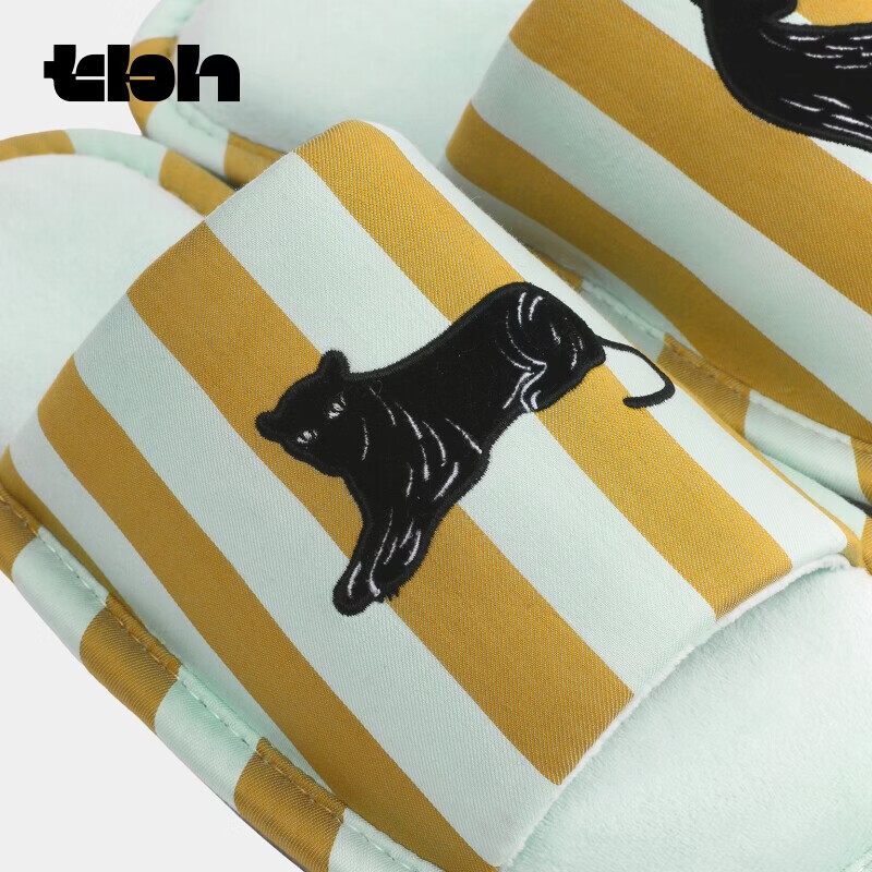 野兽派家居(tbh)都市野兽黑豹提花开口拖可外穿室内家居鞋夏季拖鞋 黑豹开口拖鞋 蓝绿条纹 36-37