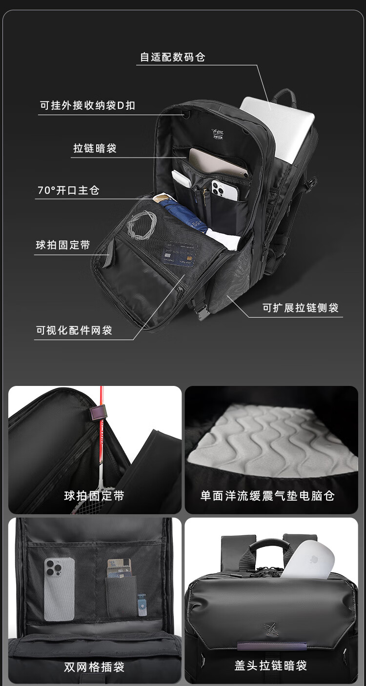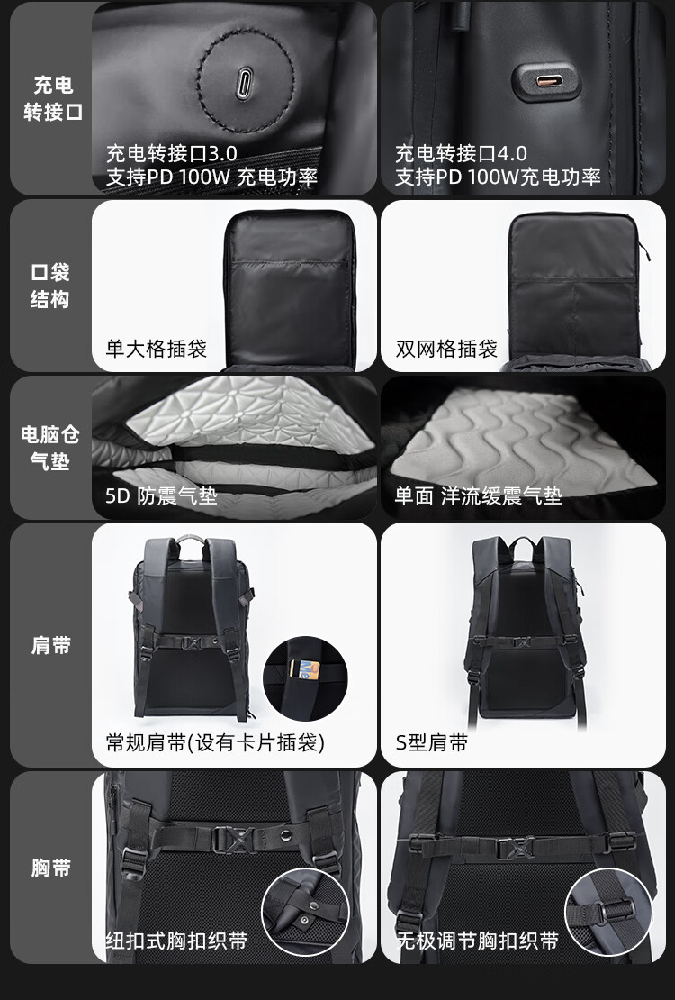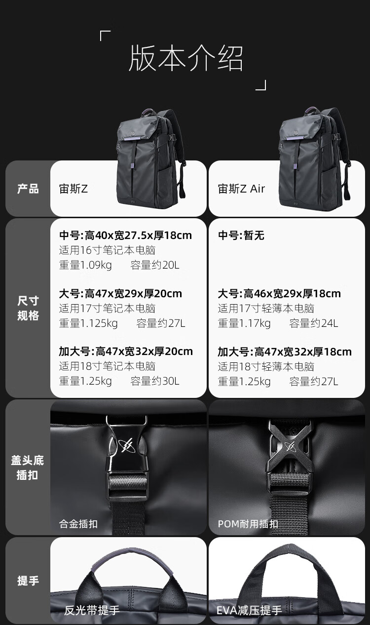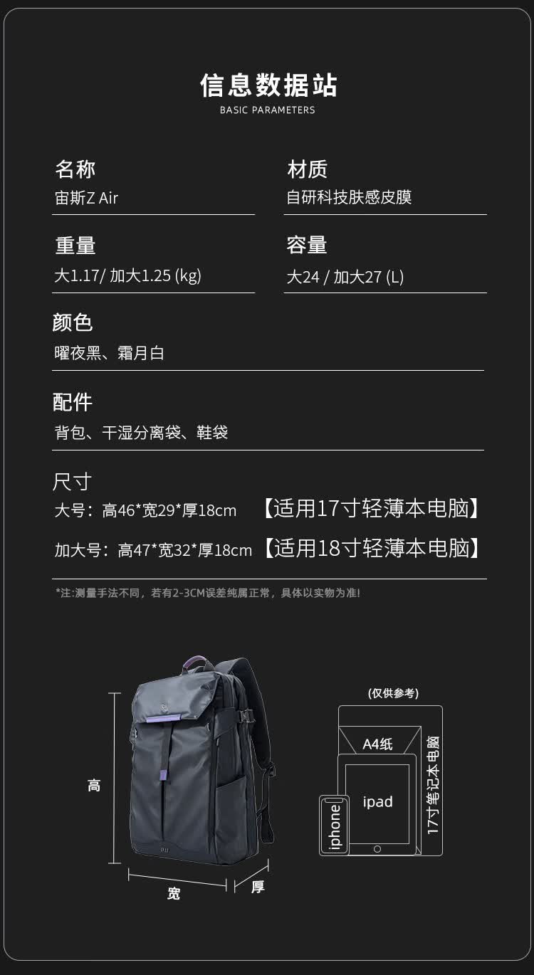 光影行星(GYXX)宙斯Z Air双肩背包男士通勤电脑包大学生运动休闲旅行大容量书包 【宙斯Z Air 】曜夜黑/大-适合17寸游戏本