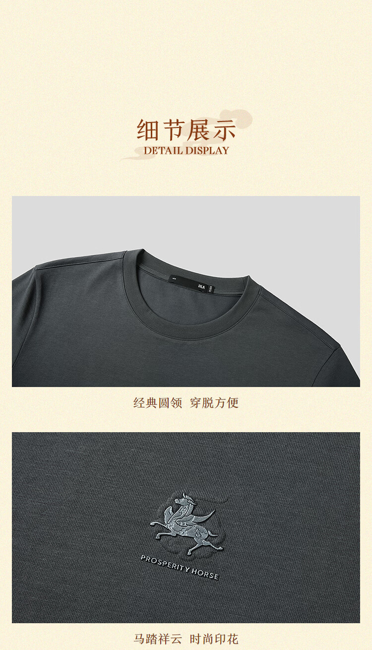 HLA海澜之家短袖T恤男26新马年敦煌系列凉感马踏祥云短袖夏季男