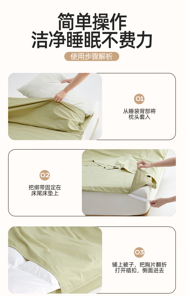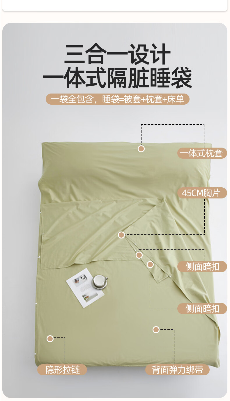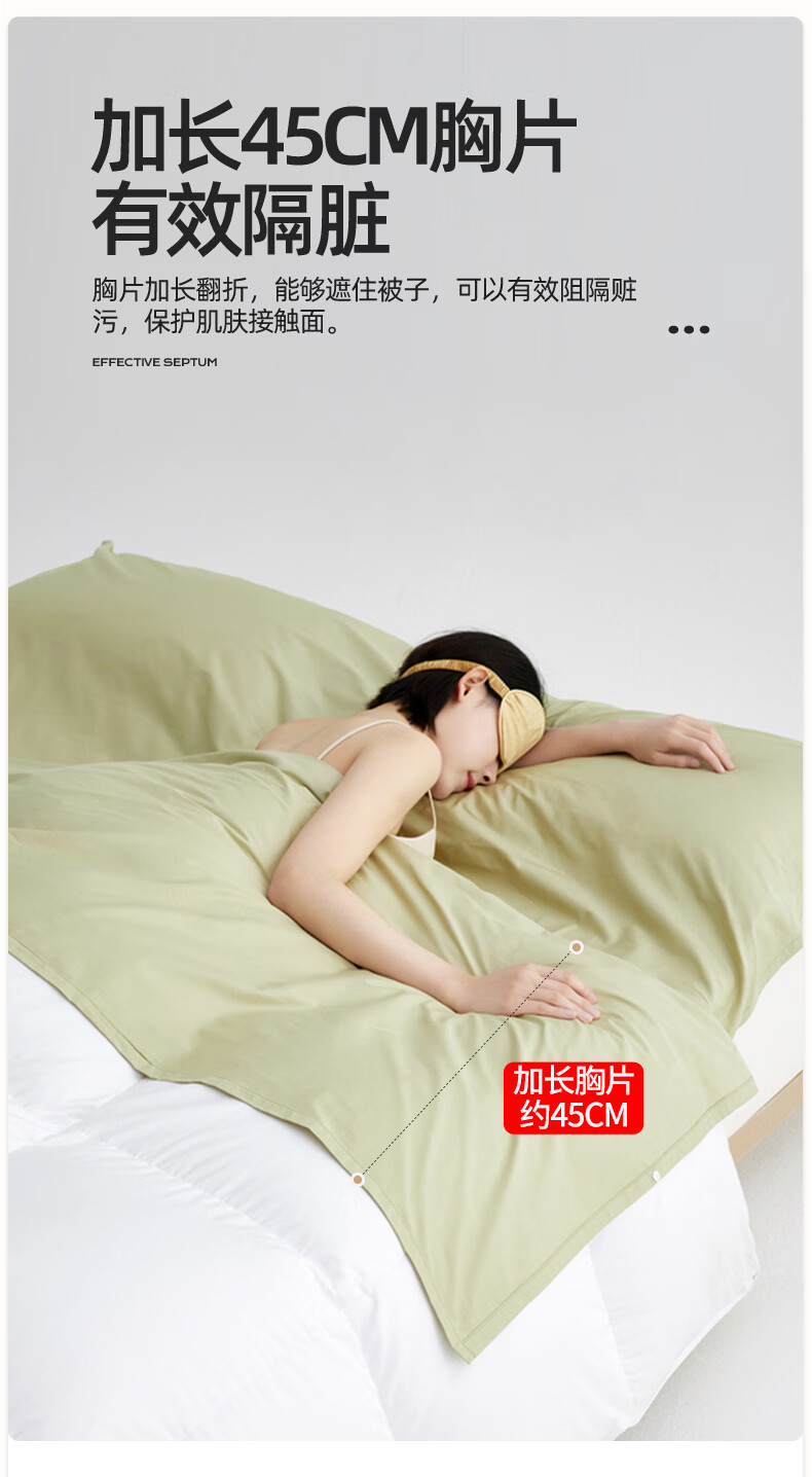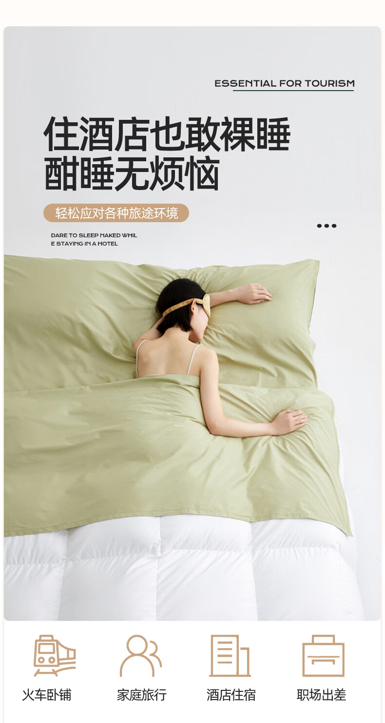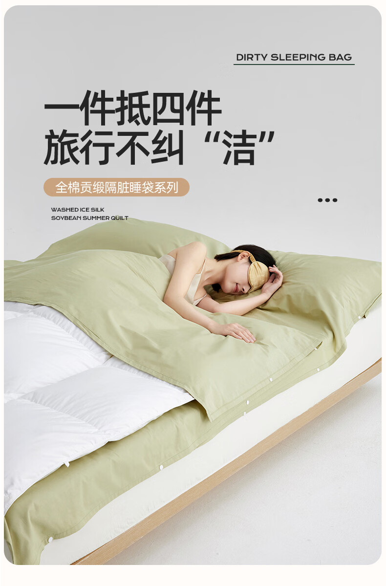 无印良品全棉酒店隔脏睡袋纯棉a类新疆棉被单出差旅行便捷可收纳床单被套 旅行睡袋-山葵青【A类全棉 旅行必备】 160cm*210cm