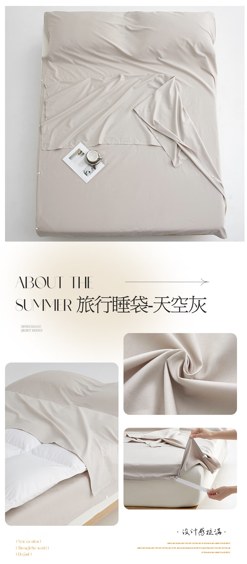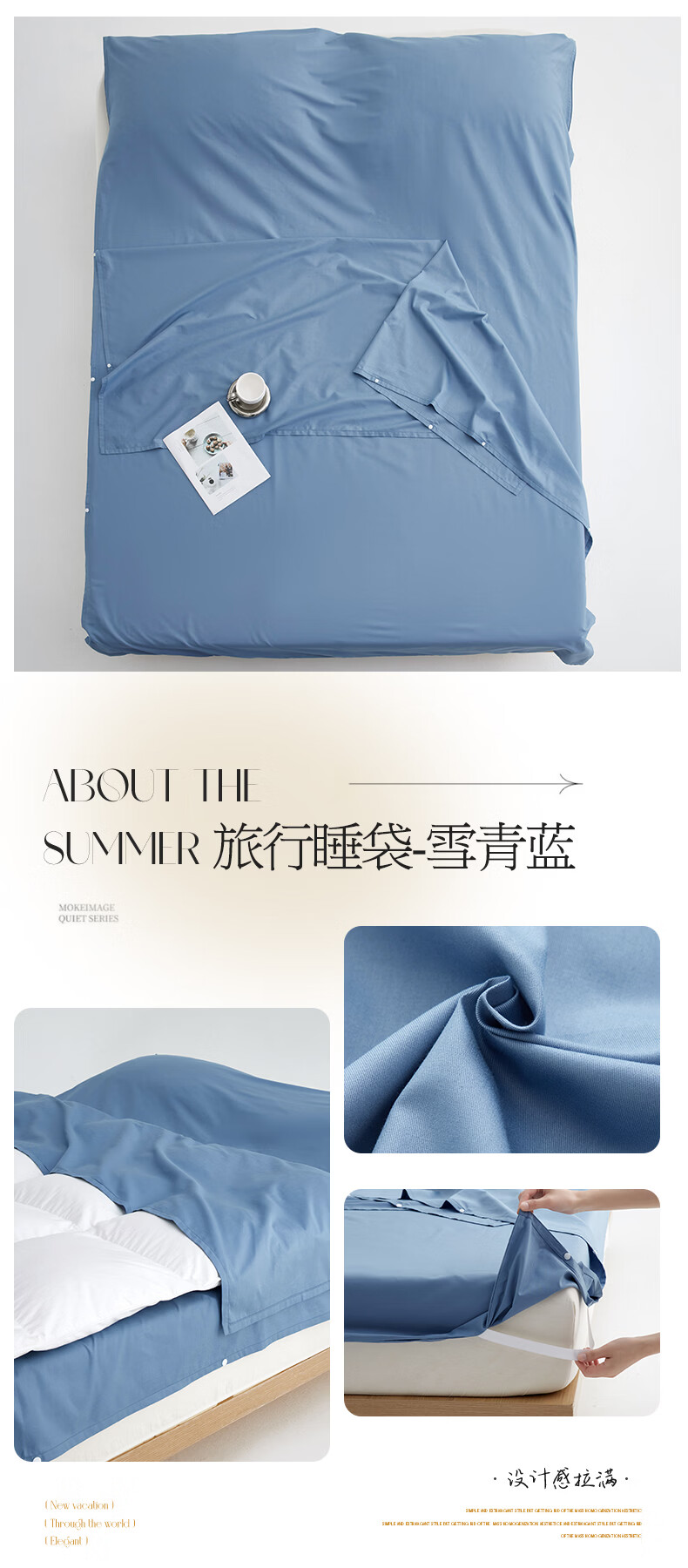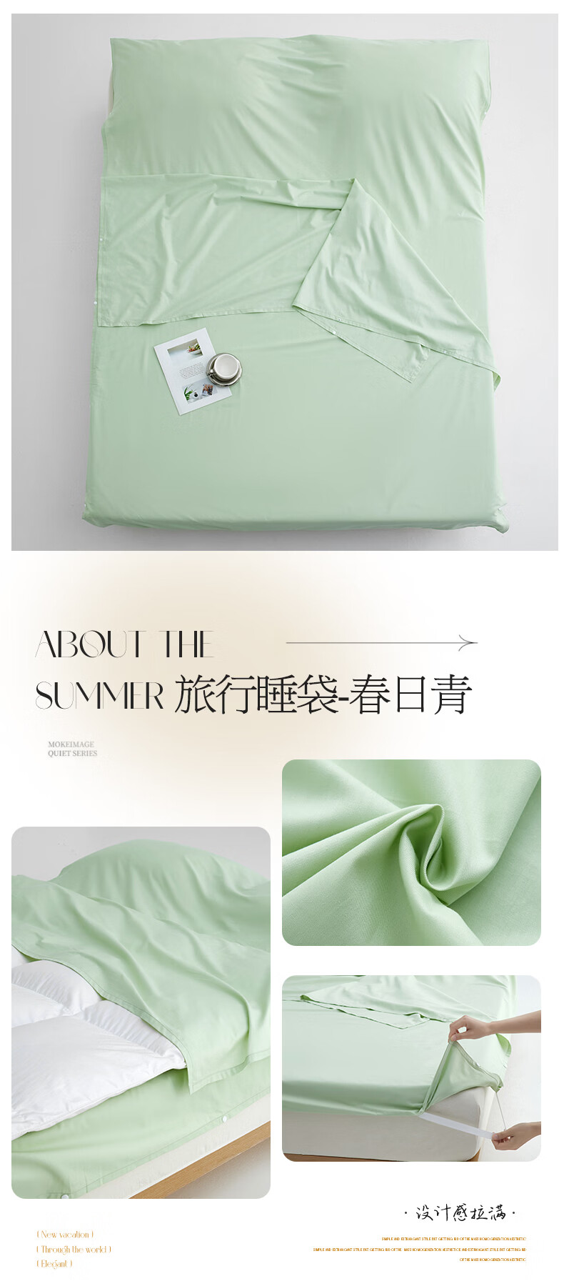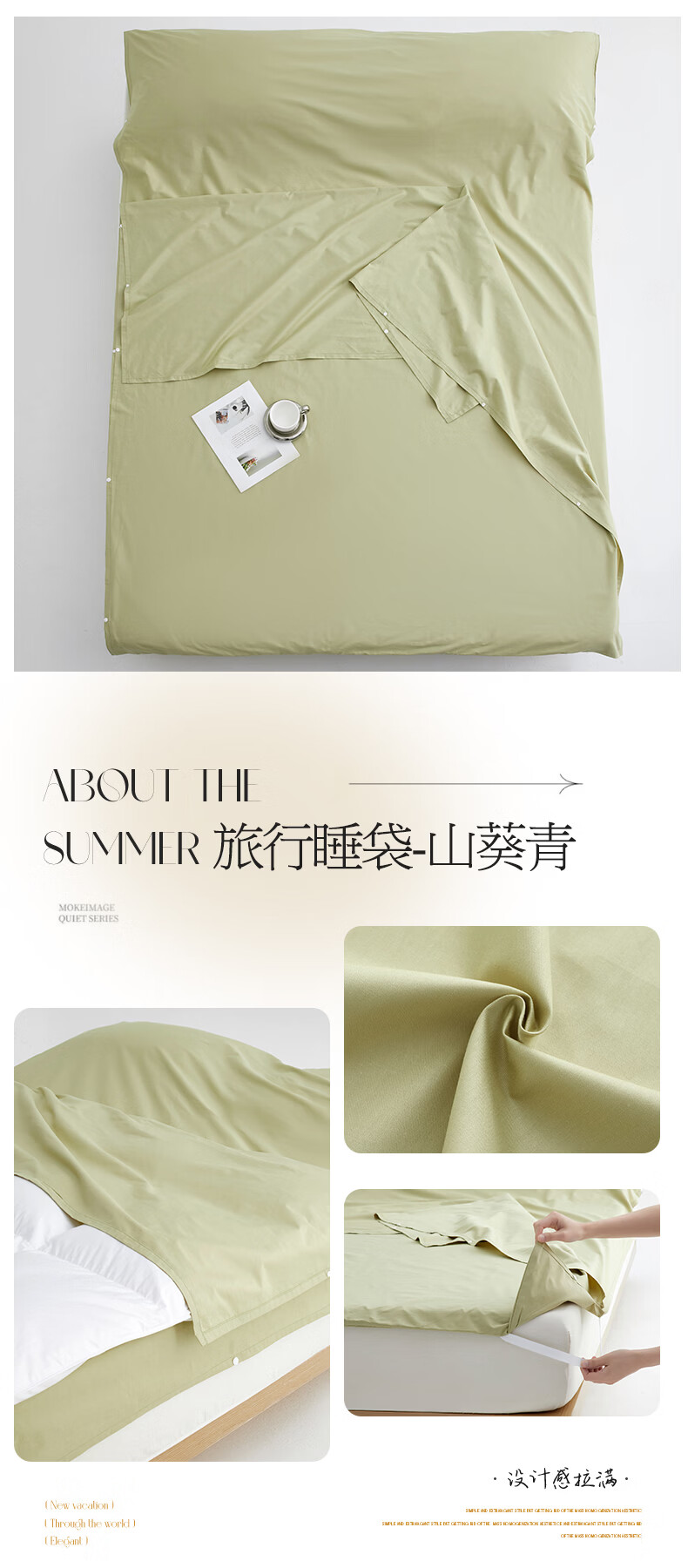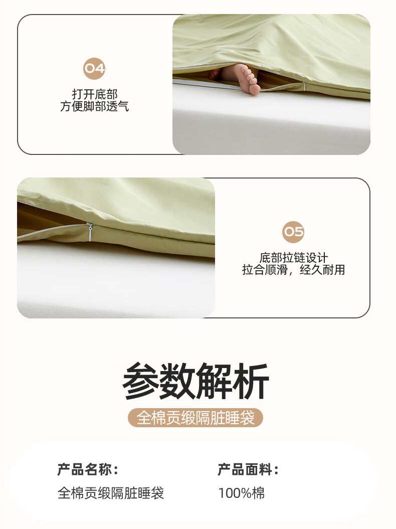 无印良品全棉酒店隔脏睡袋纯棉a类新疆棉被单出差旅行便捷可收纳床单被套 旅行睡袋-山葵青【A类全棉 旅行必备】 160cm*210cm